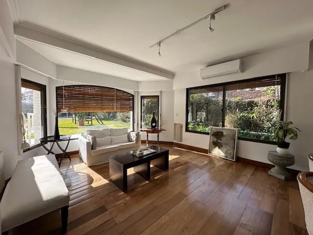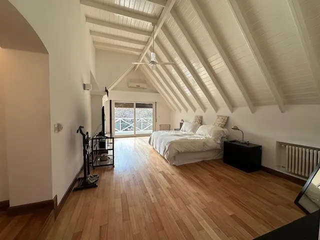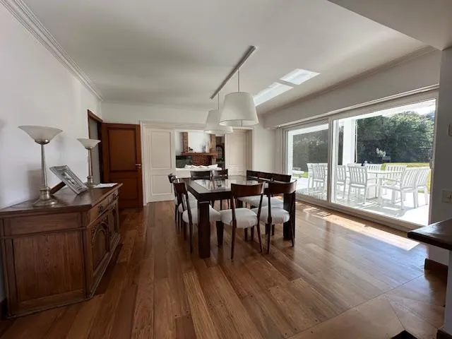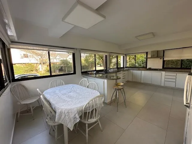Casa em condomínio fechado em Beccar com 4 quartos, orientação norte e jardim com piscina aquecida e irrigação automática. Na entrada, hall de recepção com lavabo, dois ambientes de estar com vista para o jardim e sala de jantar integrada a um family por portas de correr. A cozinha tem área para refeições diárias e acesso à escada de serviço, além de área de lavanderia, pátio para secagem e galeria com área de churrasco. No andar superior, a suíte master inclui banheiro e closet, e há mais 3 dor