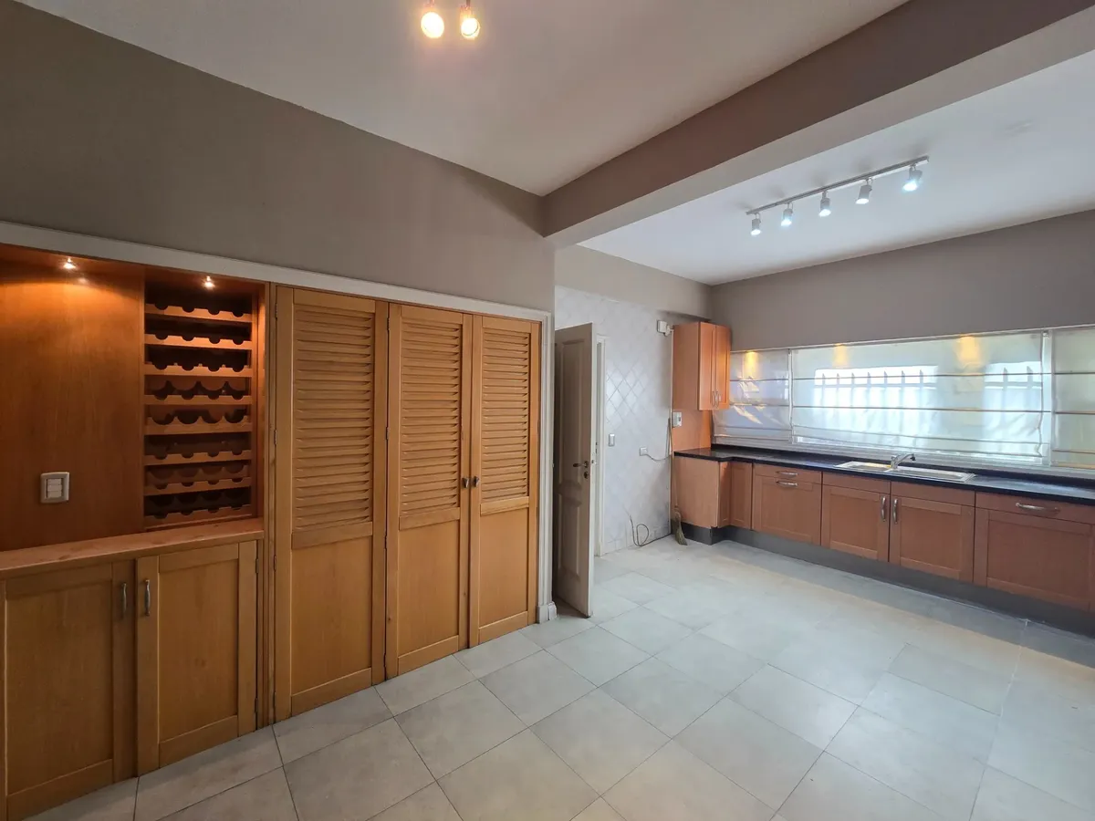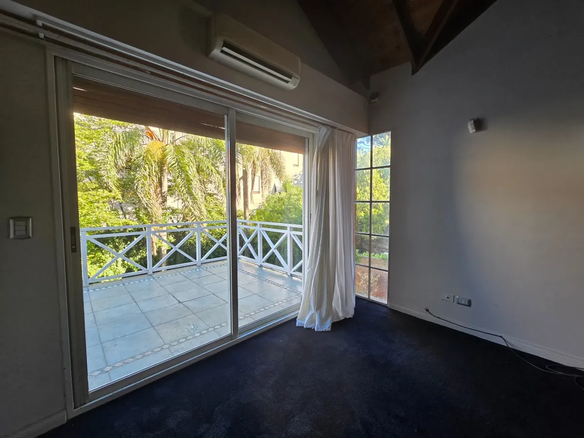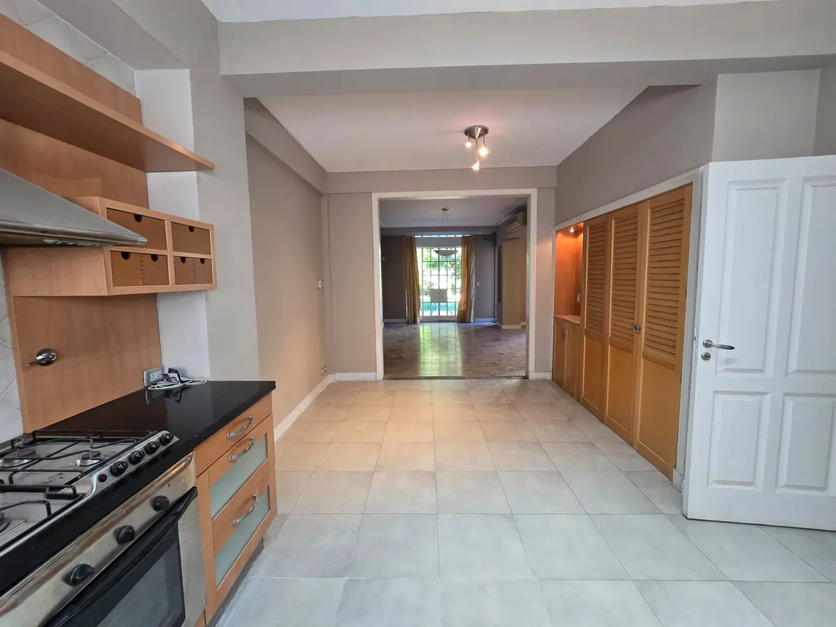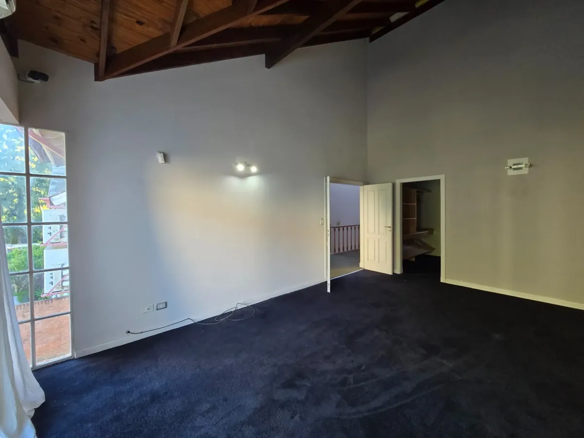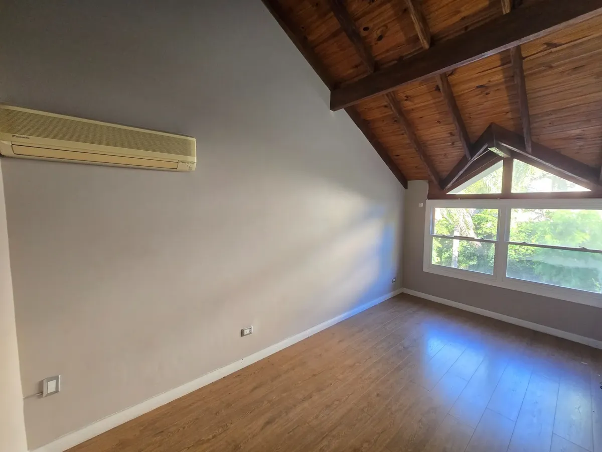 Chalé em Beccar com 4 dormitórios. Conta com hall de entrada, living com lareira e pisos de madeira e sala de jantar formal, além de lavabo. A cozinha tem área de refeições diárias e móveis em madeira. A área externa tem galeria coberta com churrasqueira, jardim com piscina e garagem para 1 carro.