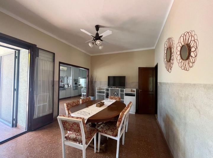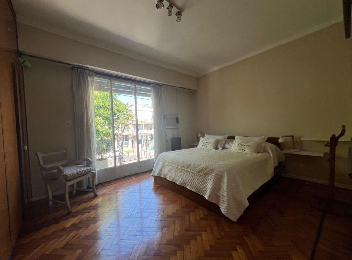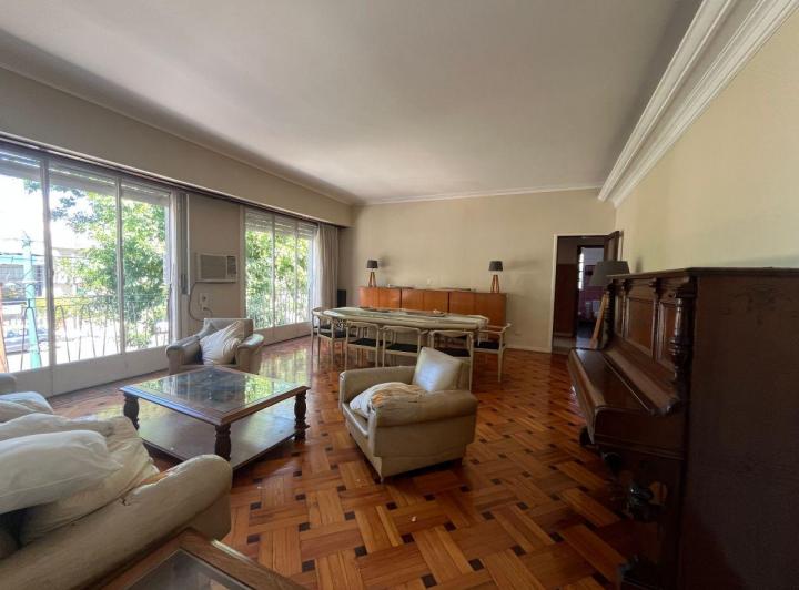 Casa em Beccar distribuída em 1º piso por escada, com 200 m² cobertos e 100 m² de áreas semicobertas e descobertas. Living e sala de jantar com pisos de madeira e janelas voltadas para a Av., cozinha com área para refeições e móveis planejados alto e baixo, além de sala de jantar separada. Possui 4 dormitórios, 3 com armários, 2 banheiros completos, área de serviço independente no 2º nível e galeria coberta. Há terraço amplo com piscina e área de churrasco. Imóvel mobiliado e equipado.