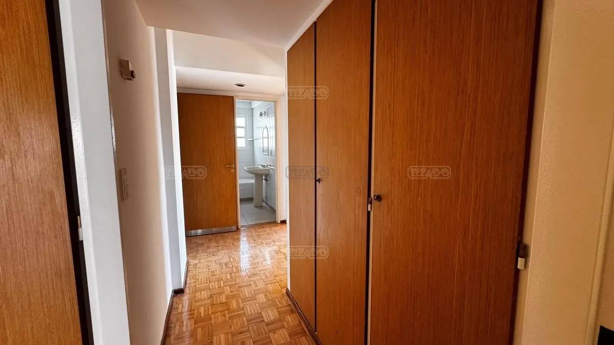 Apartamento semipiso para aluguel em Belgrano, com acesso por palier privado. Possui living com sala de jantar e cozinha com refeitório diário. Tem 3 dormitórios, sendo o principal em suíte, além de 1 banheiro completo e dependência de serviço com banheiro. Inclui armários no hall e nos dormitórios, dupla circulação e duas entradas (principal e de serviço), com vaga de garagem fixa. É permitido ter gato.