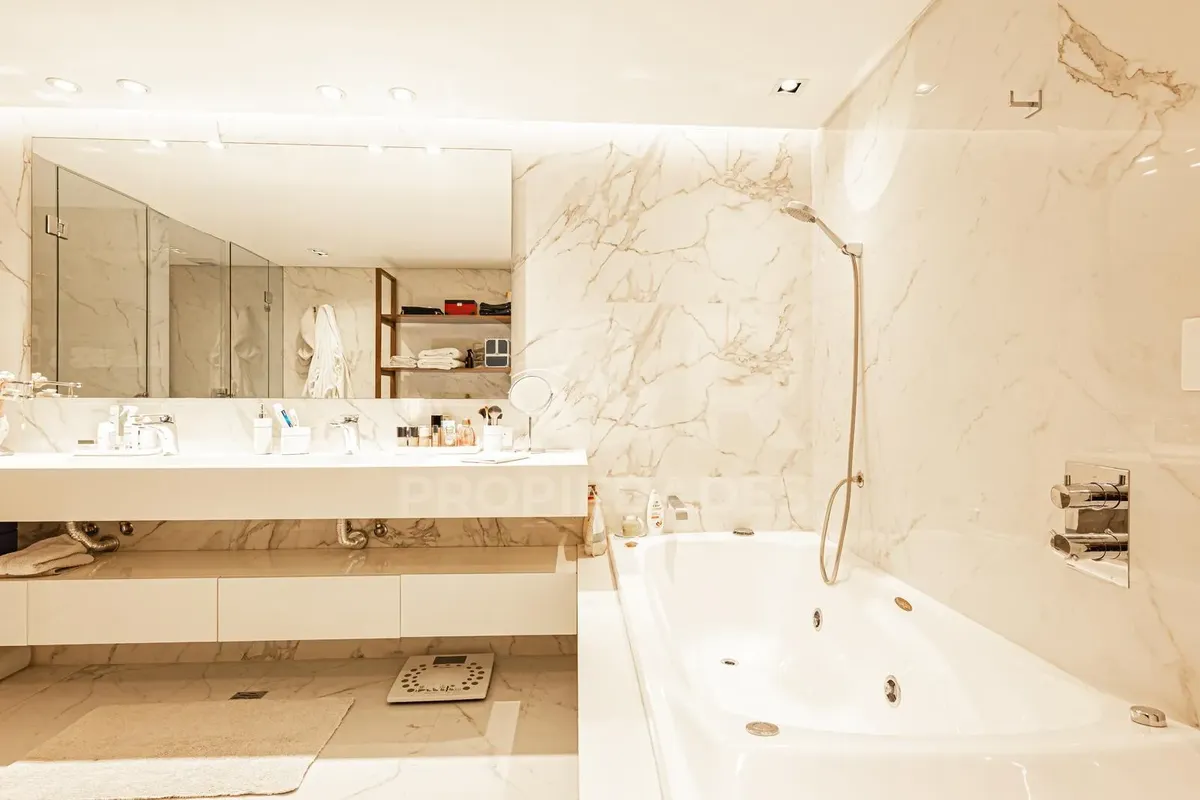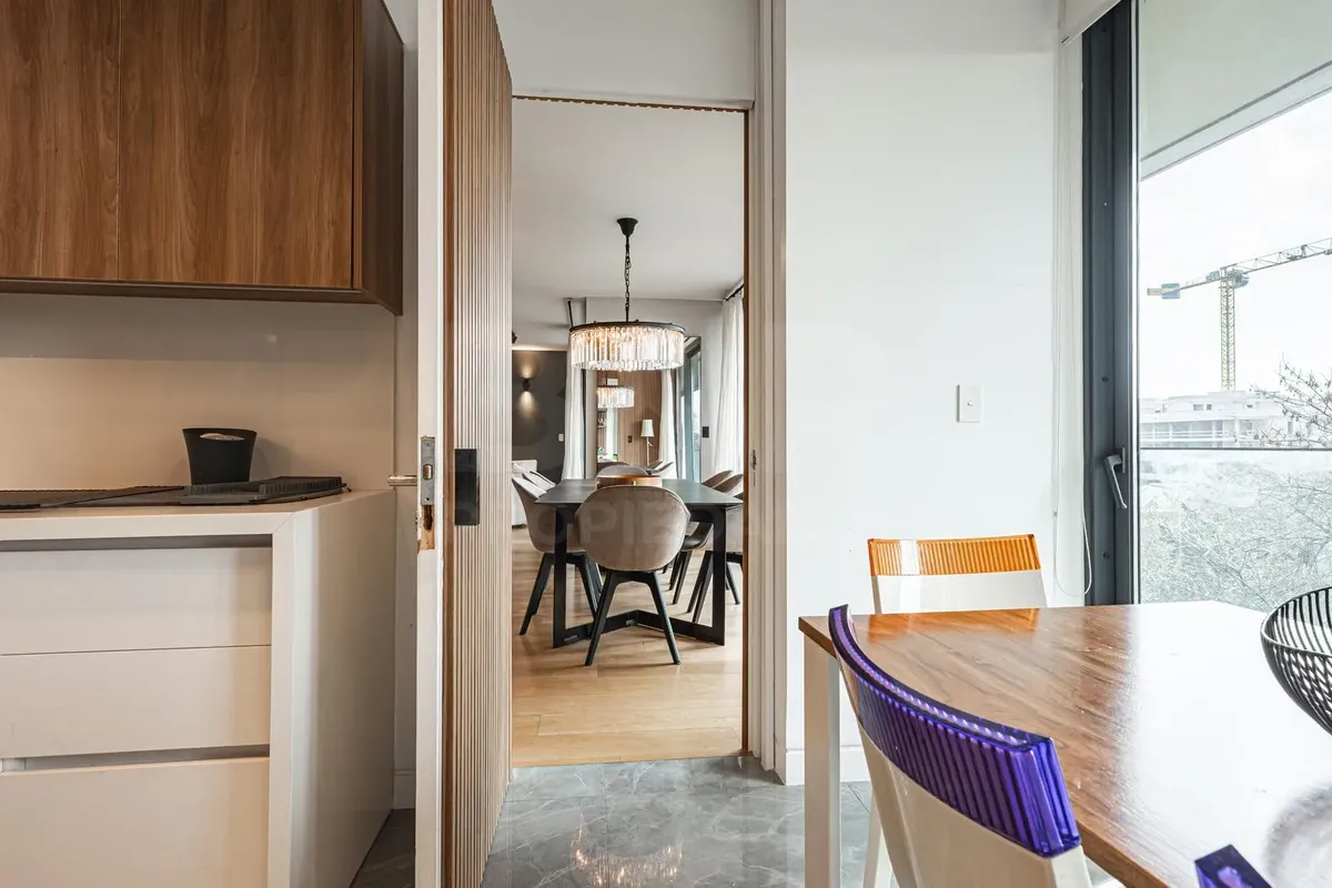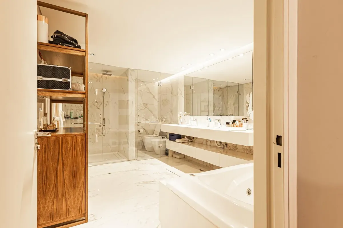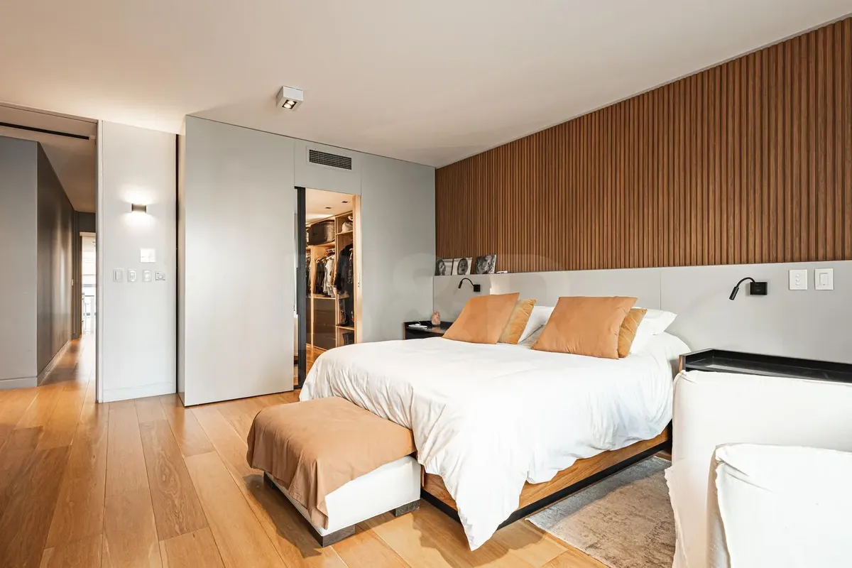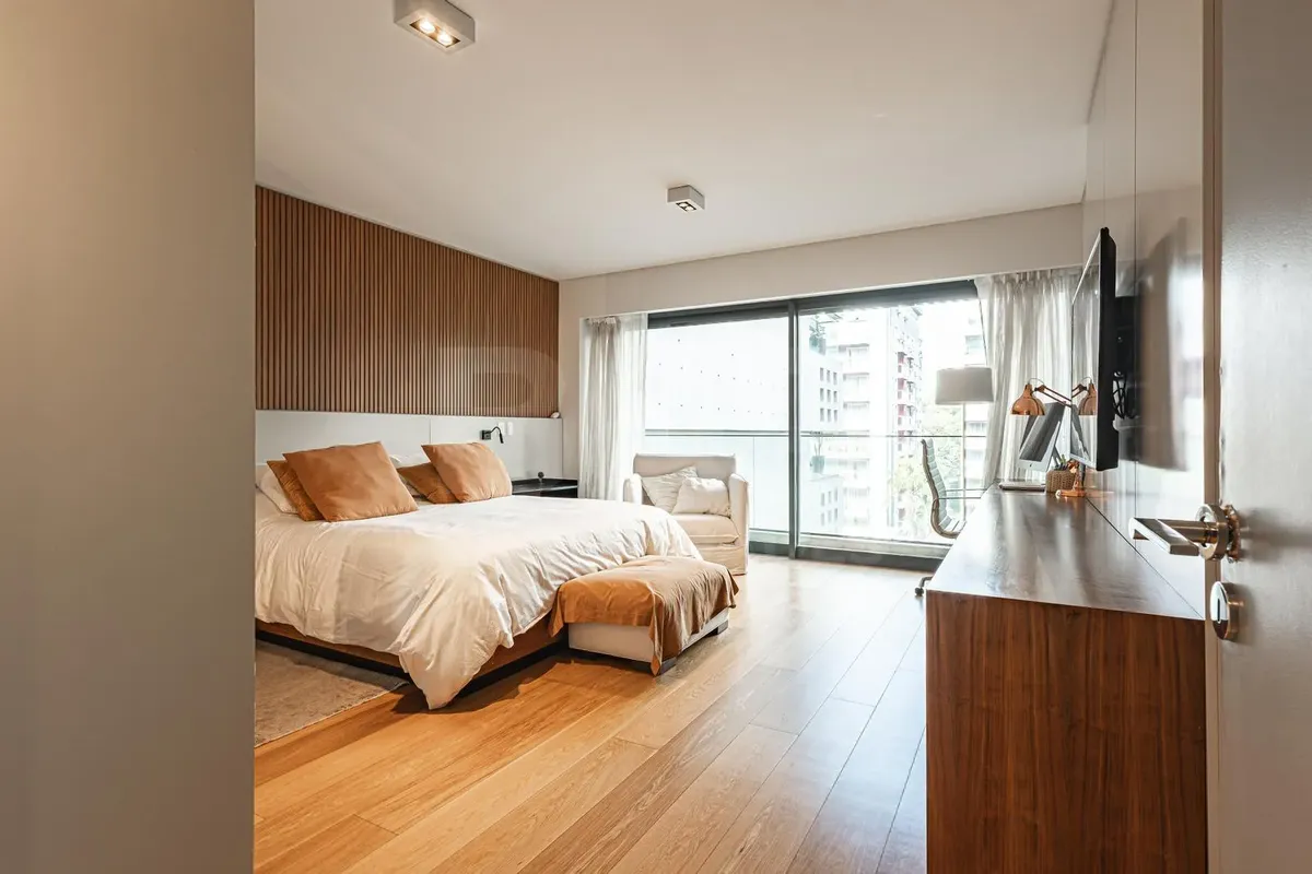 Apartamento de 4 dormitórios no edifício Velvet Sucre, em Belgrano Chico. São 333,85 m² totais, com 266,94 m² cobertos, 42,18 m² semicobertos e 24,73 m² de áreas de amenidades. O imóvel tem 4 suítes, master suite com duplo closet e banheiro principal, living com jantar de 8,80 x 9,50 m com saída para varanda em estilo aterrado, cozinha com sala de refeições diárias, dependência de serviço com banheiro e lavanderia independente, além de 2 varandas corridas. O prédio oferece piscina climatizada in