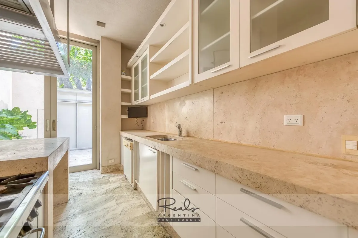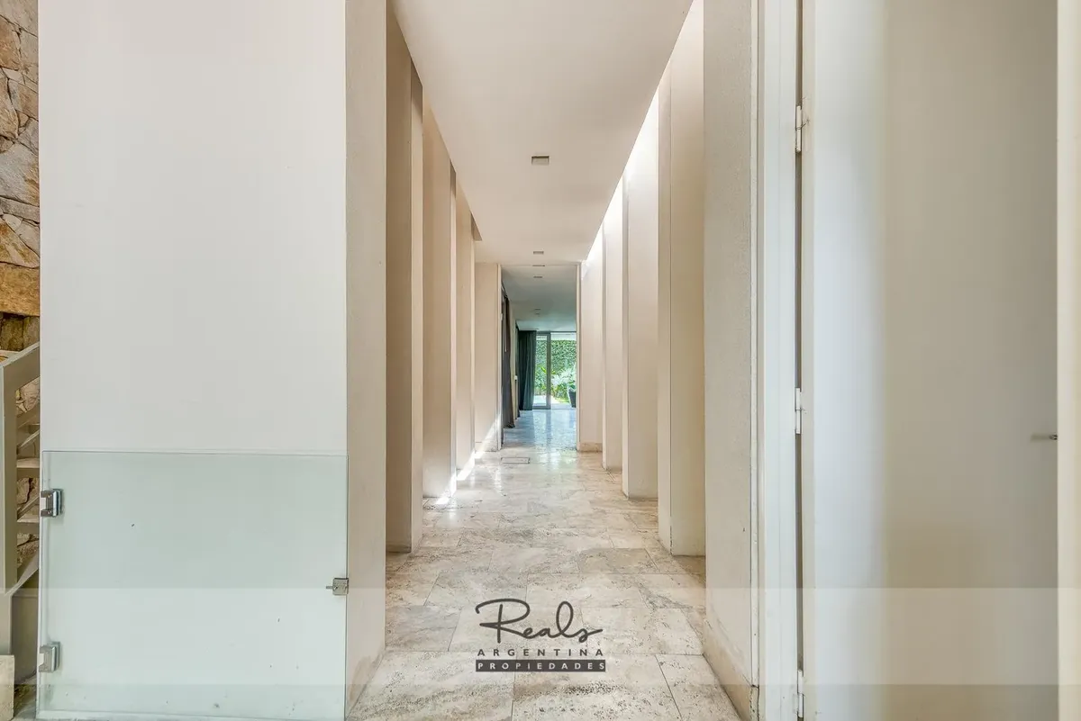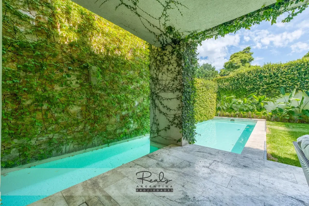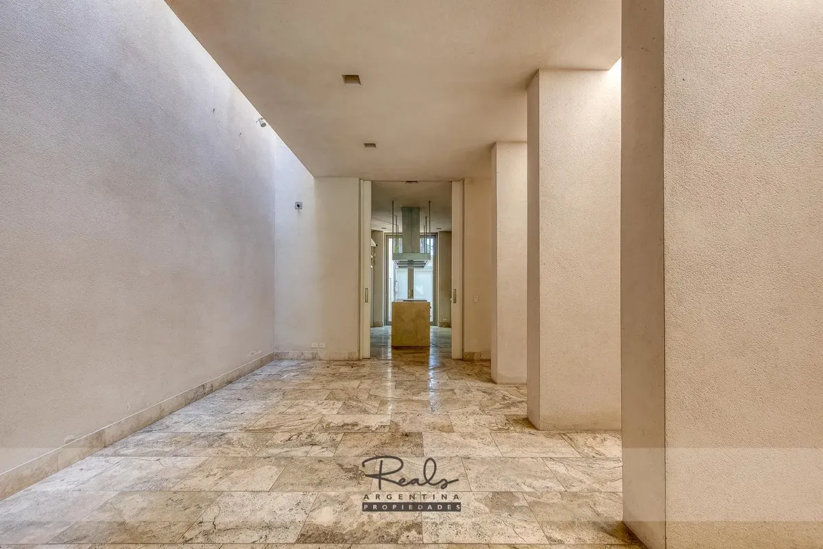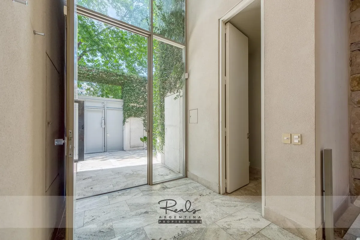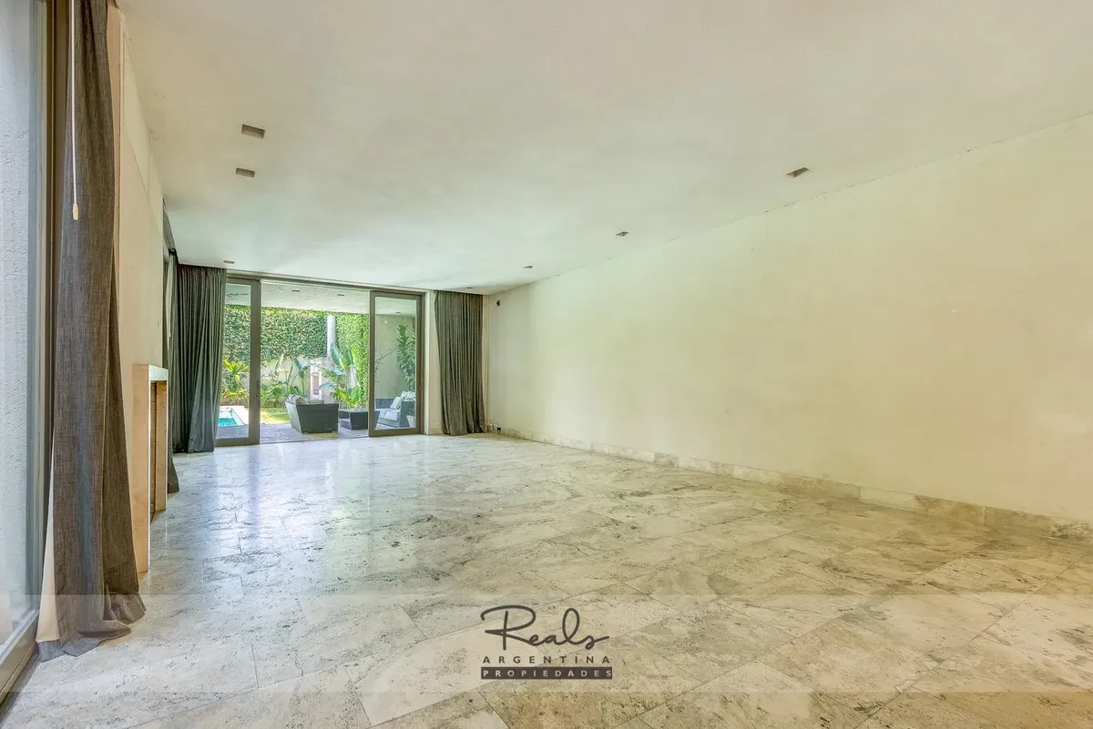 Casa em três plantas em Belgrano Chico, em terreno de 8,66 x 44 metros. Tem 4 dormitórios, 3 banheiros (sendo 1 master suite com terraço privativo) e uma dependência de serviço. Inclui 2 vagas de garagem (na frente), jardim, piscina, área de churrasco, hidromassagem, ar-condicionado individual, dois aquecedores de água e caldeira para aquecimento.