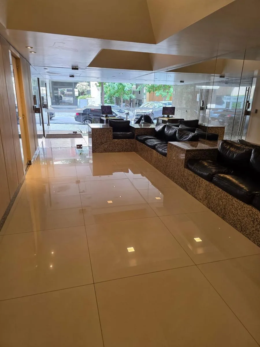 Semipiso de 5 ambientes, 4 dormitórios, com vaga de garagem fixa, em Caballito. Fica de fundos (contrafrente) e tem hall de entrada, living com saída para amplo balcão de frente para o norte, cozinha com área de refeições, lavabo social e lavanderia coberta. Possui 1 dormitório em suíte com closet, 2 dormitórios com armários embutidos, banheiro completo e dependência com toilette (pode funcionar como 4º dormitório), além de palier privativo. O aluguel exige seguro-fiança (caución) a escolha do p