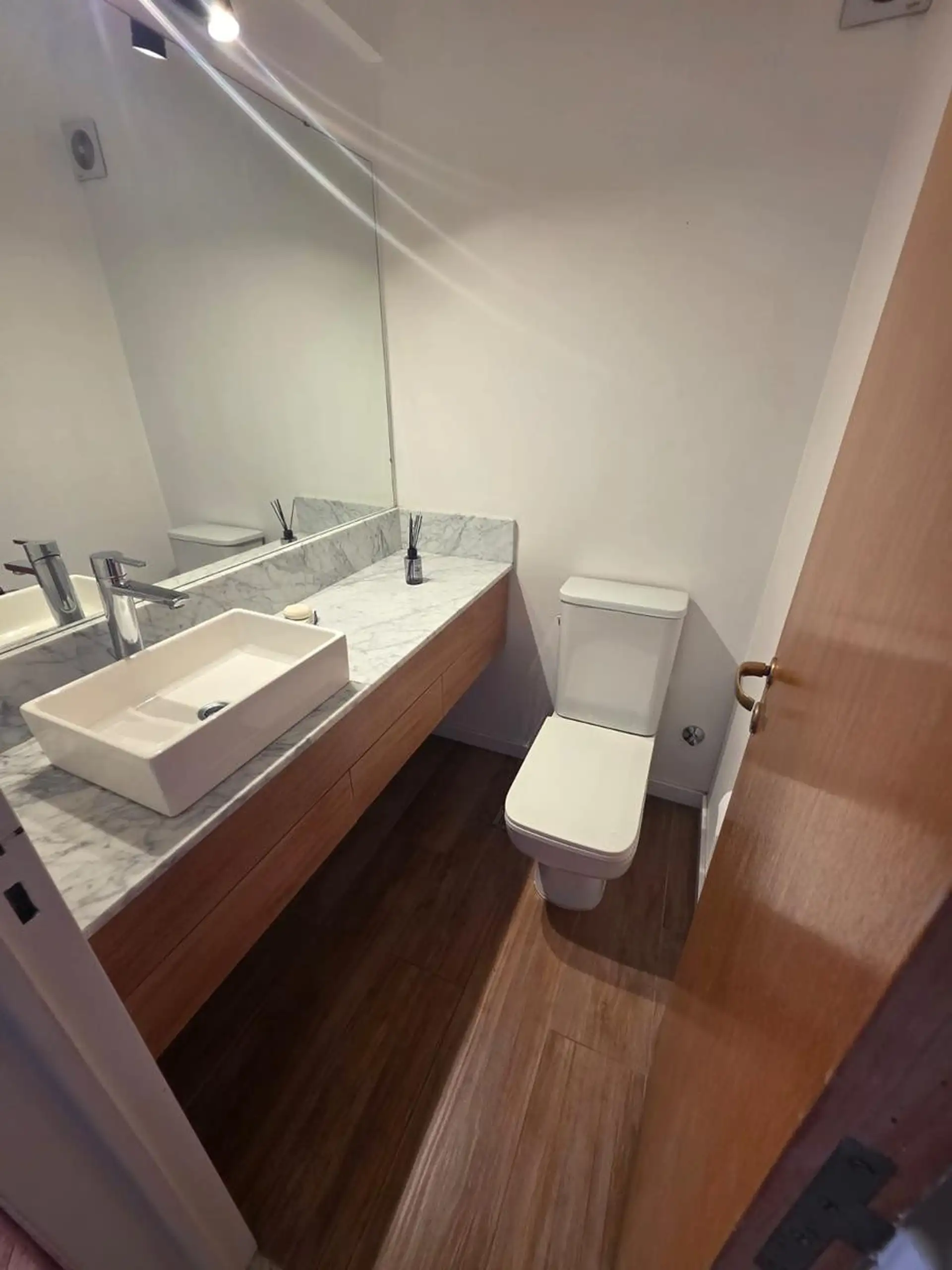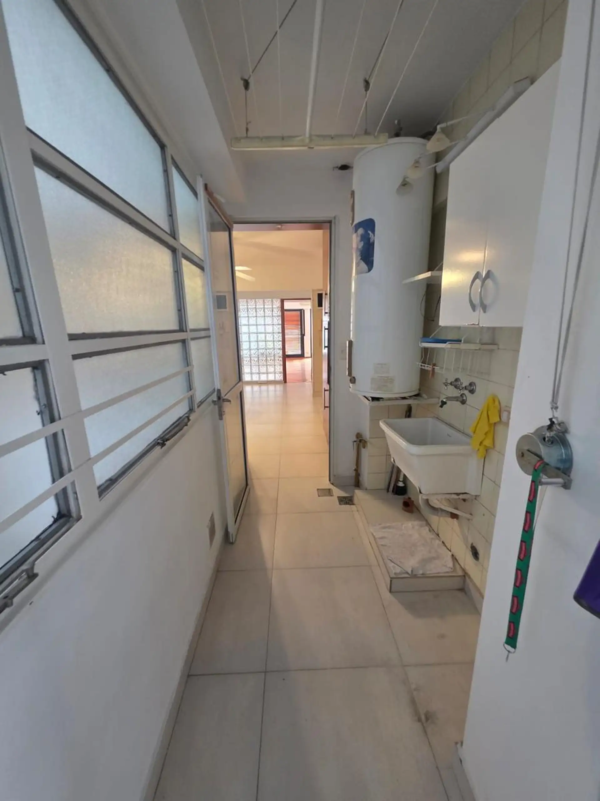 Meio andar (semipiso) de 5 ambientes, de fundos (contrafrente), com palier privativo e duas entradas, uma principal e outra de serviço. Conta com 4 quartos, sendo 1 suíte com closet; 2 dormitórios com armários; dependência que pode ser o 4º dormitório; sala de estar e jantar com saída para varanda ampla com orientação norte e terraço. Inclui cozinha com área de refeições, lavabo de recepção, banheiro completo e lavadero coberto; há muita área de guarda e 1 vaga de garagem (fixa). Fica a poucos m