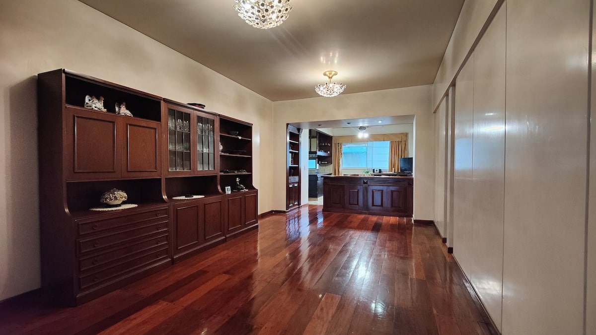 Apartamento em andar inteiro em Caballito, com 5 quartos (2 suítes) e varanda. Conta com sauna privativa e piano. Possui 2 entradas: entrada principal e entrada de serviço. O condomínio inclui segurança 24 horas e há 1 vaga de garagem.