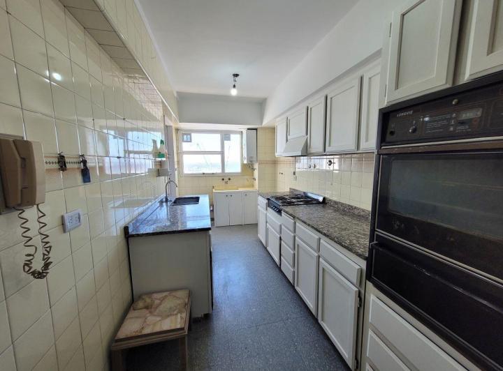 Apartamento de 4 ambientes com dependência, no 22º andar, em Caballito. Possui varanda com vista panorâmica, sala de estar e jantar com ar-condicionado, cozinha com copa diária, 3 dormitórios com ar-condicionado e 2 banheiros completos além de lavabo. Tem entrada dupla, aquecimento de água a gás e depósito no 23º andar (baulera tipo jaula). Condomínio com encarregado e segurança com totem, acesso por chave de proximidade. Aluguel de 24 meses; vaga de garagem (fixa) é optativa por ARS 200.000. Co