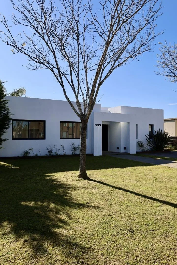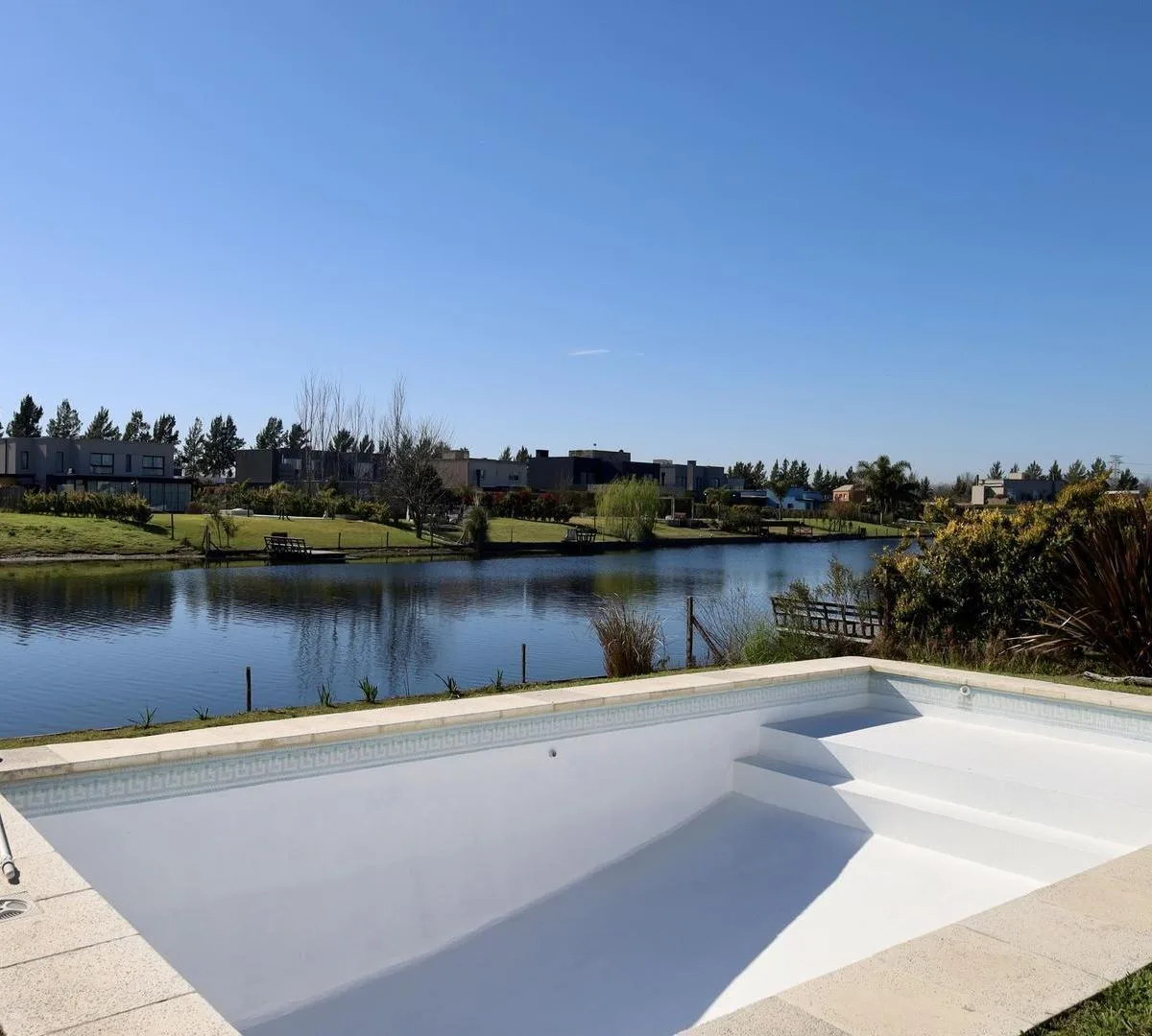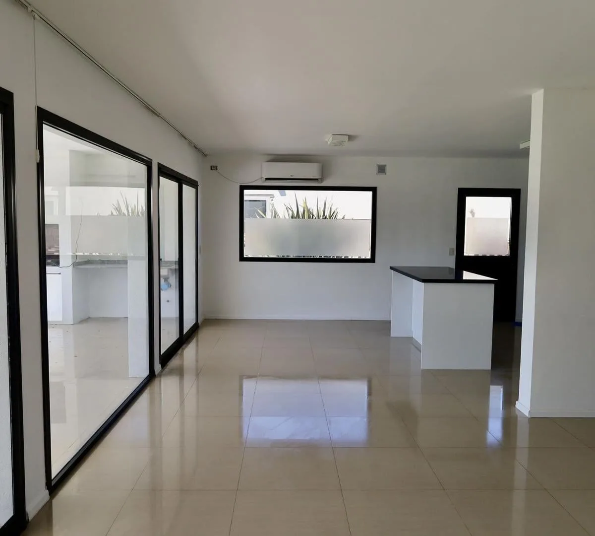 Casa em uma planta em San Matías (Área 1), Escobar, com vista para a laguna San Matías, reformada. São 190 m² cobertos em terreno de quase 1.000 m², com 3 dormitórios + dependência de serviço, incluindo suíte com closet e espaço para escritório com vista para a laguna. Possui 2 banheiros completos, sala de estar e jantar integradas à cozinha com ilha, ar-condicionado em cada ambiente, dependência de serviço e lavanderia independente. A área externa tem galeria coberta com área de churrasco e pis