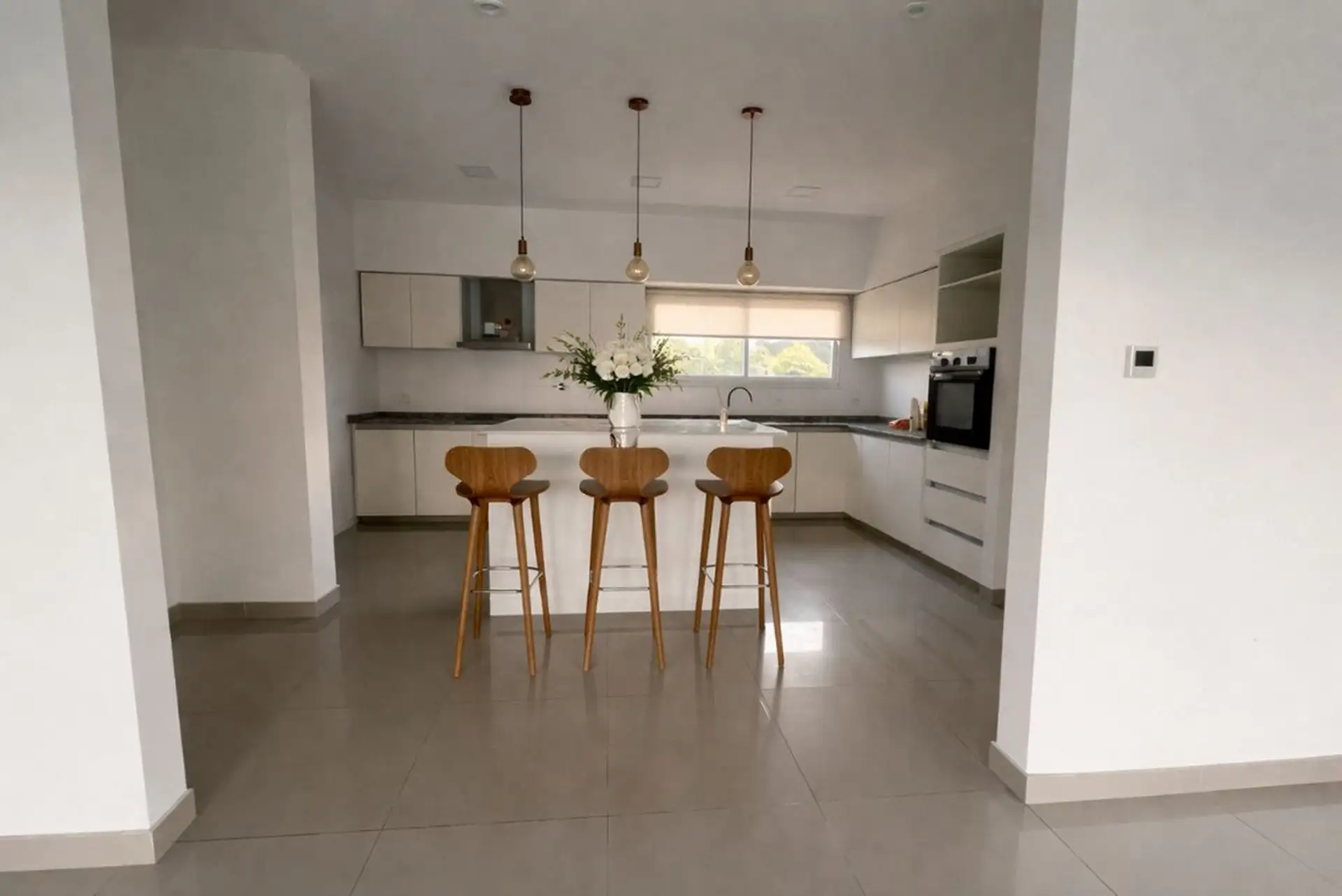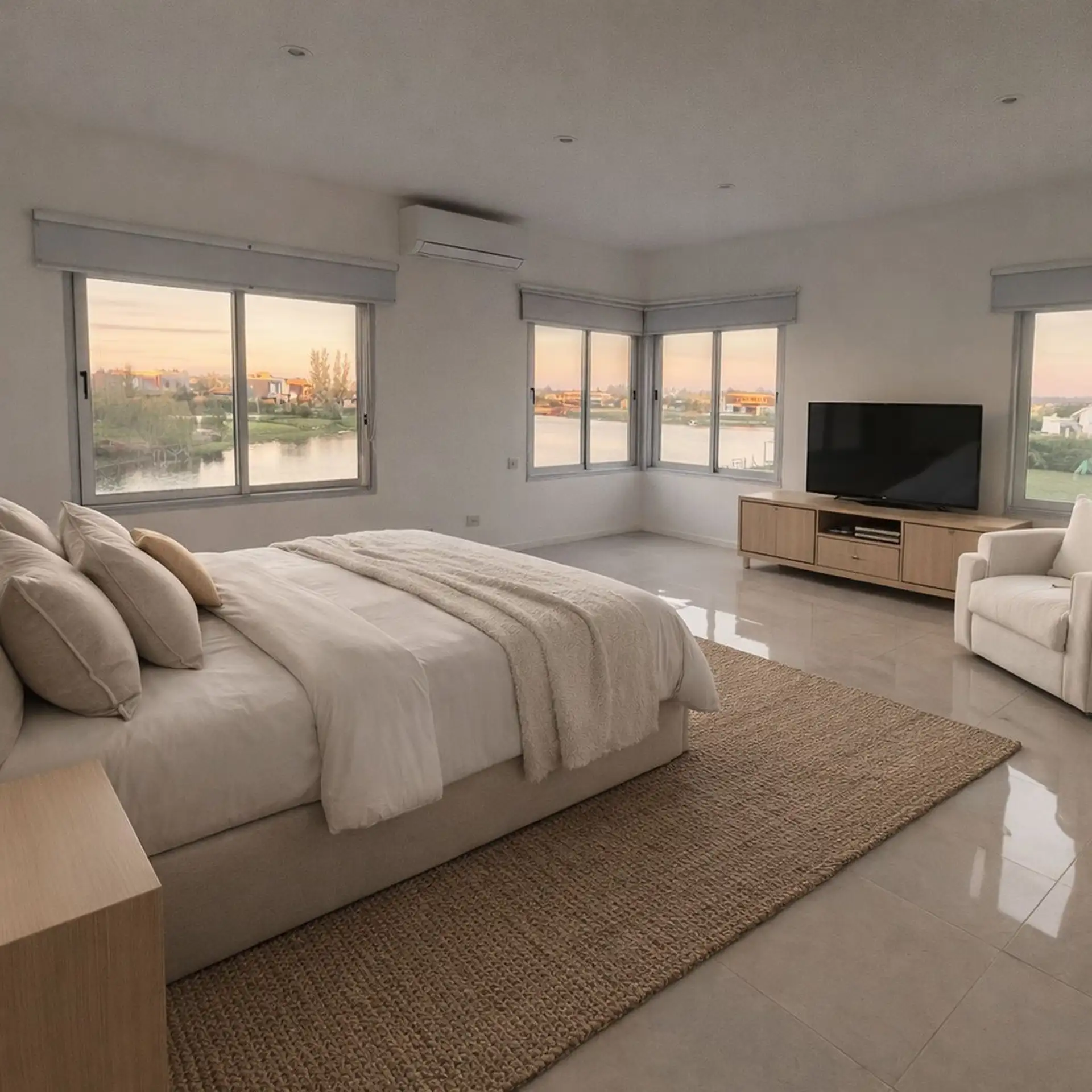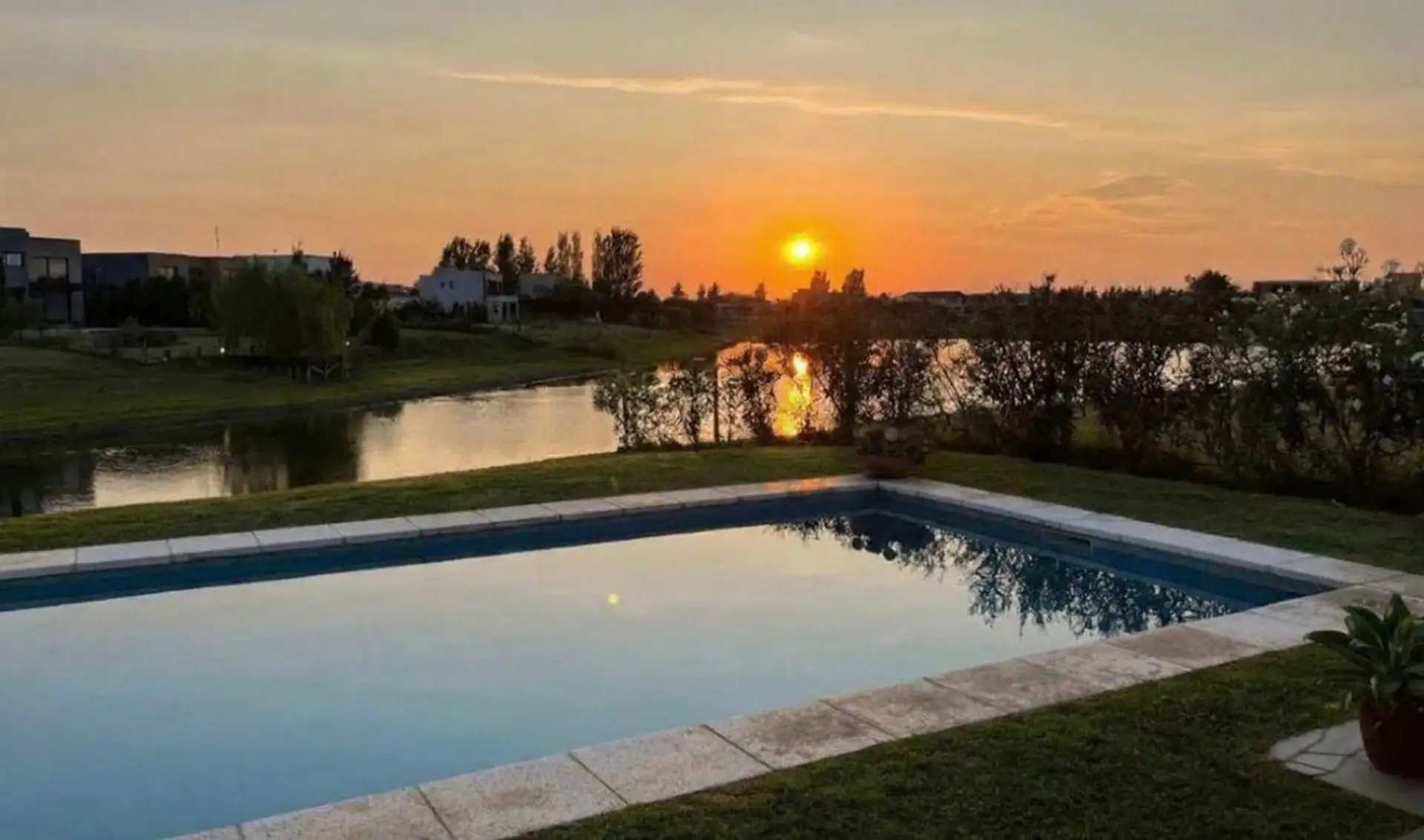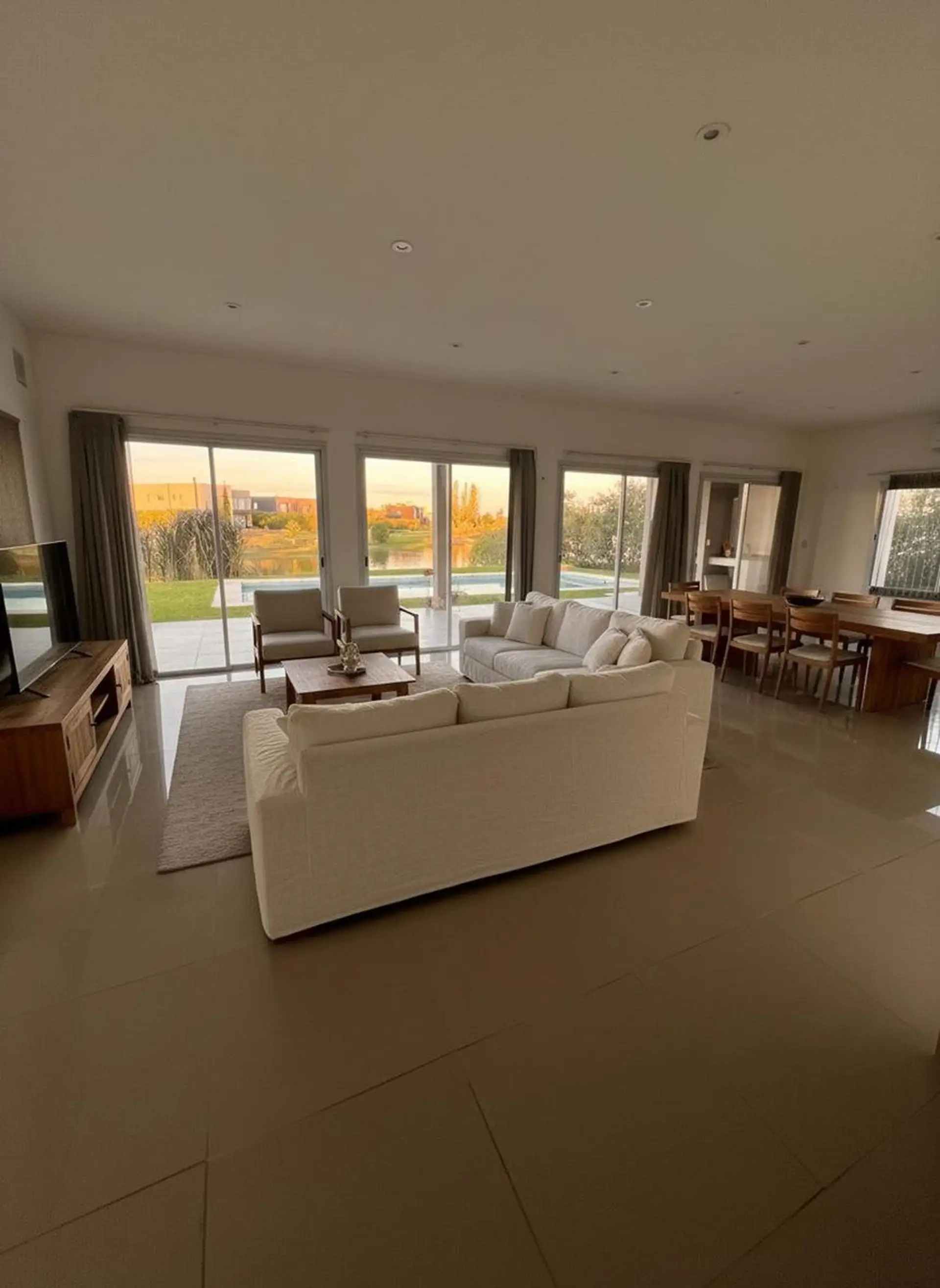 Casa para aluguel anual em San Matías, Escobar, com 5 ambientes e frente para a laguna. Há piscina com vista para a laguna e galeria coberta com área de churrasco, além de parque com sistema de irrigação e área externa com espaço para 6 carros. Na planta baixa, tem living com sala de jantar, cozinha semi integrada com ilha e lavabo de recepção com depósito, além de suíte para hóspedes ou escritório, banheiro externo e área de lavanderia com entrada independente. Na planta alta, há escritório abe