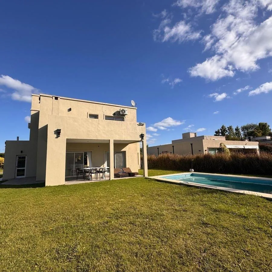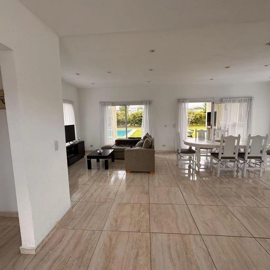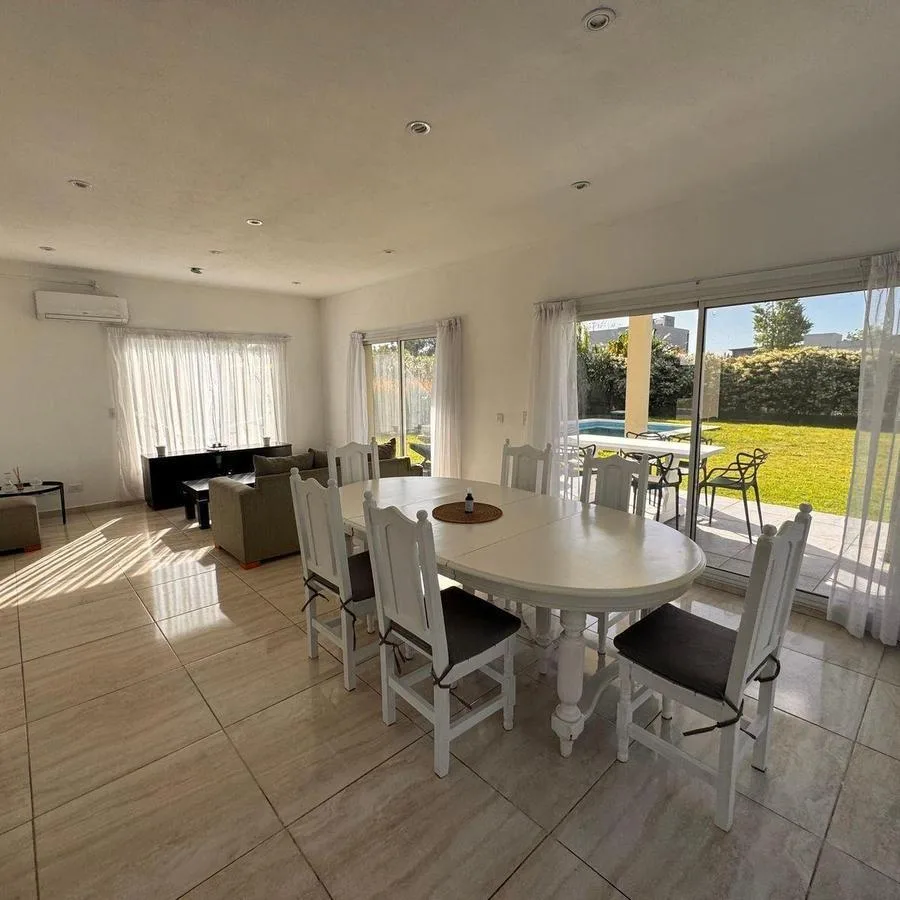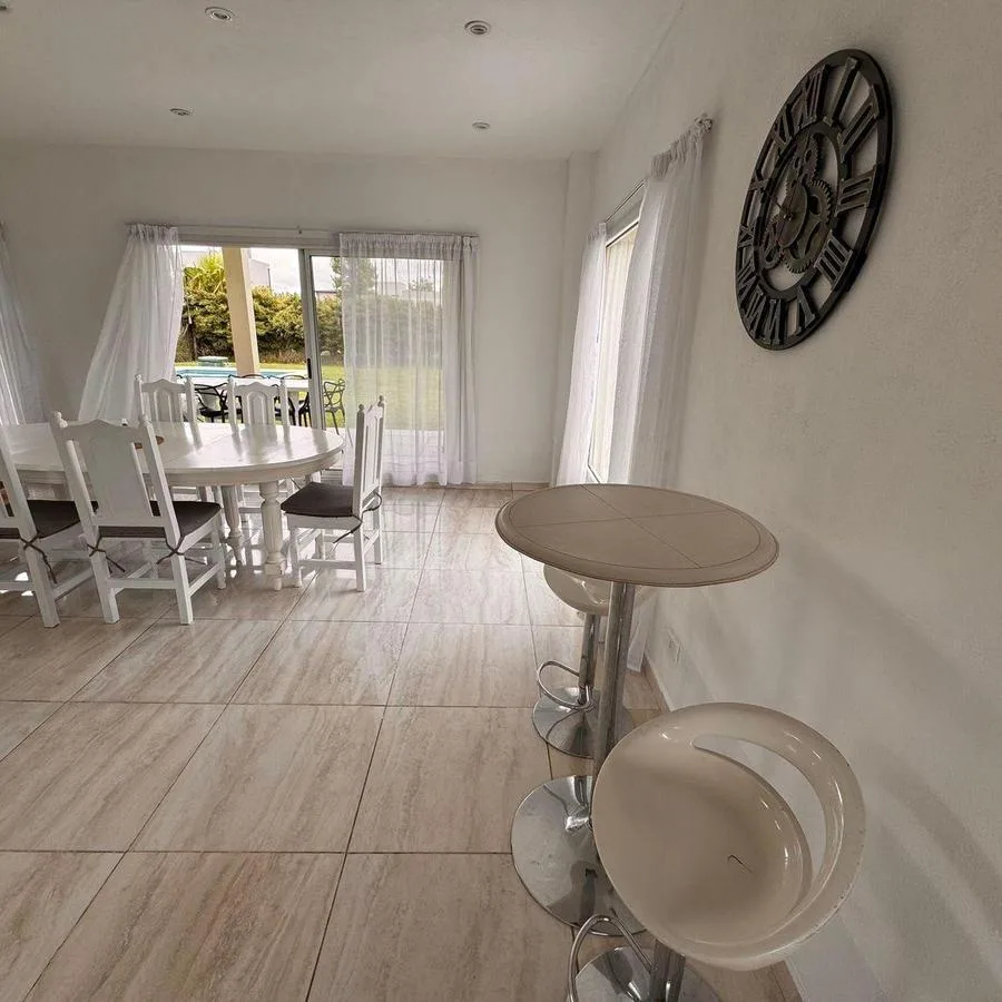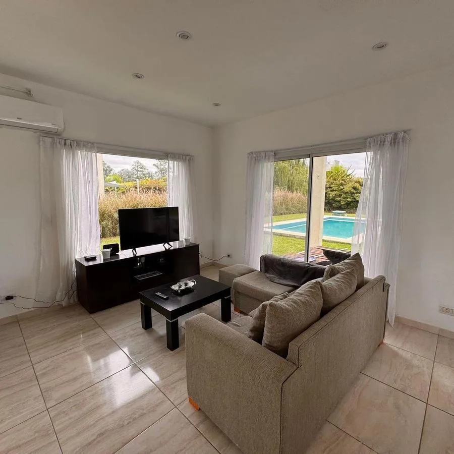 Casa mobiliada em Santa Juana, Canning, desenvolvida em 2 plantas. No piso térreo: 1 dormitório, 1 banheiro completo, living com sala de jantar e área de churrasco com parrilla, além de área de lavanderia e parque com piscina. No piso superior: 3 dormitórios, sendo o principal com closet e banheiro em suíte, e mais 1 banheiro completo. Conta com gerador e aquecimento por piso radiante nos dormitórios e no living.