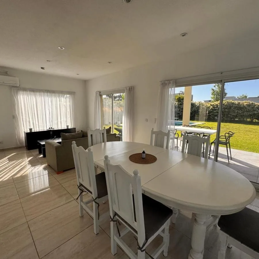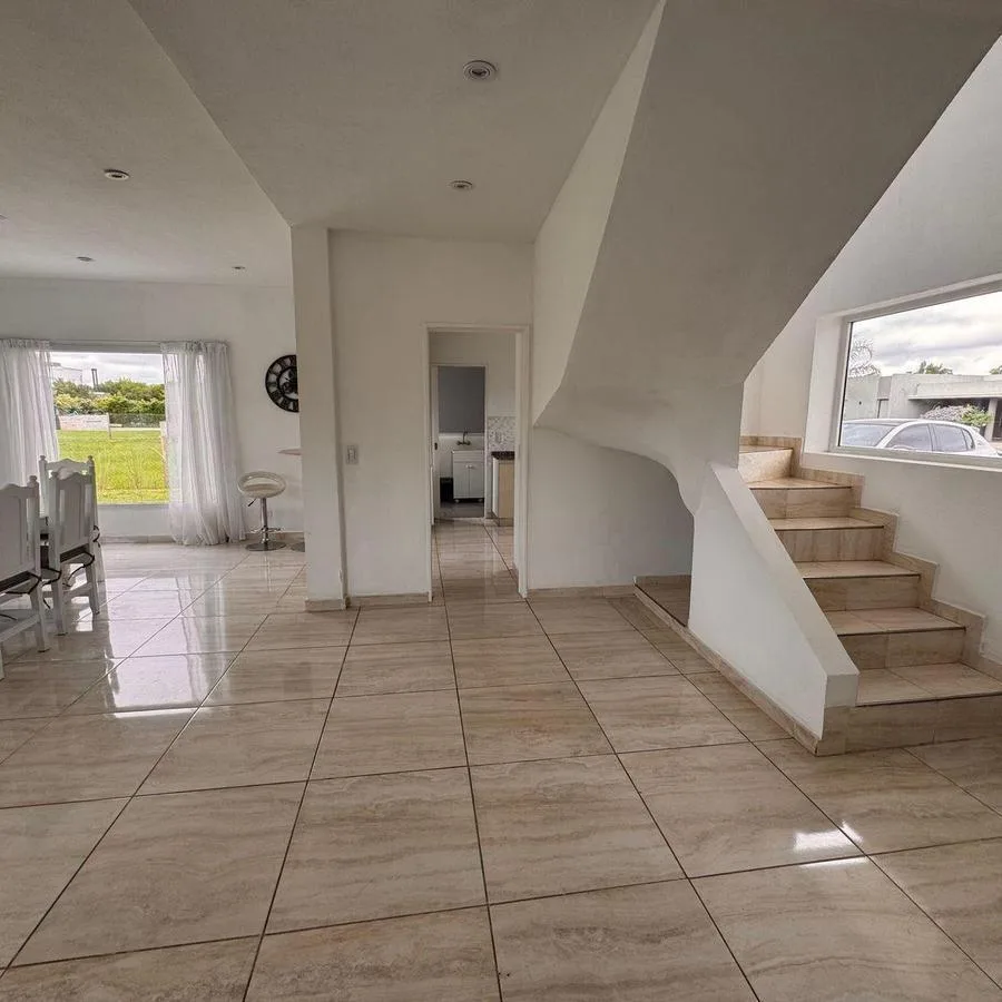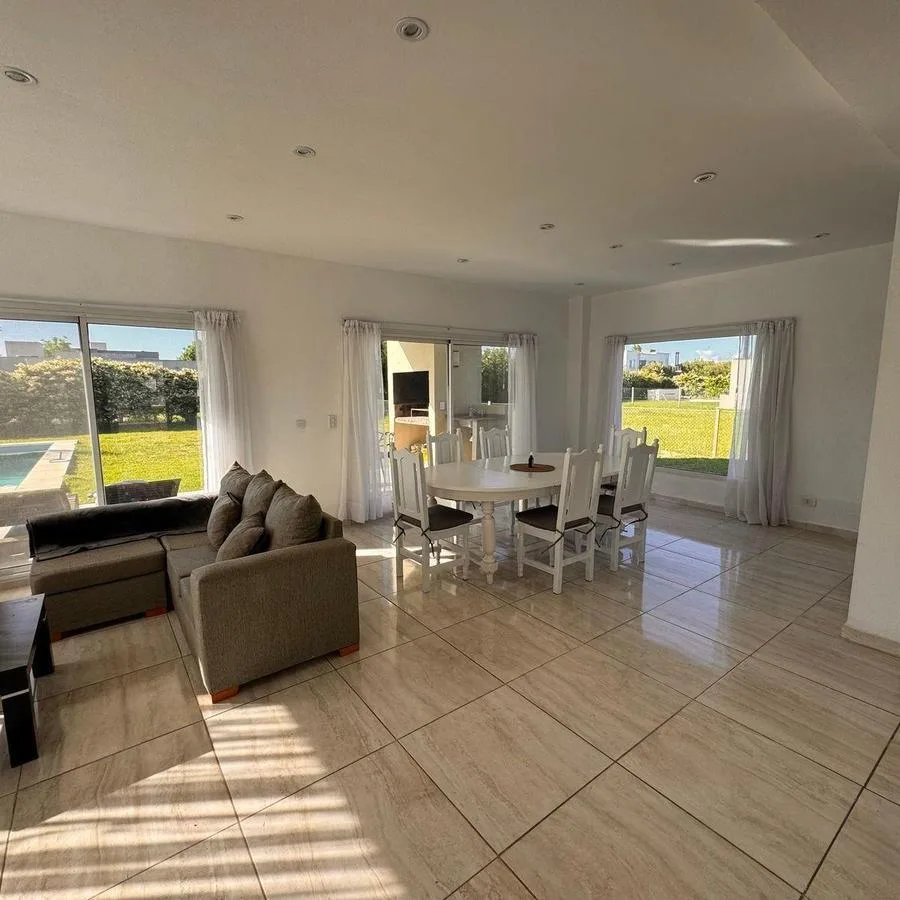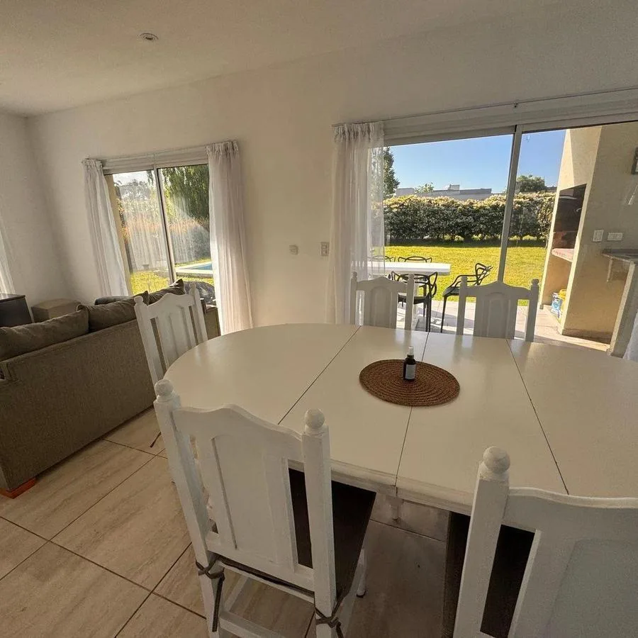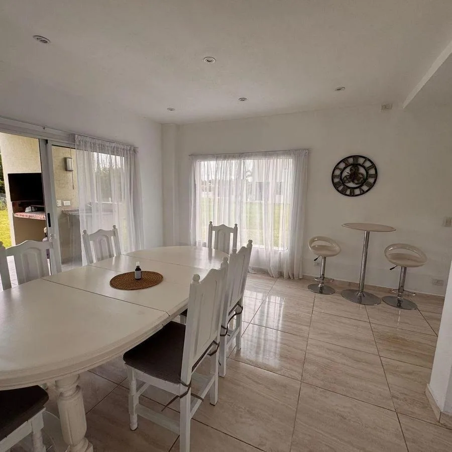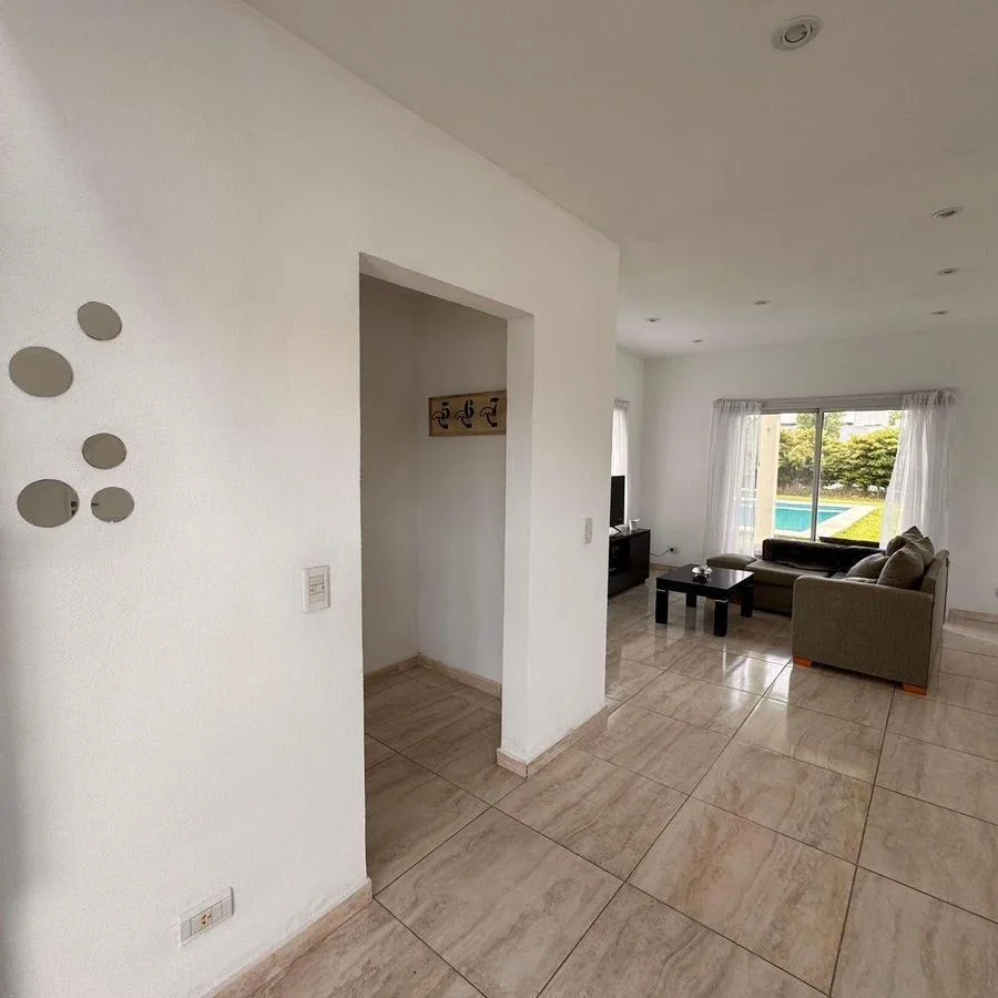 Casa mobiliada em Santa Juana, Canning, desenvolvida em 2 plantas. No piso térreo: 1 dormitório, 1 banheiro completo, living com sala de jantar e área de churrasco com parrilla, além de área de lavanderia e parque com piscina. No piso superior: 3 dormitórios, sendo o principal com closet e banheiro em suíte, e mais 1 banheiro completo. Conta com gerador e aquecimento por piso radiante nos dormitórios e no living.