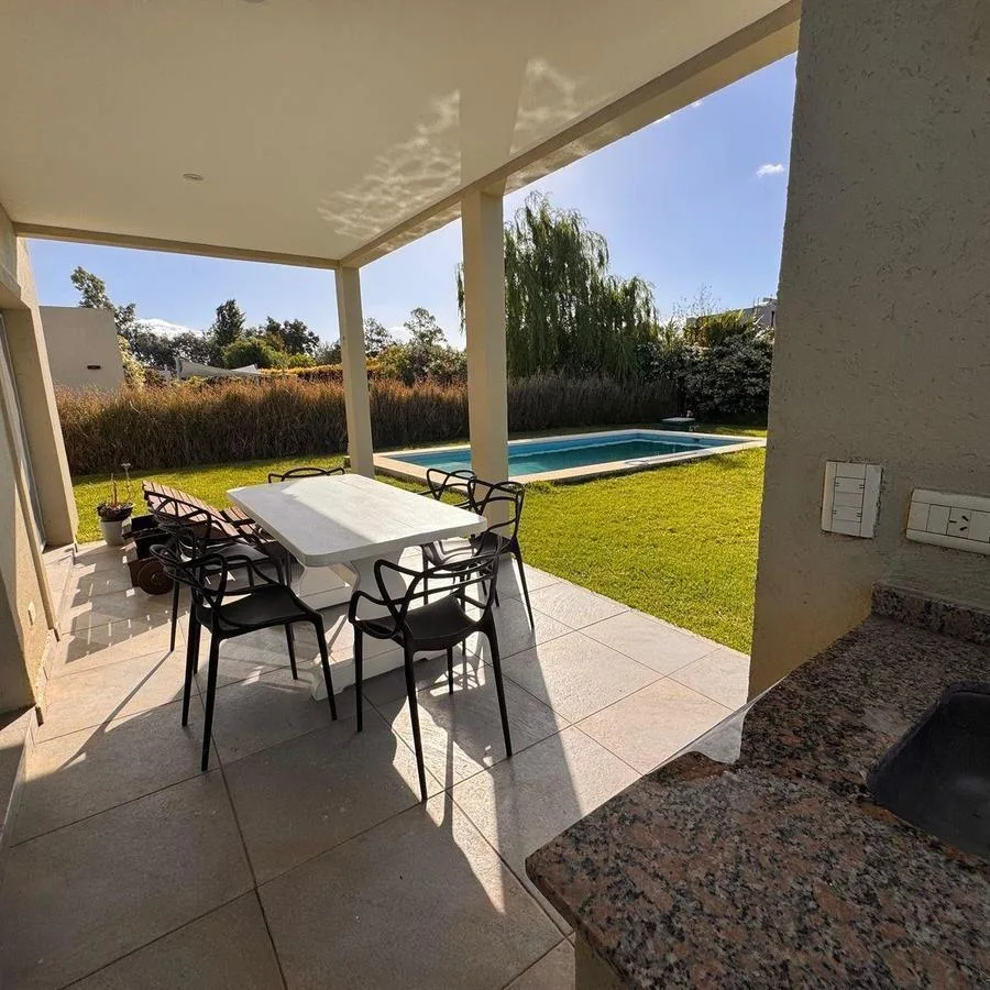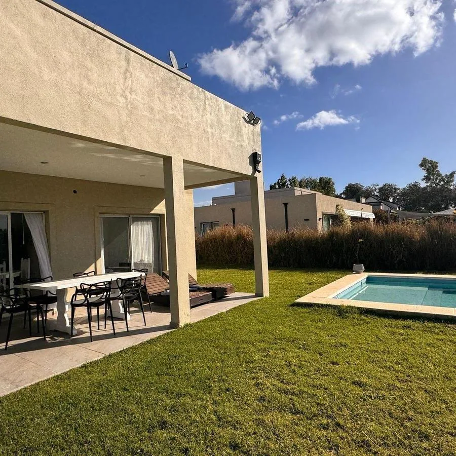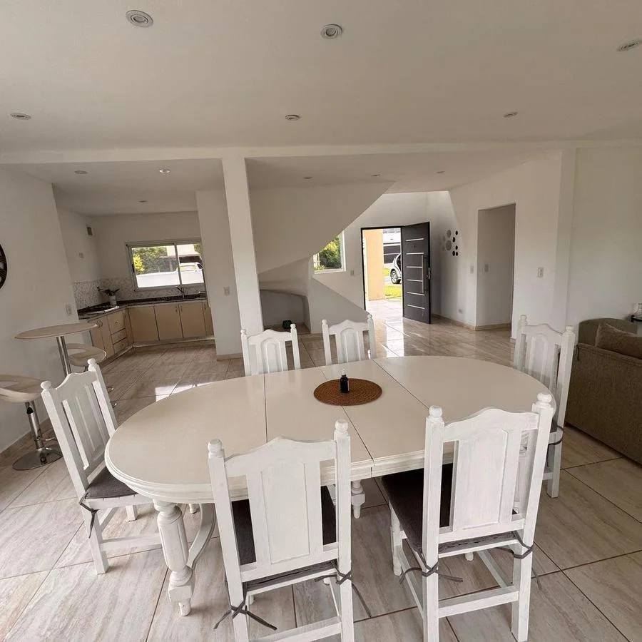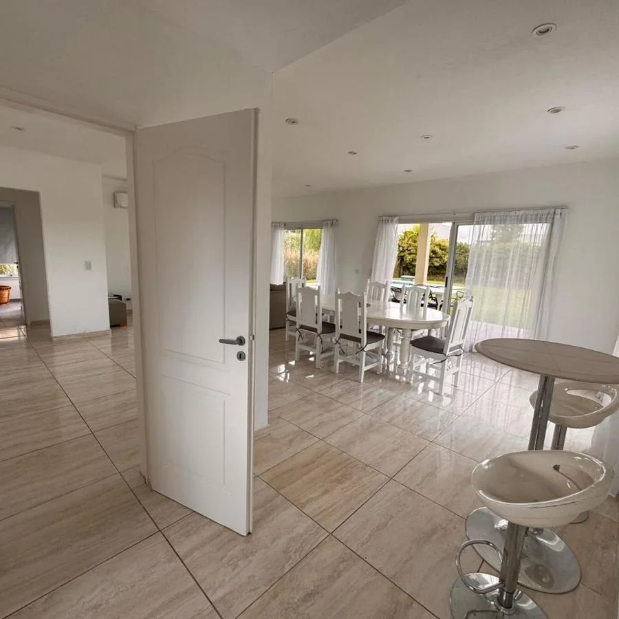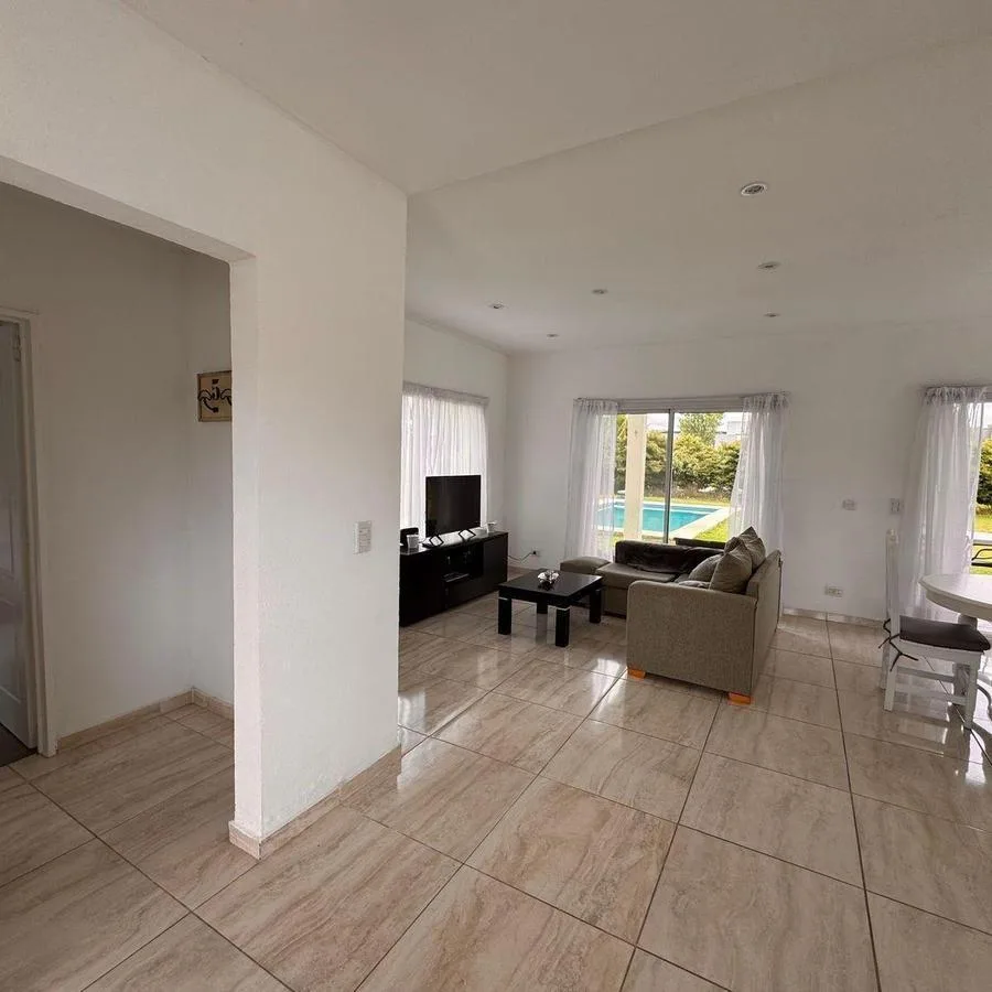 Casa mobiliada em Santa Juana, Canning, desenvolvida em 2 plantas. No piso térreo: 1 dormitório, 1 banheiro completo, living com sala de jantar e área de churrasco com parrilla, além de área de lavanderia e parque com piscina. No piso superior: 3 dormitórios, sendo o principal com closet e banheiro em suíte, e mais 1 banheiro completo. Conta com gerador e aquecimento por piso radiante nos dormitórios e no living.
