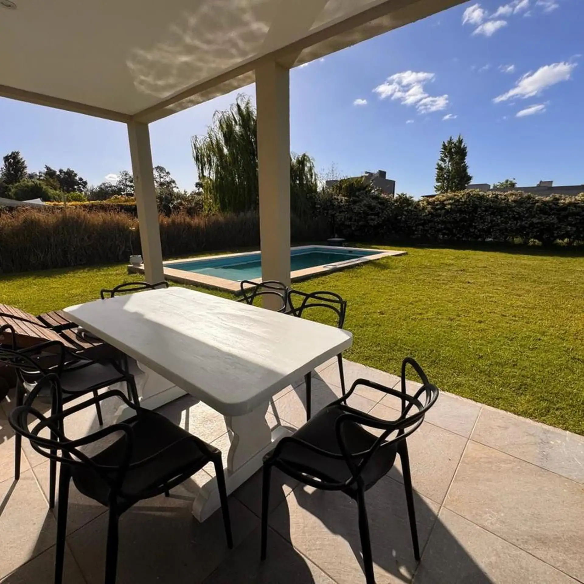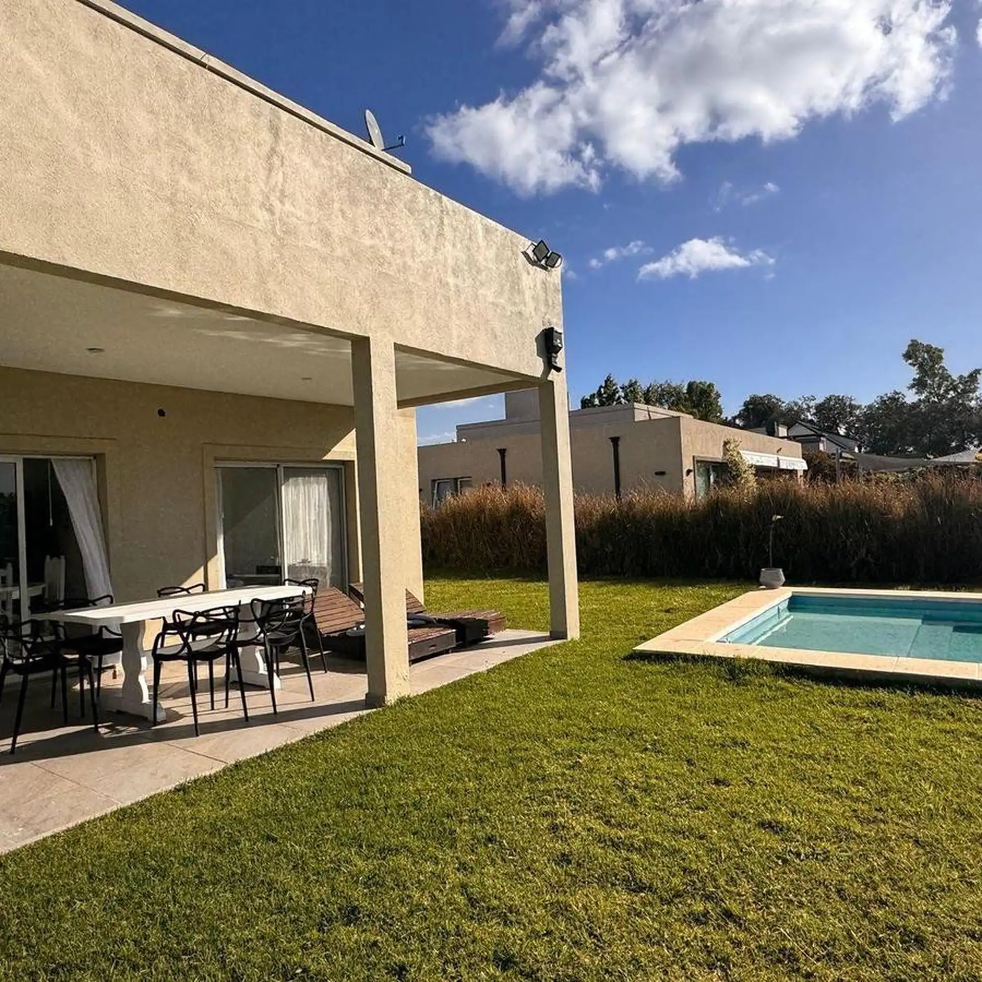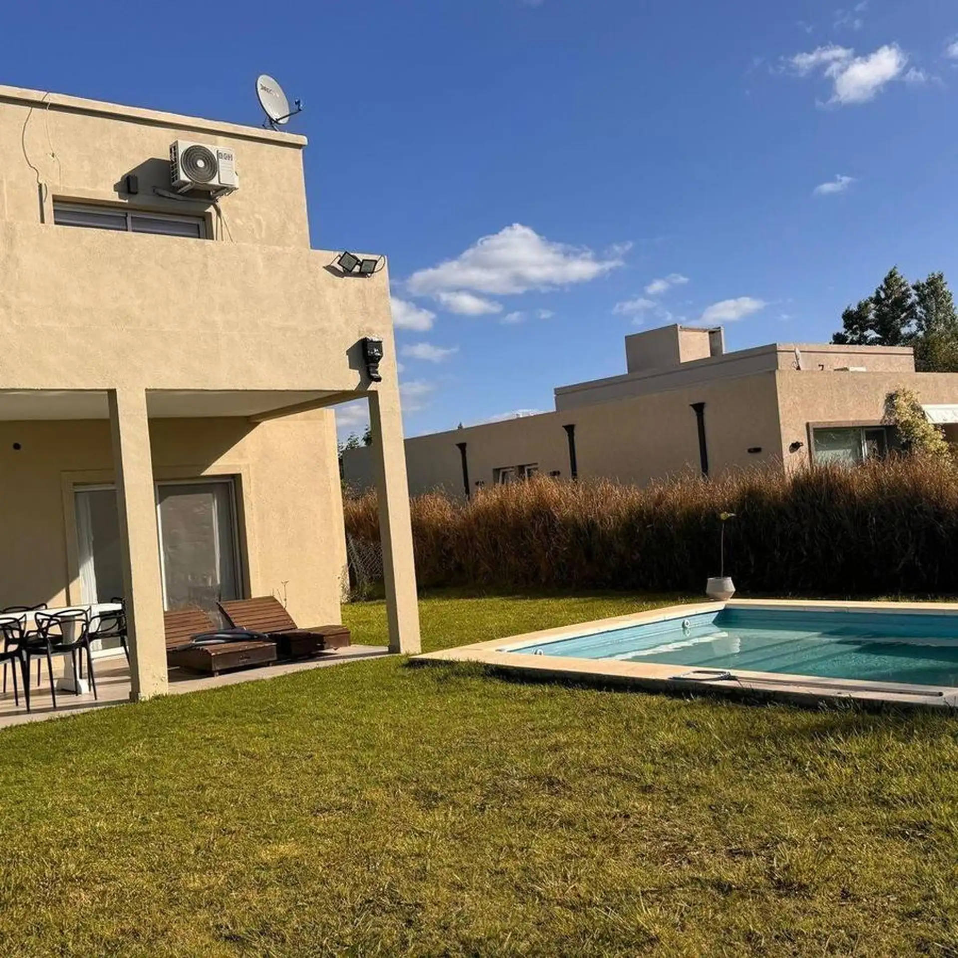 Casa mobiliada em Santa Juana, desenvolvida em dois andares, com 4 dormitórios. No piso térreo: 1 dormitório, 1 banheiro completo, sala de estar e jantar integrada, área de churrasco com churrasqueira, lavanderia e jardim com piscina. No andar superior: 3 dormitórios, incluindo suíte do dormitório principal com closet, além de mais 1 banheiro completo. Possui gerador e aquecimento por piso radiante, com ar-condicionado nos dormitórios do andar superior e na sala. Cozinha com forno e fogão Domec