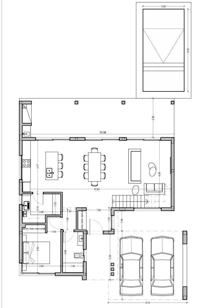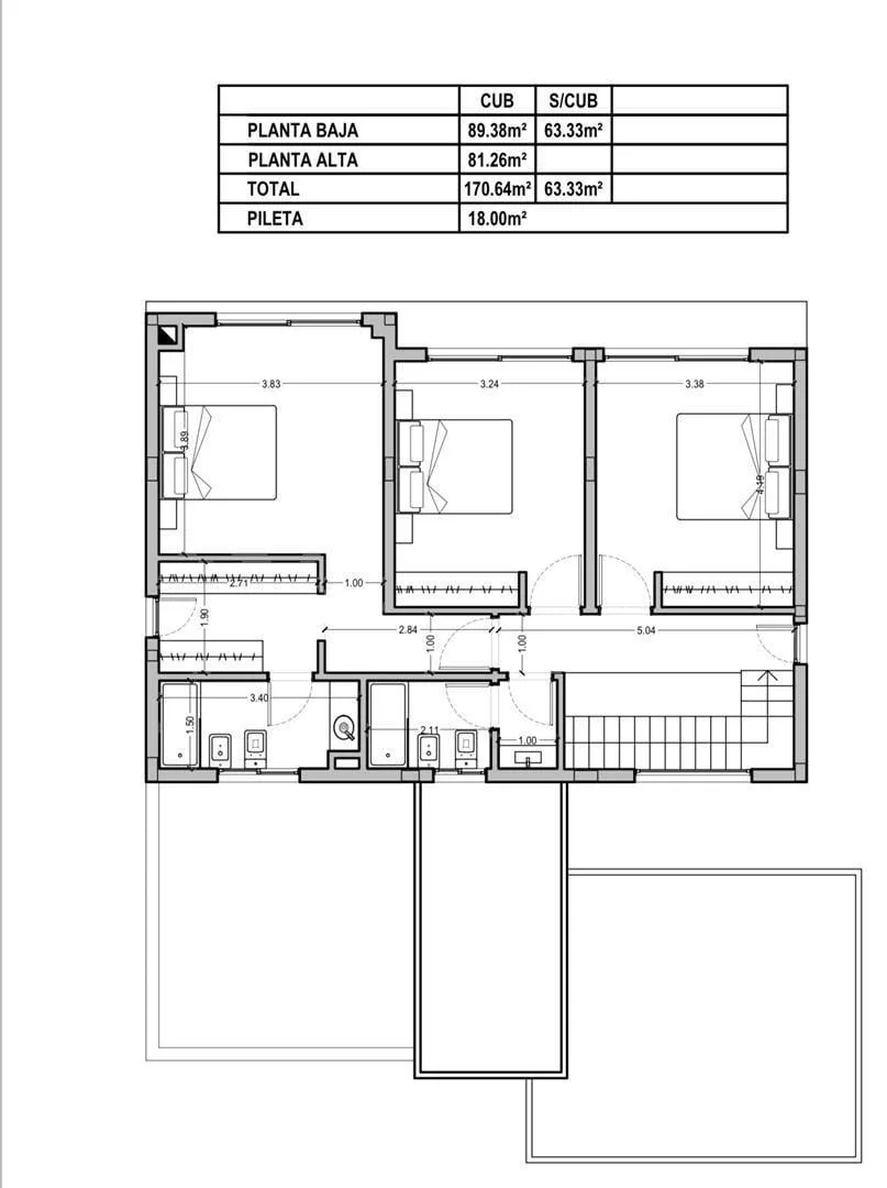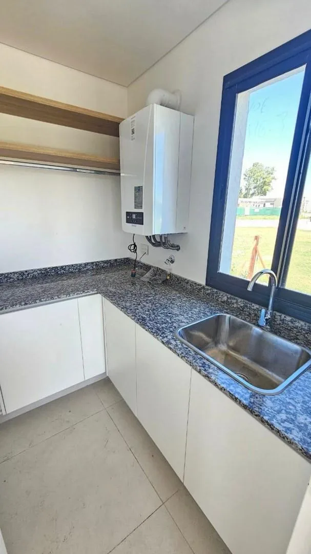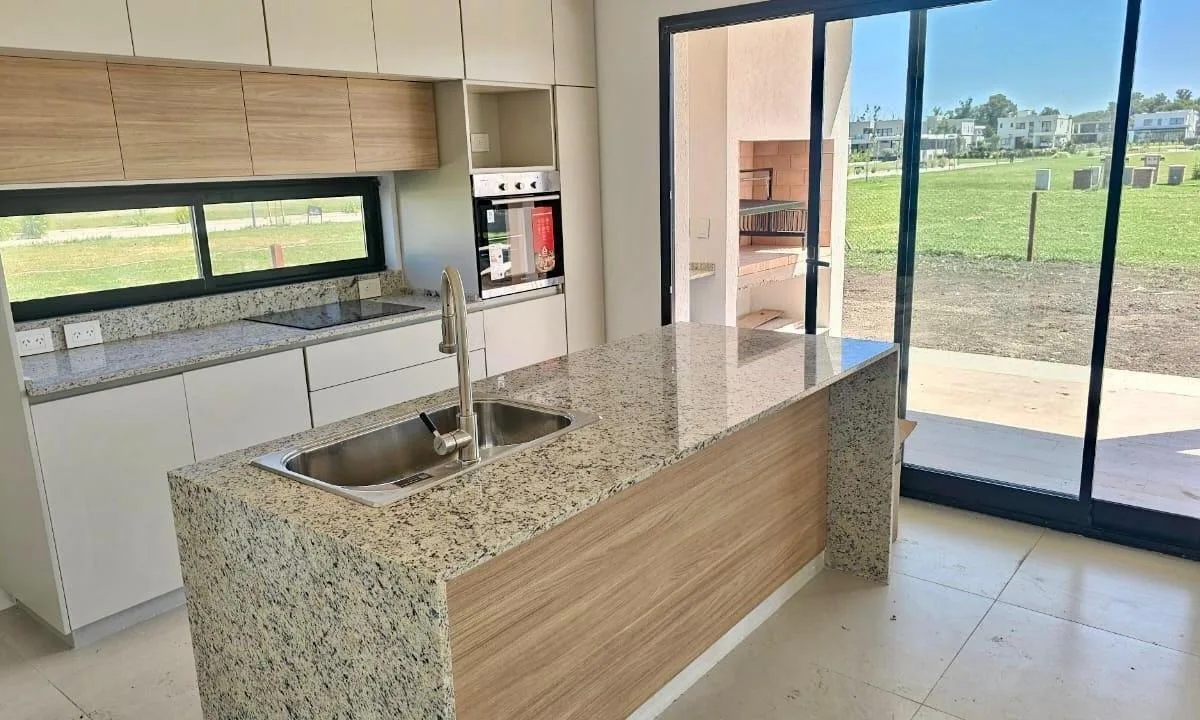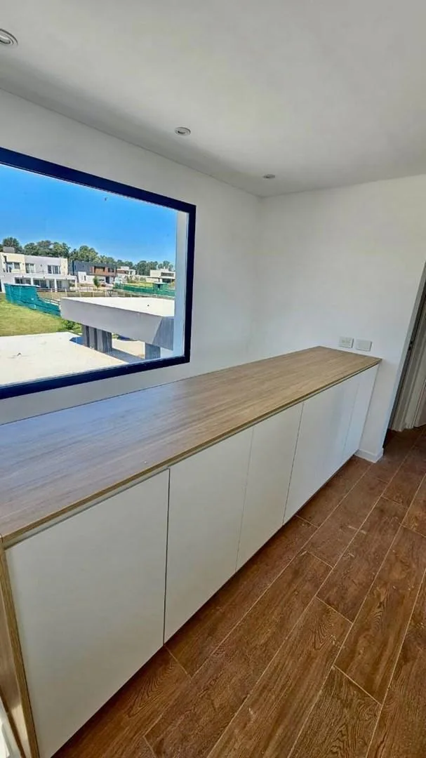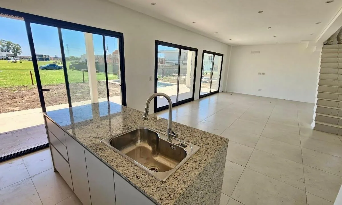 Casa de 234 m² em dois andares em Canning Chico, Esteban Echeverría, com piscina. A entrega está prevista para 2 meses. No térreo, há porch de entrada com pé-direito duplo, hall de recepção, living e jantar integrados à cozinha, lavabo, cozinha mobiliada com ilha central, área de refeições diárias integrada, churrasqueira com fechamento em aço, lavanderia interna mobiliada e banheiro completo em um dormitório, além de porta lateral para o exterior. No andar superior, há escada de conceito aberto