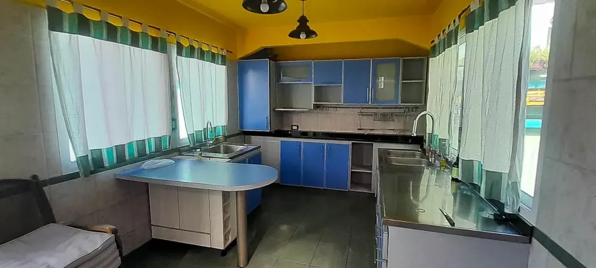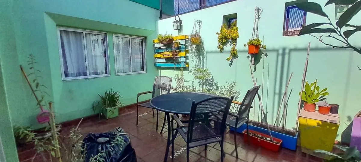 Apartamento em Villa Ballester, com 4 dormitórios e 2 banheiros, no 1º andar sem elevador e com entrada independente. Possui living e área de jantar, cozinha com área para refeições separada, 1 dormitório principal em suíte com banho com hidromassagem e 1º dormitório com armários e balcão voltado para a rua. Conta com pátio interno, além de pátio amplo e área de churrasco (quincho) com parrilla, forno a lenha, fogão/queimador e bancada. No 2º andar há um escritório mobiliado com mesa e bibliotec