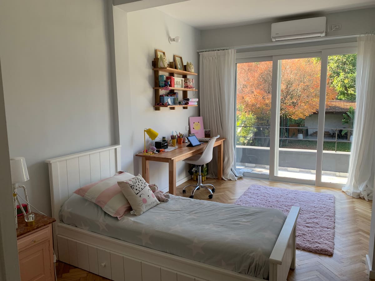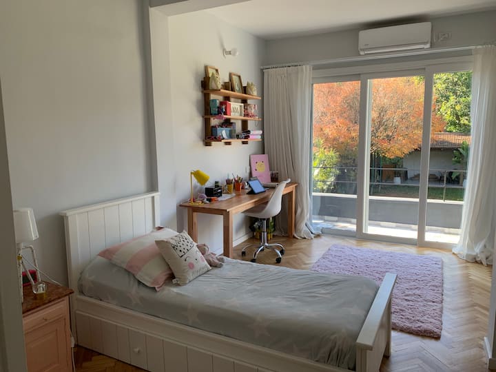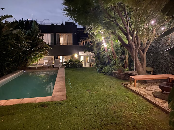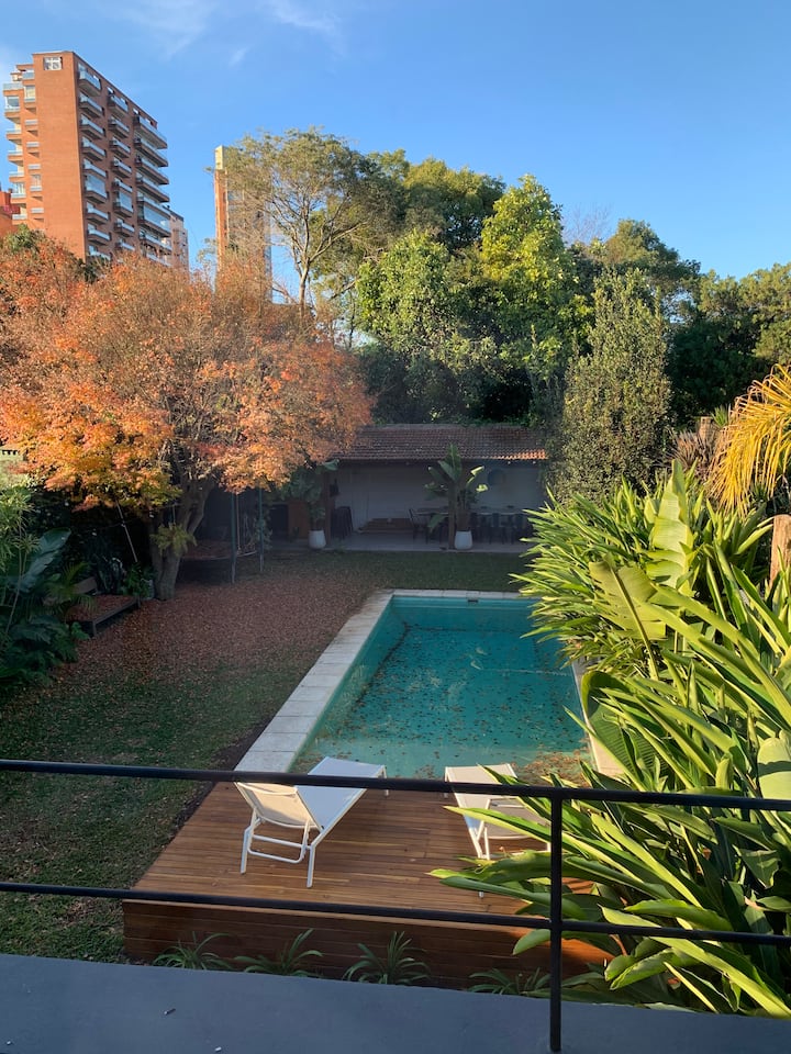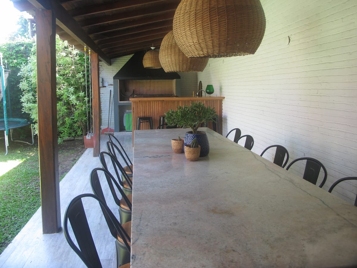 Casa em 2 andares em La Lucila, com 330 m² cobertos e 250 m² de jardim. Há piscina de 4 x 9 m e área de churrasco (quincho) com churrasqueira. No térreo, hall de recepção, lavabo, living, sala de jantar, cozinha completa com lava-louças, mesa para 6 pessoas no refeitório diário, playroom com saída para o jardim e ar-condicionado, além de vaga de garagem coberta. No andar superior, 3 dormitórios (incluindo suíte com closet e acesso à varanda), 1 escritório, 2 banheiros completos e dependência de