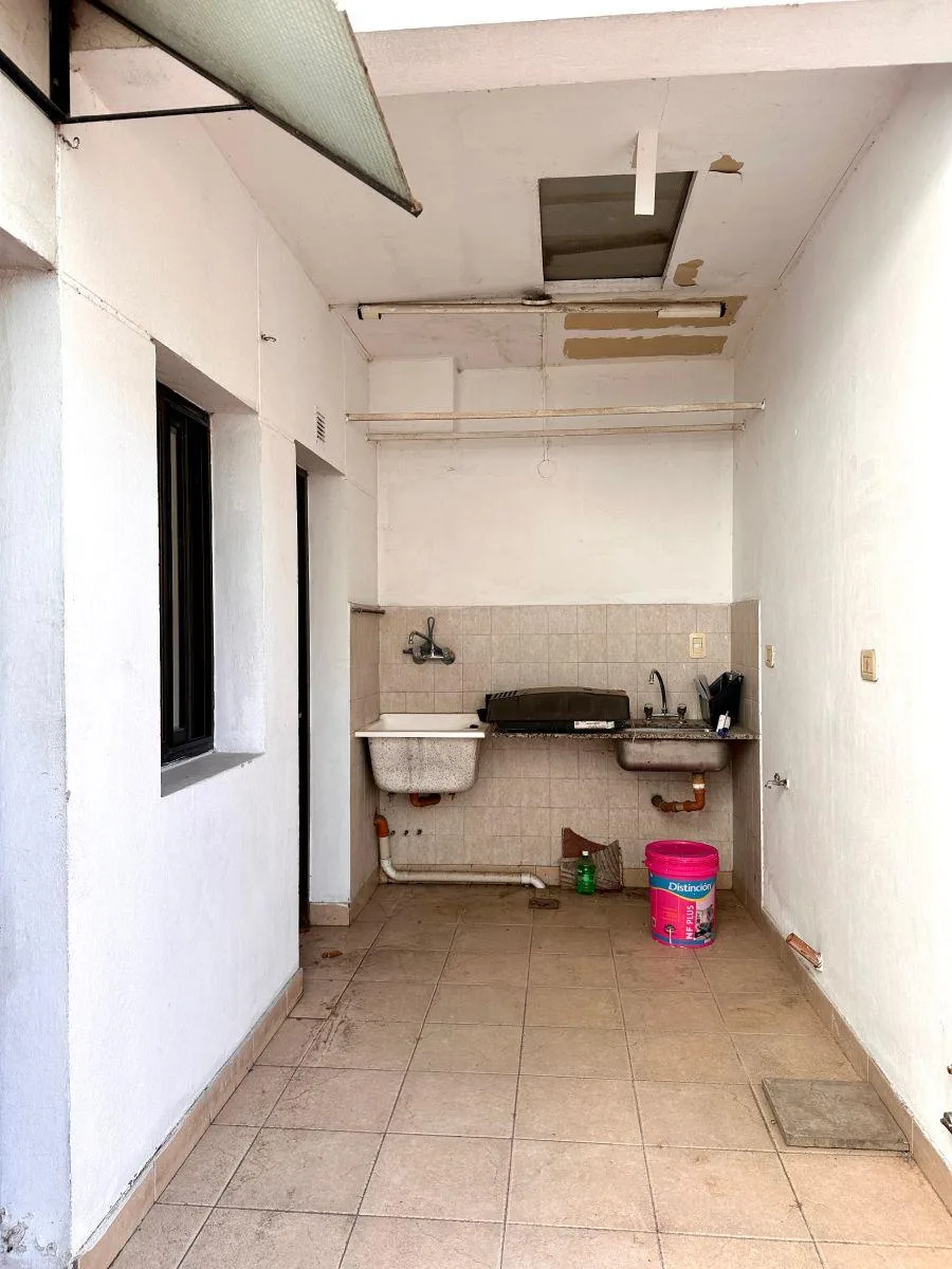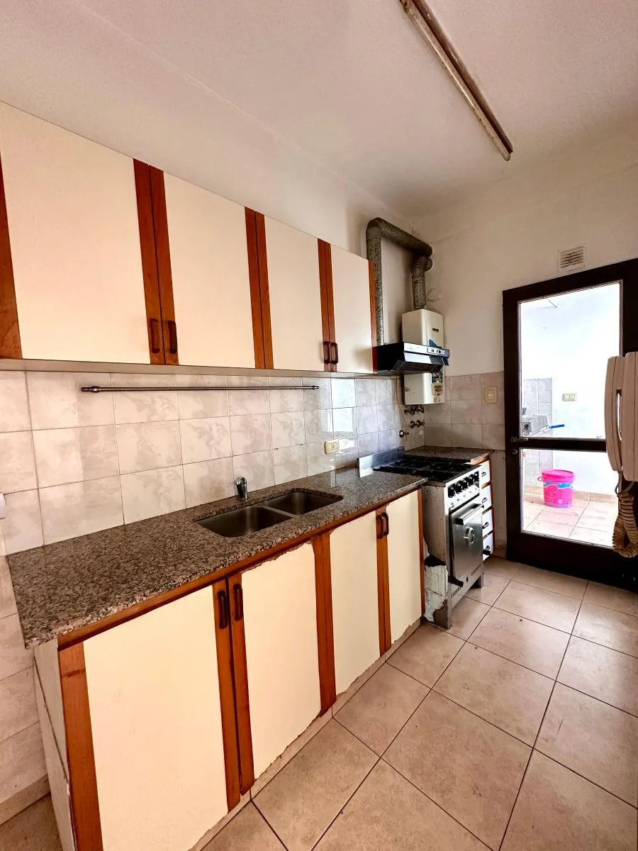 Apartamento de 4 ambientes em andar térreo na Diagonal 80, entre 115 e 42, com pátio. São 4 quartos; três têm ventilação e luz natural. Há 2 banheiros completos e 1 lavabo, sala de estar e jantar com saída direta para o exterior, e cozinha equipada com espaço de armários e bancada, com acesso independente ao lavadero. O condomínio custa ARS 65.000 e o ABSA é ARS 12.000; contrato de 24 meses com reajuste trimestral pelo ICL.