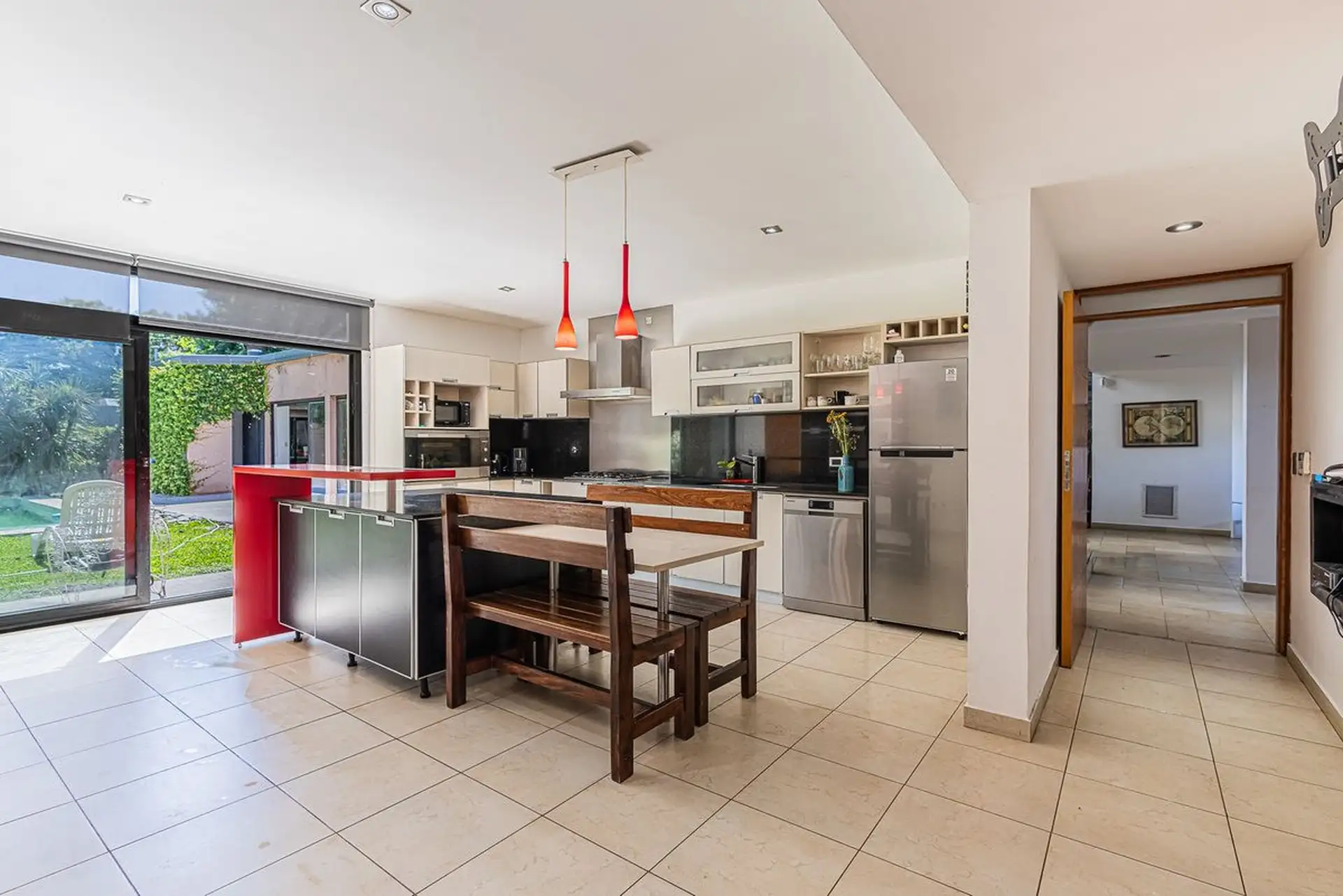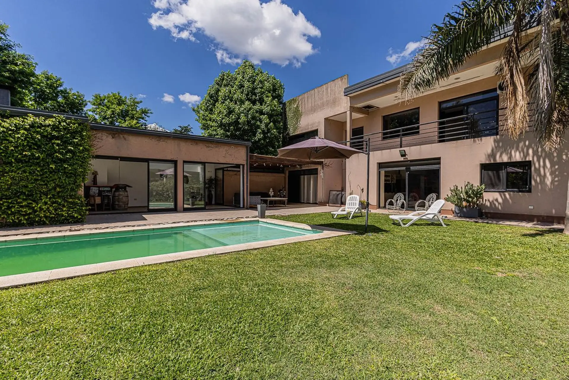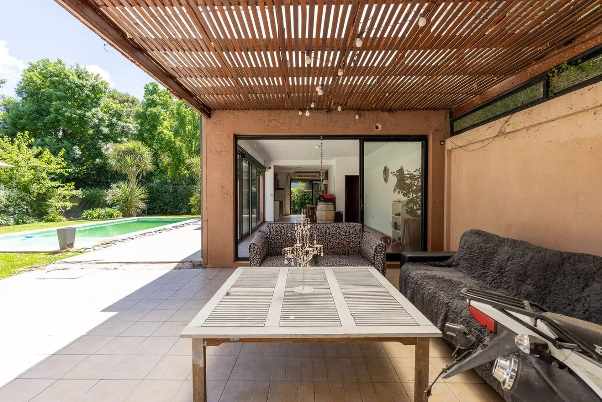Casa em aluguel em Villa Elisa, no Partido de La Plata, situada em lote com 19 m de frente por 42 m de fundos. Possui aproximadamente 900 m² cobertos, mais 60 m² semi-cobertos, e duas pérgolas: uma entre a casa e o quincho e outra atrás do quincho, com área de churrasco e forno a lenha. A casa tem 2 andares, com living e sala de jantar de pé-direito duplo, cozinha de 6 x 5 m, lavandaria independente de 5 x 5 m e lavabo completo; no térreo há também um estúdio de 4 x 5 m pensado para funcionar co