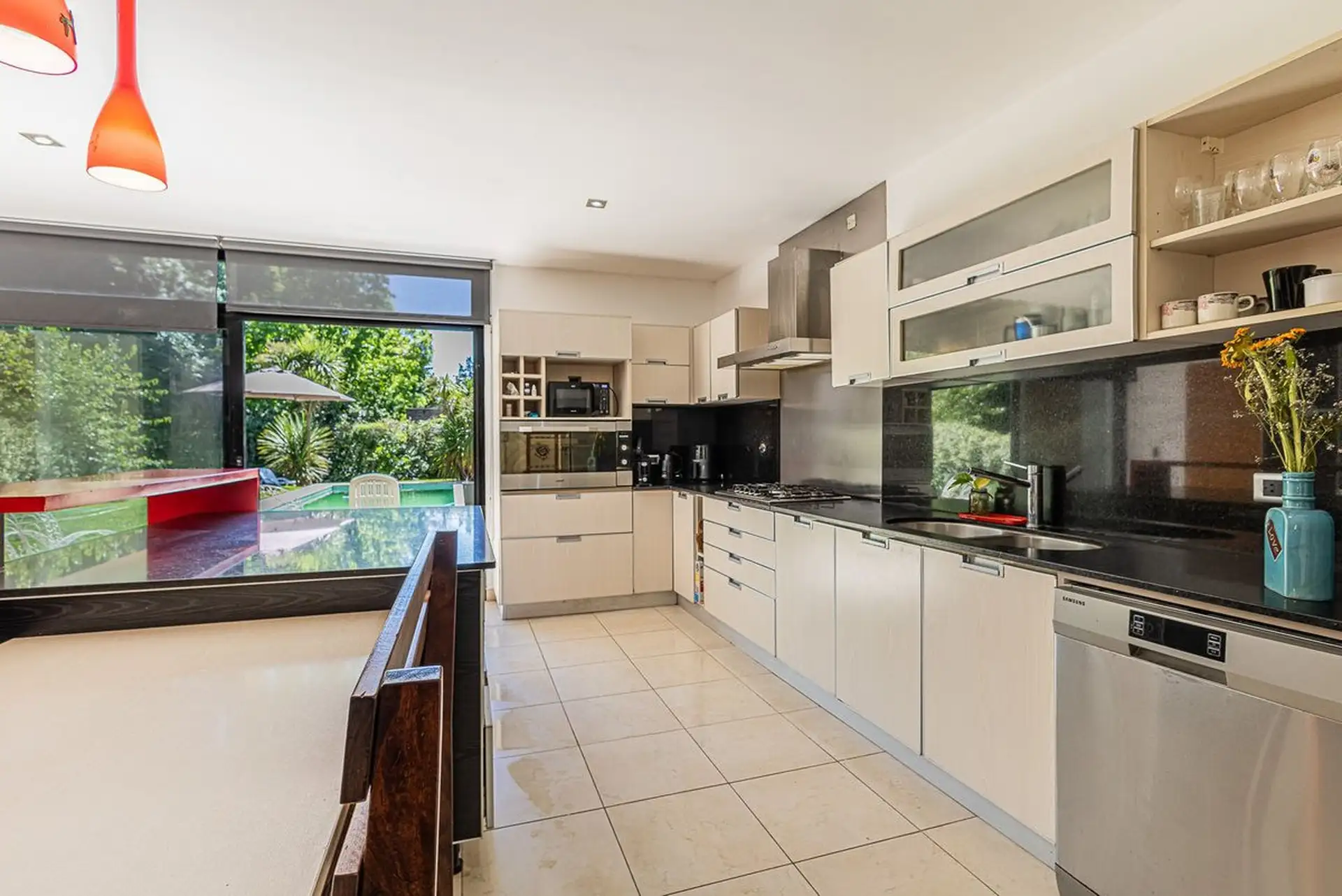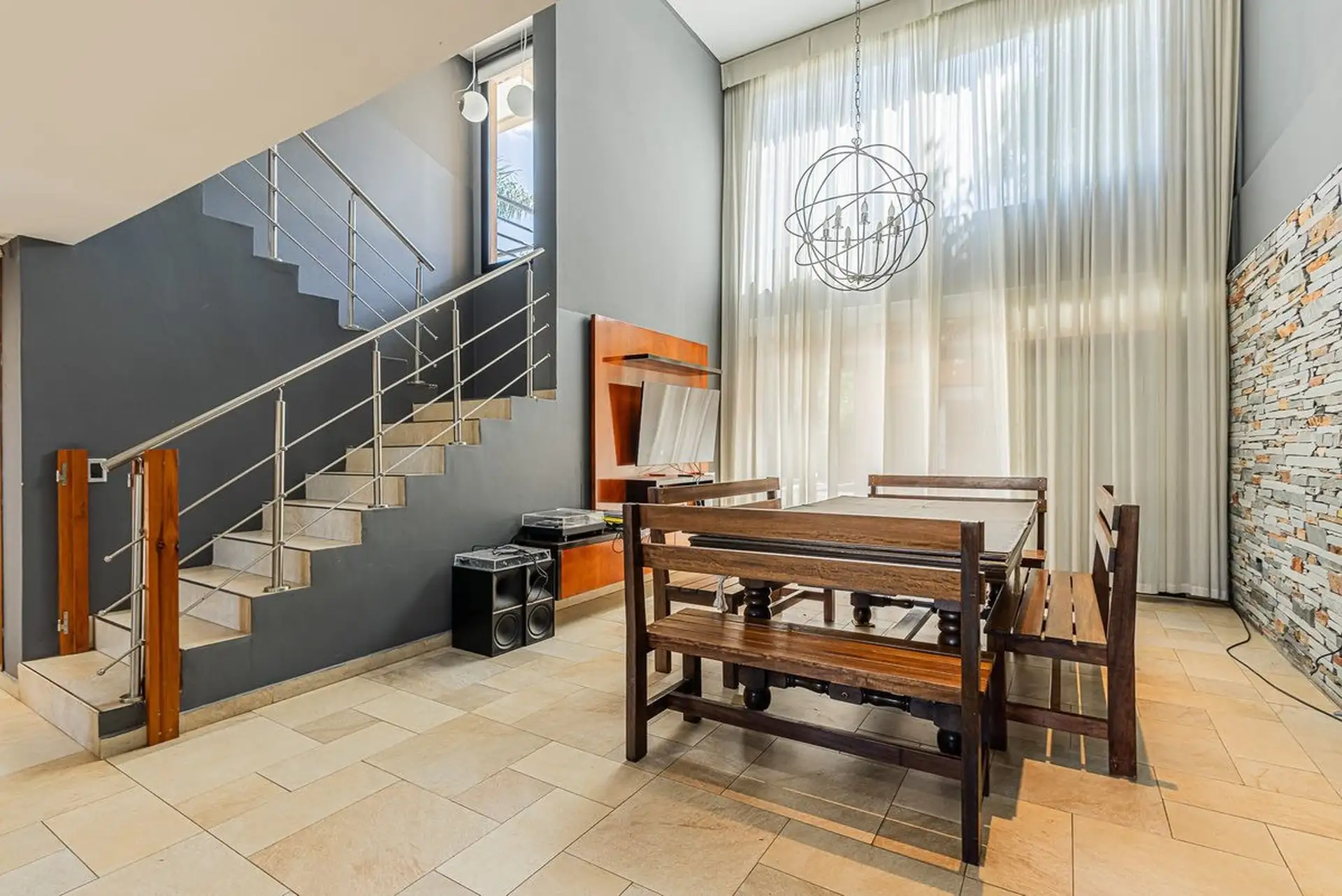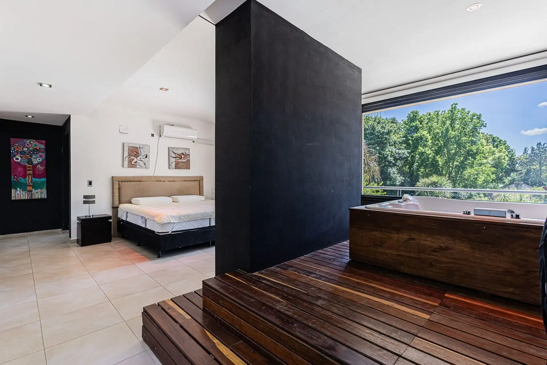Casa em aluguel em Villa Elisa, no Partido de La Plata, situada em lote com 19 m de frente por 42 m de fundos. Possui aproximadamente 900 m² cobertos, mais 60 m² semi-cobertos, e duas pérgolas: uma entre a casa e o quincho e outra atrás do quincho, com área de churrasco e forno a lenha. A casa tem 2 andares, com living e sala de jantar de pé-direito duplo, cozinha de 6 x 5 m, lavandaria independente de 5 x 5 m e lavabo completo; no térreo há também um estúdio de 4 x 5 m pensado para funcionar co