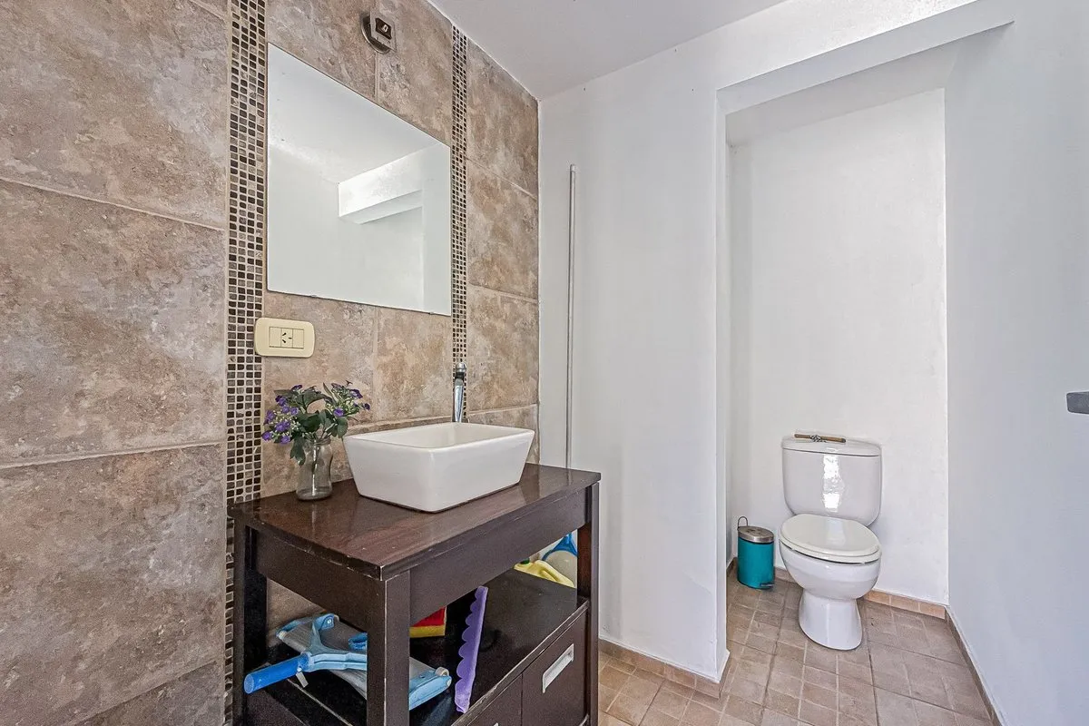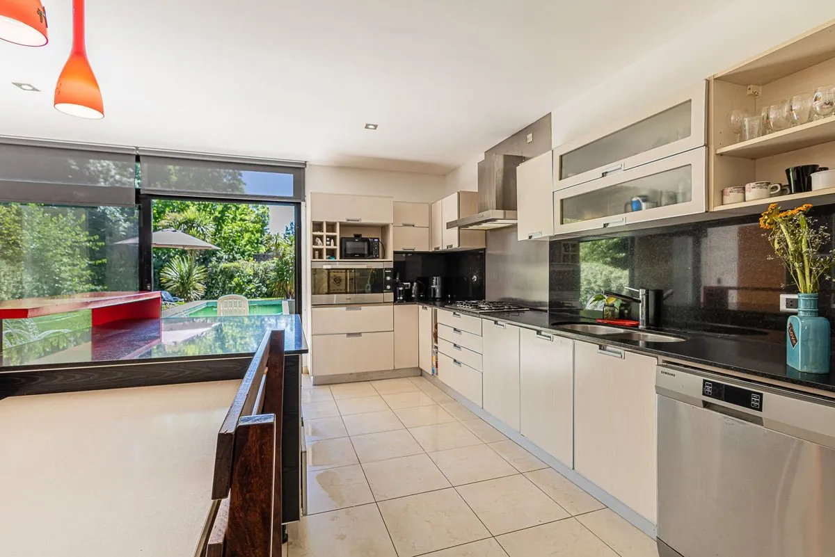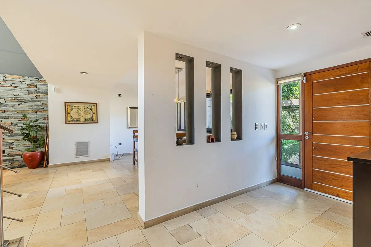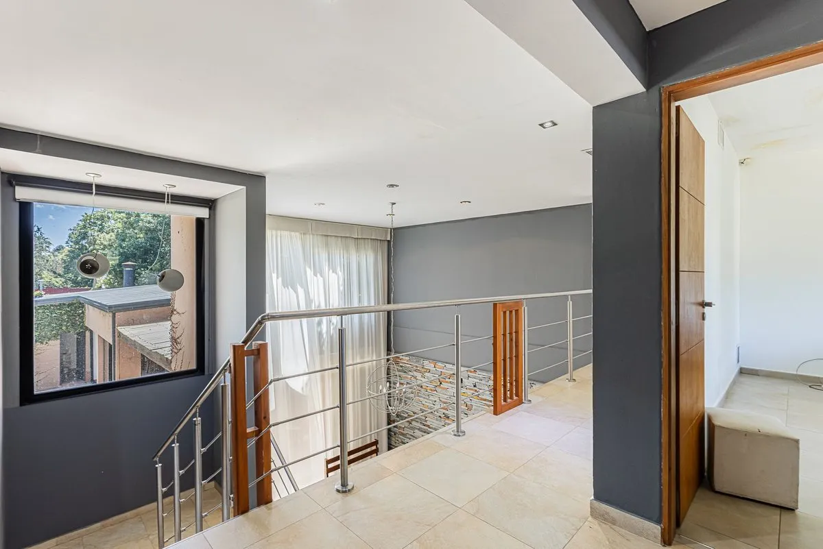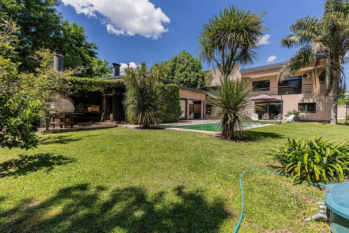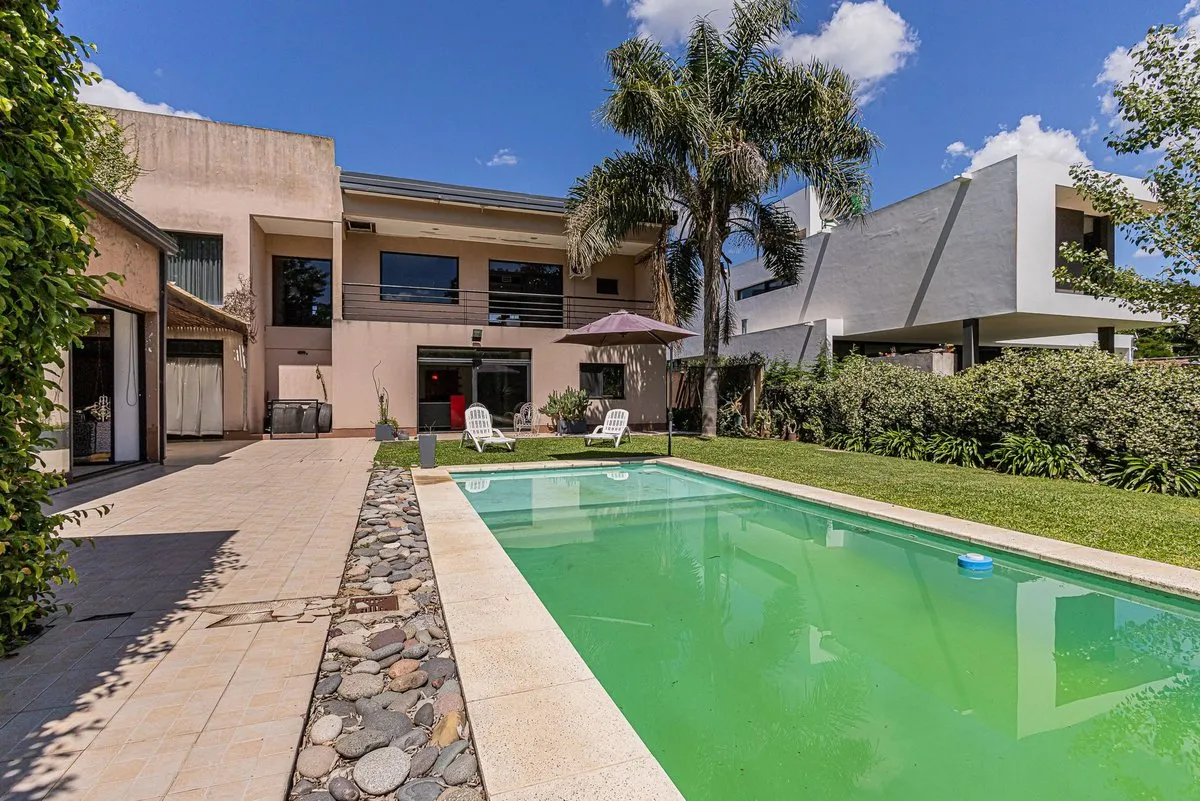 Casa em dois andares em Villa Elisa, construída sobre lote de 19 m de frente por 42 m de fundo. São aproximadamente 900 m² cobertos, mais 60 m² semicobertos, com duas pérgolas: uma entre a casa e o quincho e outra atrás do quincho, com área de churrasco e forno a lenha. Na área externa há piscina em formato “olho d’água” de 3,5 x 9 m, quincho com banheiro externo, ducha externa e adega subterrânea de 4 x 4 m, além de garagem coberta para 2 carros, com possibilidade de entrada de uma caminhonete