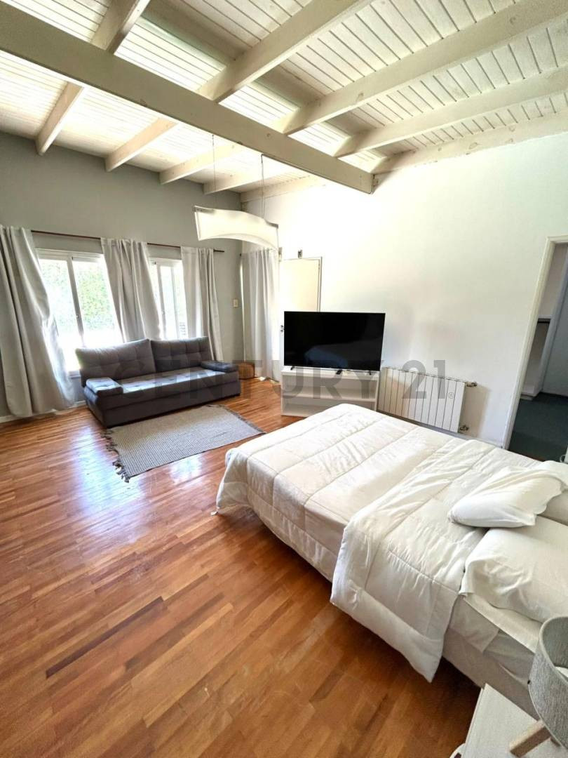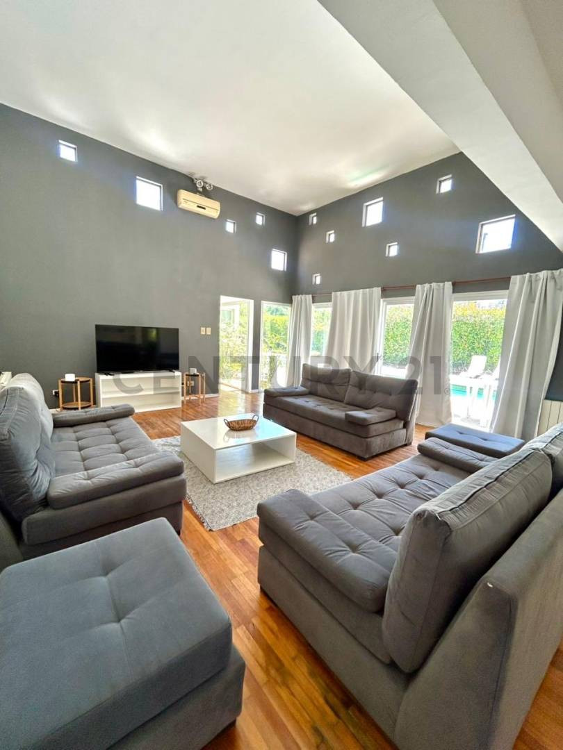 Casa para alugar em José Hernández, em terreno situado na rua 505 entre 133 e 135, a poucos metros de La Cantera. Possui 4 dormitórios, sendo 2 suítes, 3 banheiros completos e 1 lavabo. No exterior há parque com piscina, área de churrasco e 1 banheiro com vestiário. A região tem segurança com vigilância 24 horas.