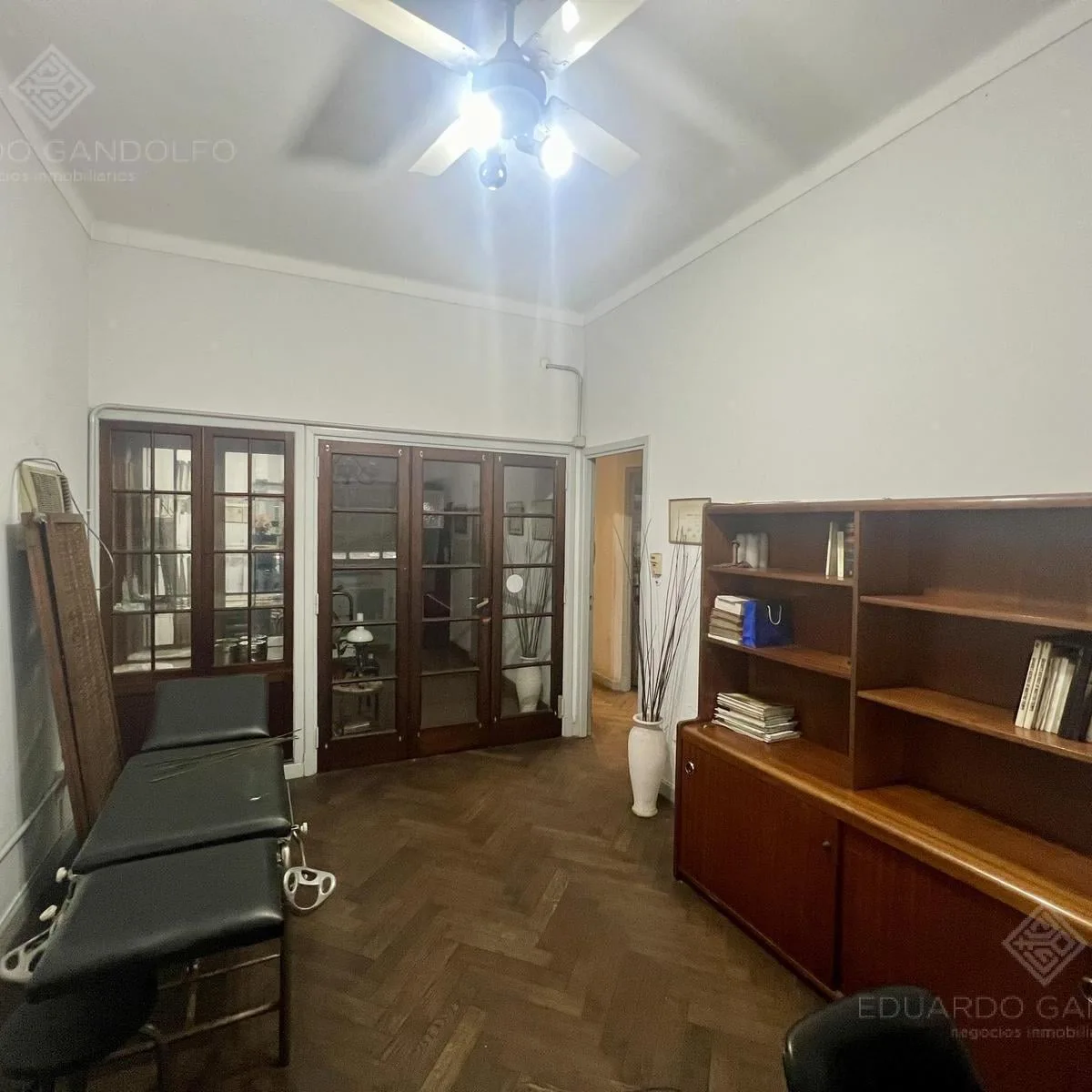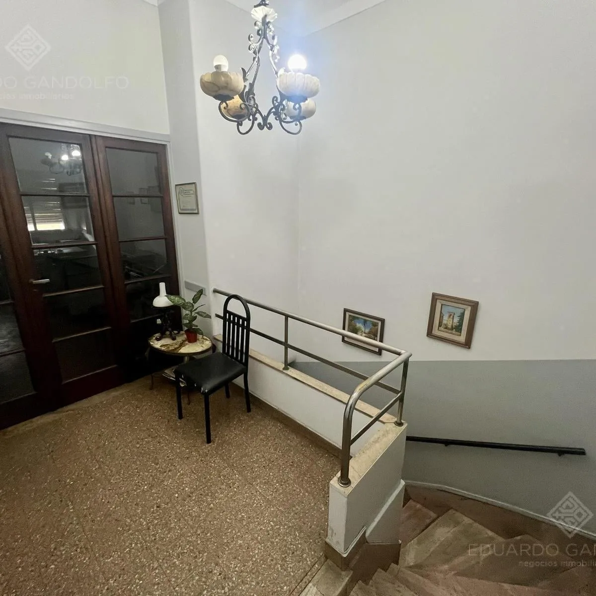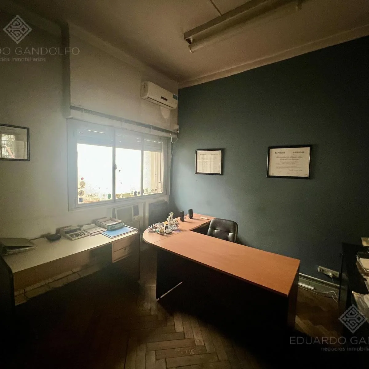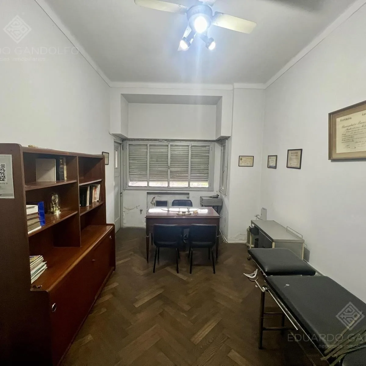 PH com entrada independente por escada, no primeiro piso, de frente para a estação do FCGR e para o Supermercado COTO, em área central comercial. Possui hall de recepção, duas escritórios de frente, uma terceira sala voltada para um pátio de ar e luz, cozinha com sala de jantar e halls de circulação para um banheiro completo. Há um grande espaço de trabalho com janela para o pátio interno, segundo banheiro e pátio nos fundos, além de varanda na frente.