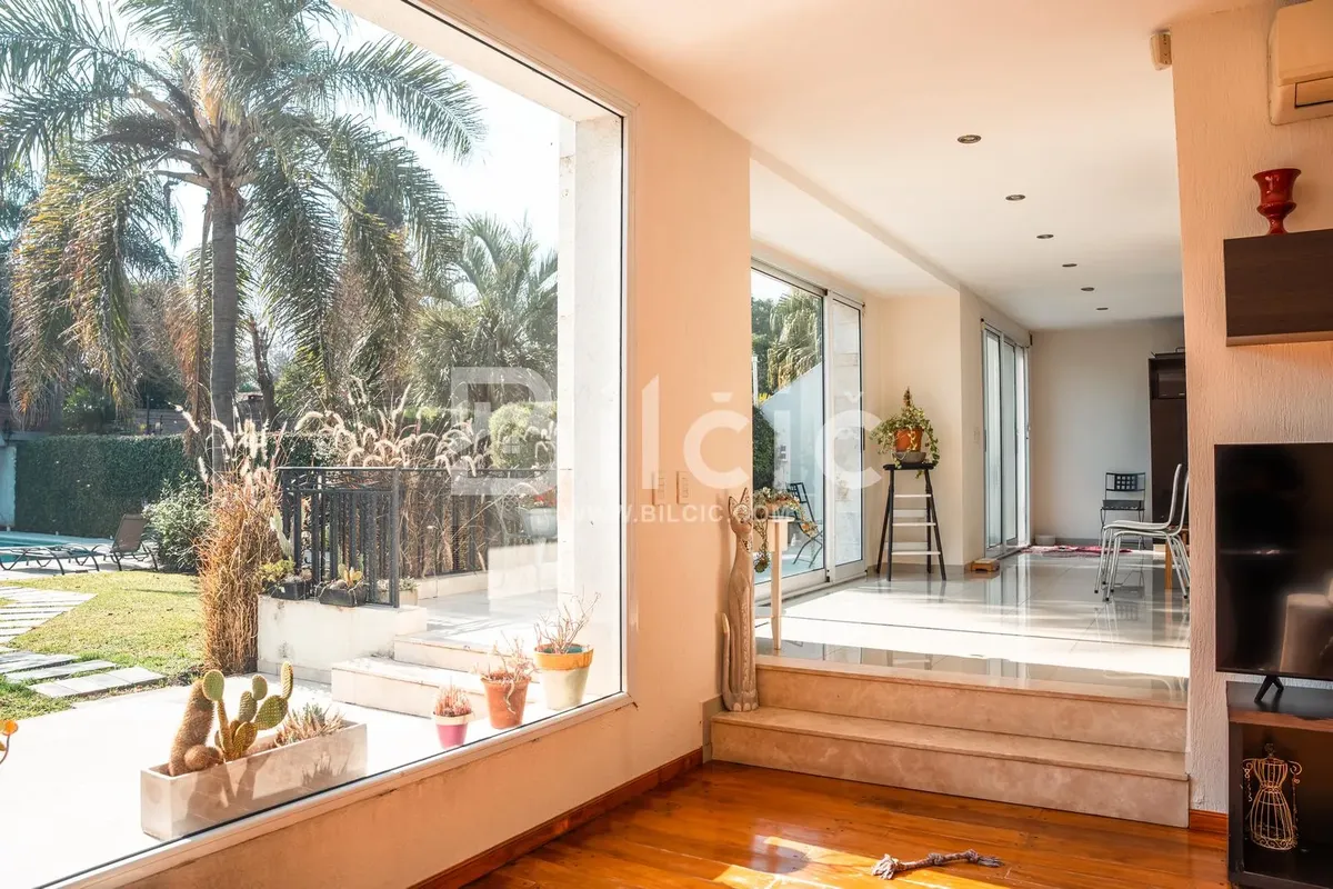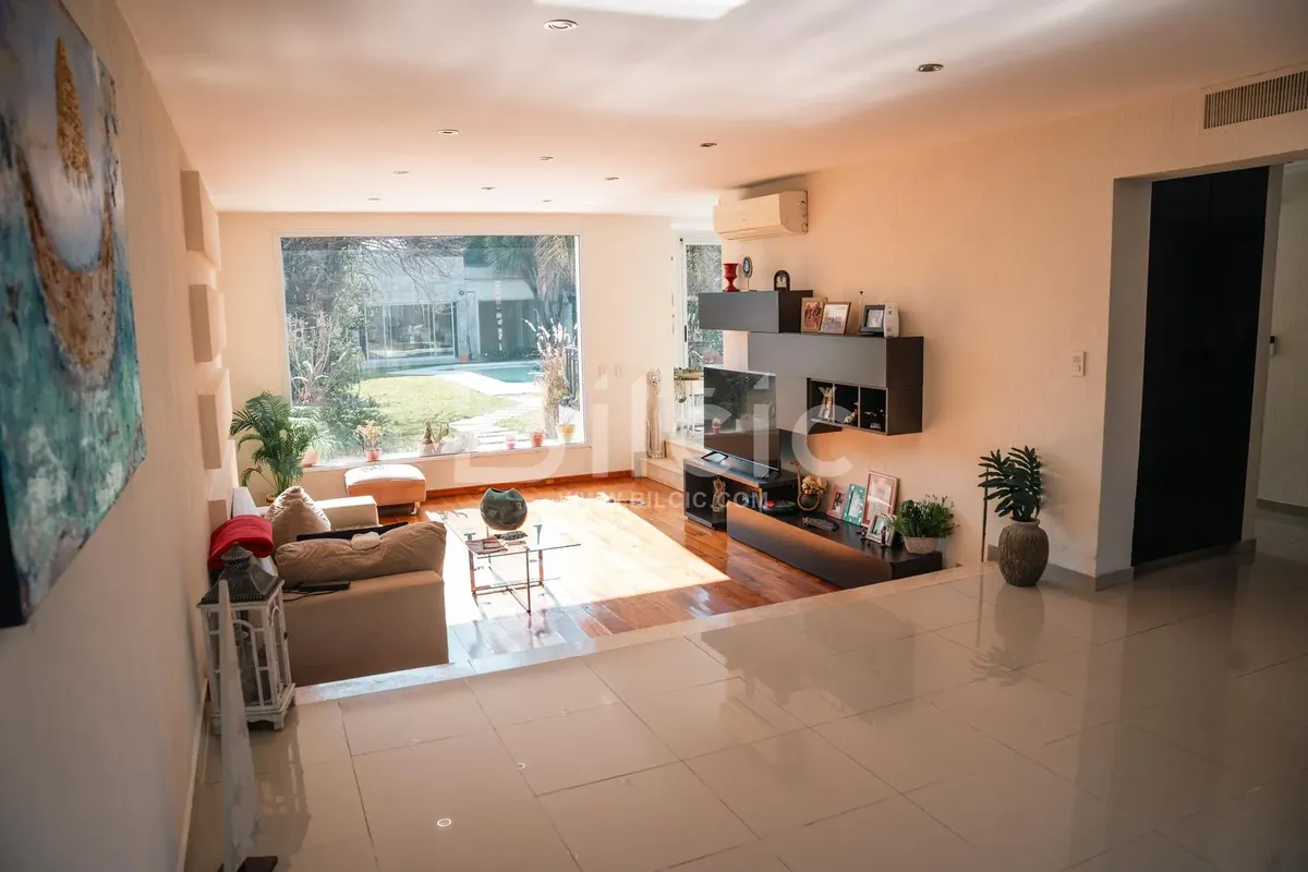 Apartamento em Lomas de Zamora com 4 dormitórios e mais de 470 m² cobertos, distribuídos em 4 plantas. Há jardim na frente com entrada veicular para vagas em subsolo e hall de entrada com armário. Na área externa, fundo livre ajardinado com piscina de 8,50 x 4,50 m e quiosque de 70 m² com churrasqueira, bancada, armário inferior, banheiro completo e dormitório de 3,90 x 4,10 m com armário. No subsolo, sala de máquinas (6,15 x 2,25 m), área de serviço com banheiro e quarto de serviço de 1,80 x 3,