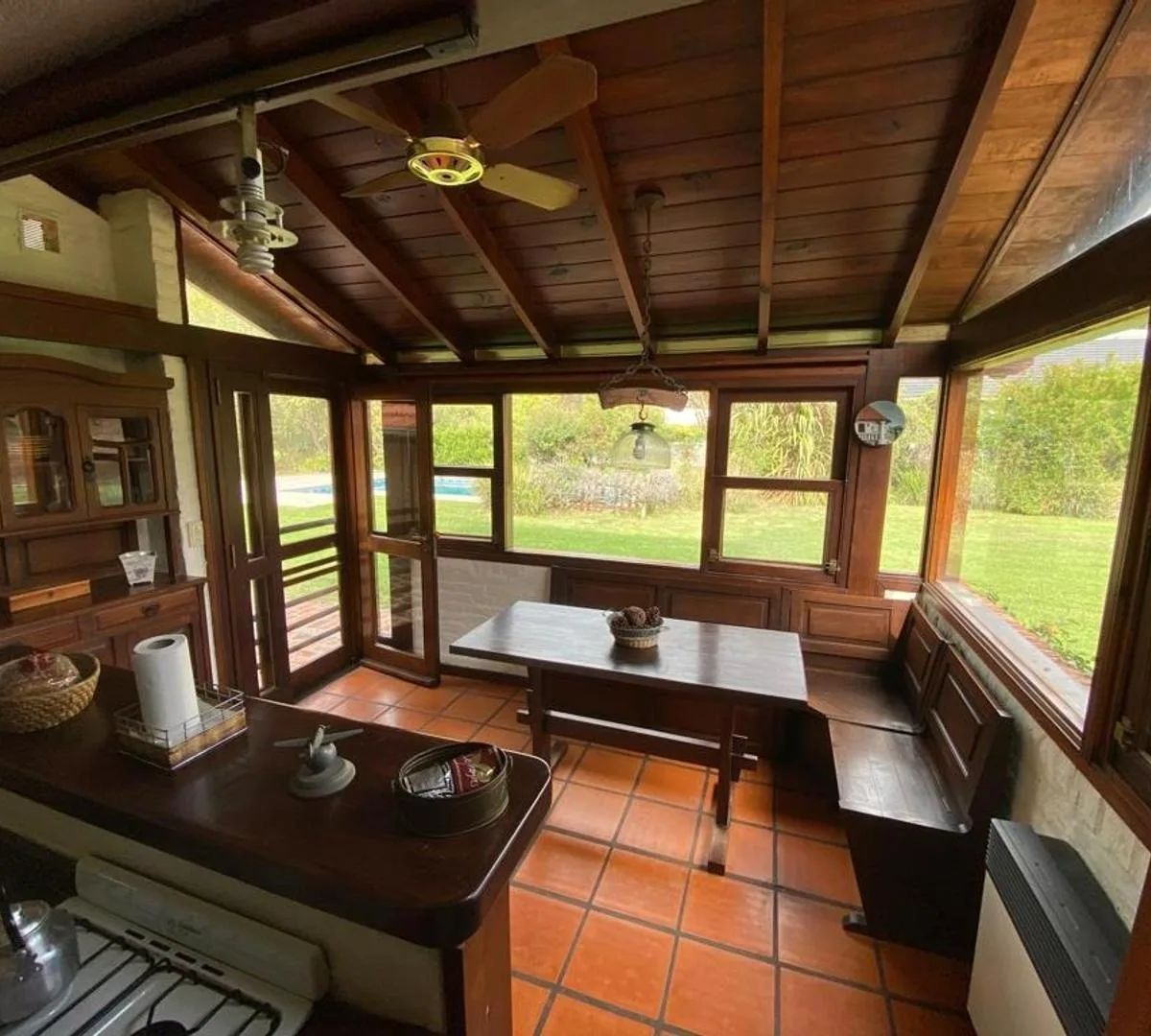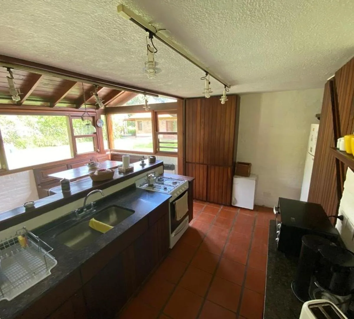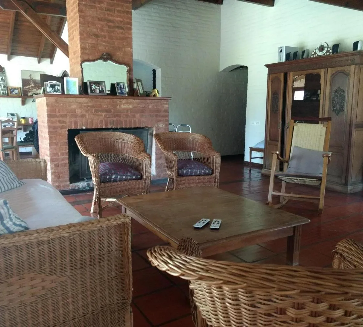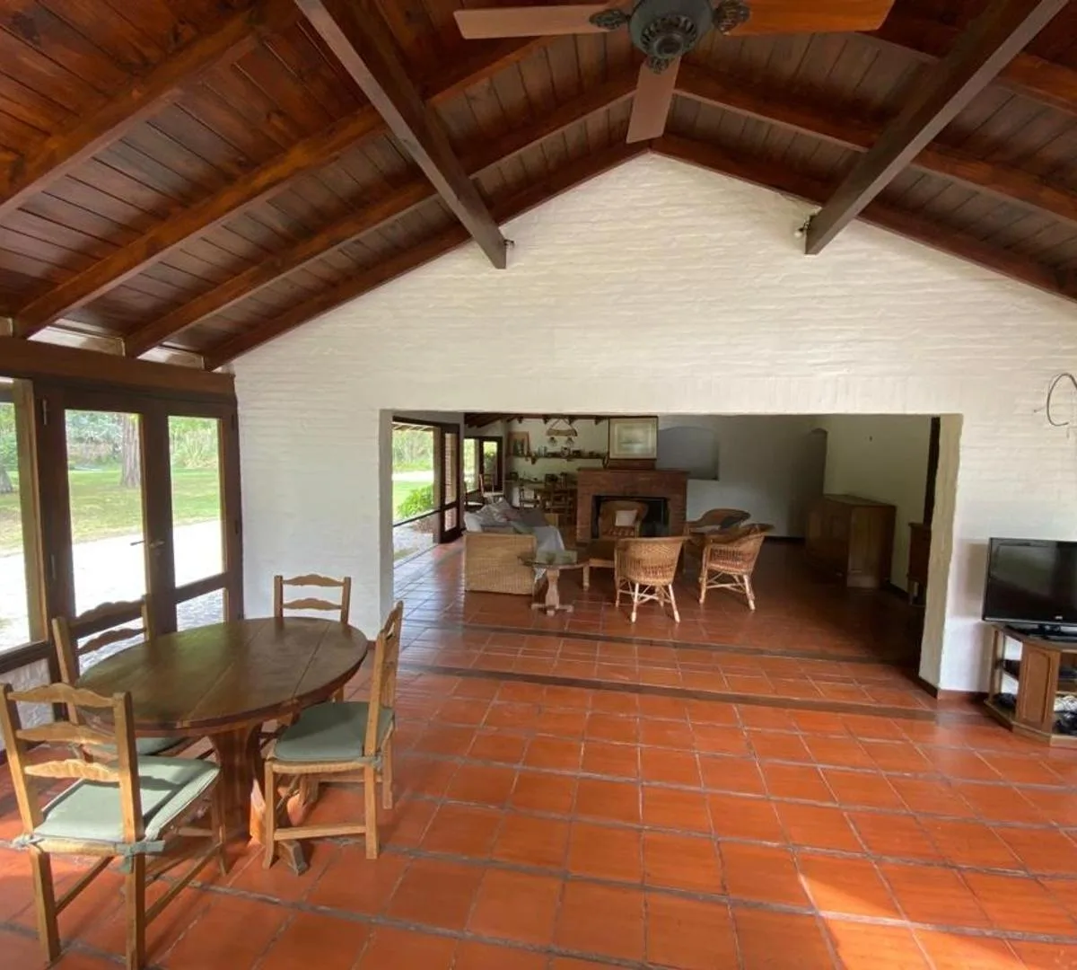 Casa em Praderas de Luján, em uma planta, com 4 dormitórios. A unidade fica na frente do campo de golfe do clube e dispõe de janelas amplas voltadas ao jardim. Há 3 dormitórios com armários, sendo 1 suíte; os outros 2 compartilham um banheiro completo. A área social inclui living com lareira e sala de jantar, comedor diário e cozinha com office integrado; por escada, acesso a um escritório com banheiro completo (possível dependência ou 4º dormitório) e mezanino para armazenamento. O imóvel tem u