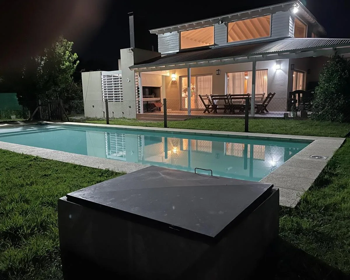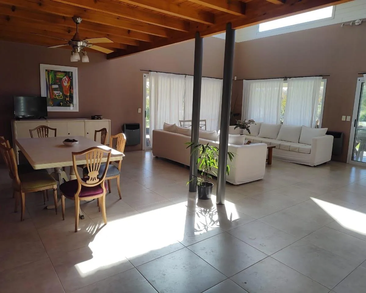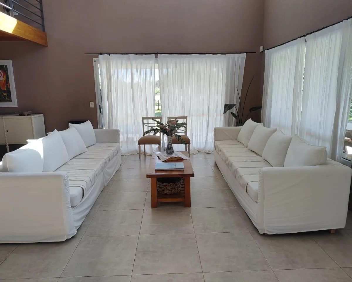 Casa em Club de Campo La Elina com 6 ambientes, 4 dormitórios, 2 banheiros e 1 lavabo. Lote de 2000 m², com jardim, terraço e varanda. Cozinha integrada à área de refeições e casa totalmente equipada, com área de churrasco, piscina cercada, parque infantil e área com jogos para crianças. Permite animais. Segurança 24 horas; acesso por asfalto, a poucos quarteirões do acesso oeste e a 5 minutos do centro de Luján.