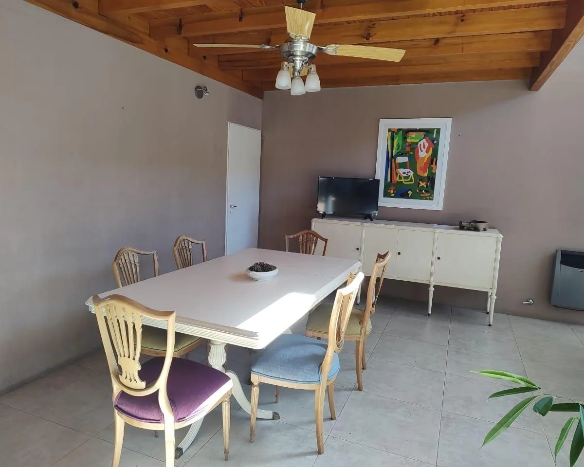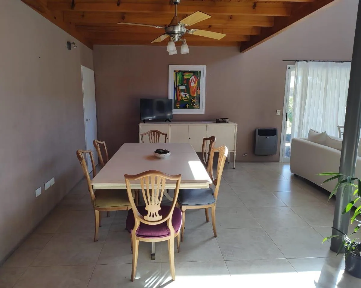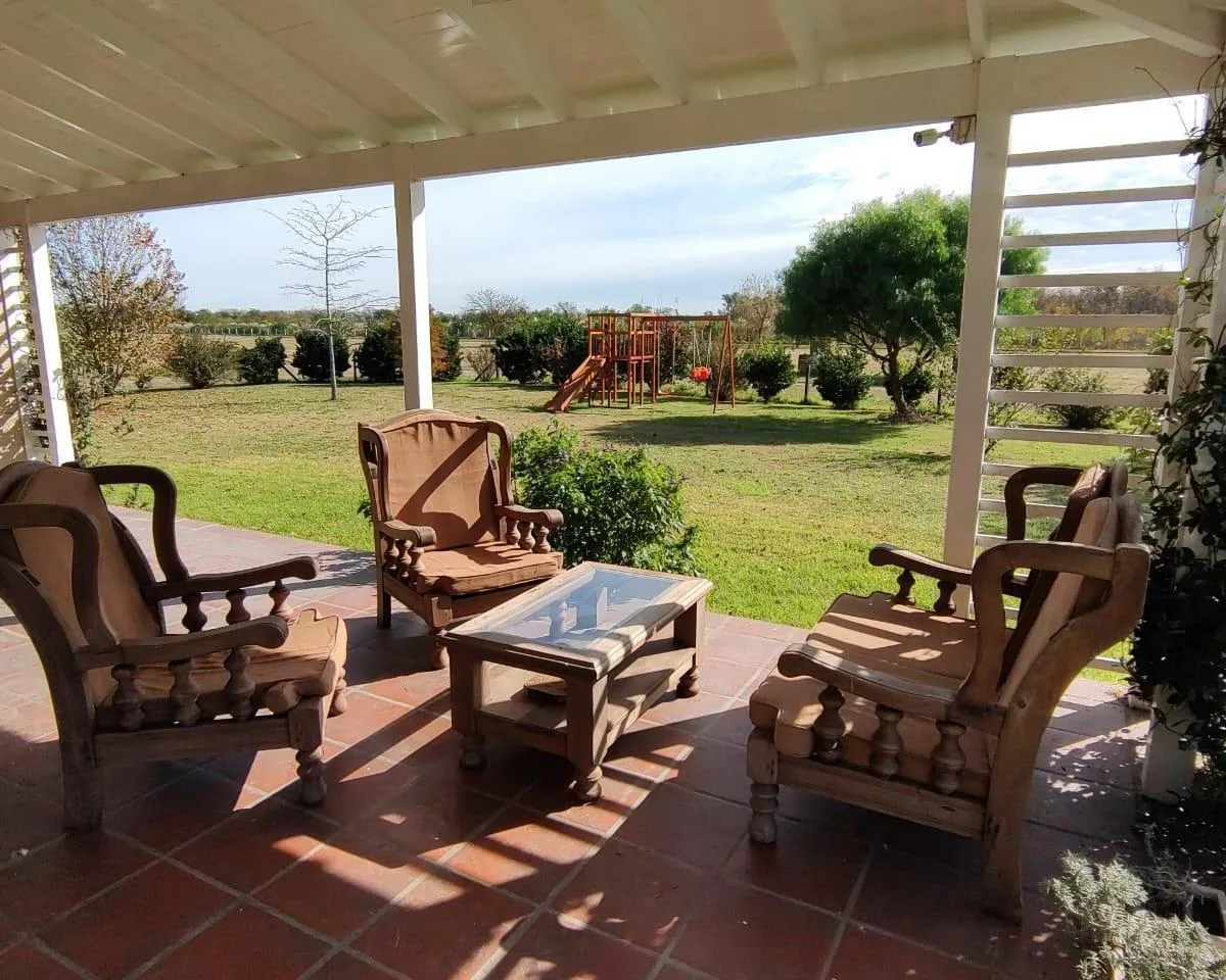 Casa em Club de Campo La Elina com 6 ambientes, 4 dormitórios, 2 banheiros e 1 lavabo. Lote de 2000 m², com jardim, terraço e varanda. Cozinha integrada à área de refeições e casa totalmente equipada, com área de churrasco, piscina cercada, parque infantil e área com jogos para crianças. Permite animais. Segurança 24 horas; acesso por asfalto, a poucos quarteirões do acesso oeste e a 5 minutos do centro de Luján.