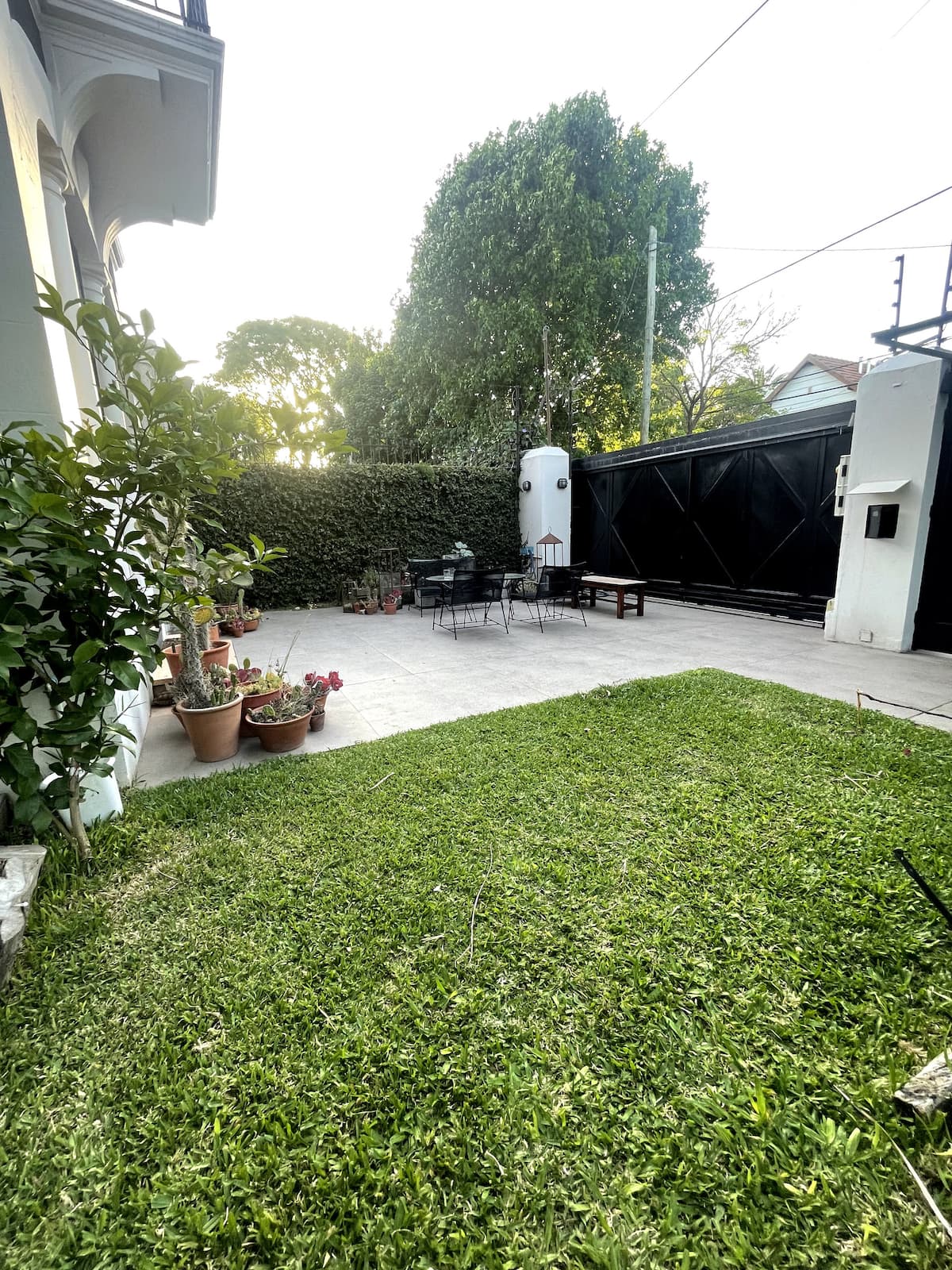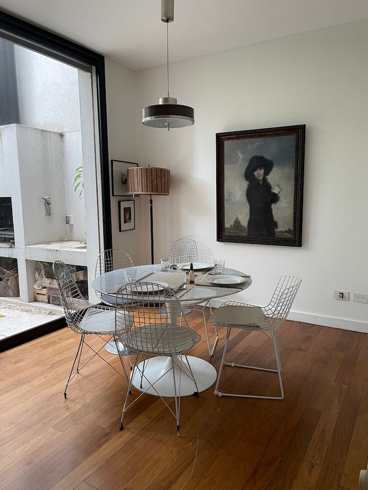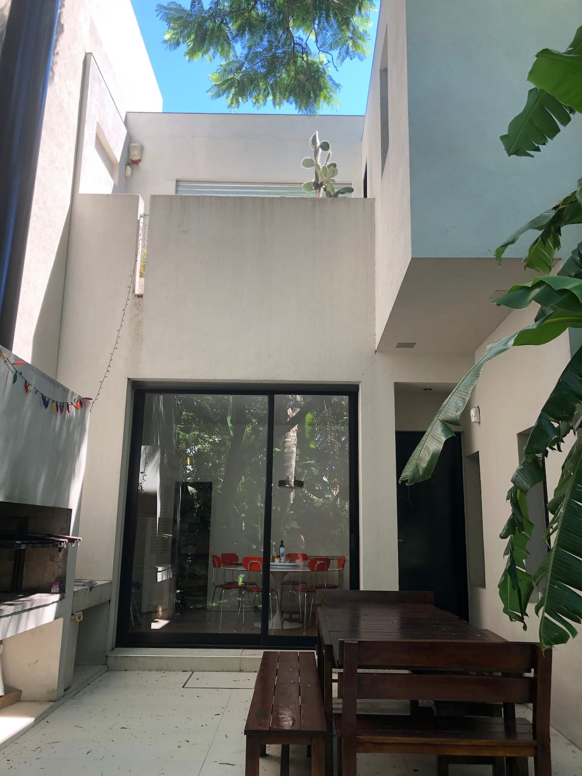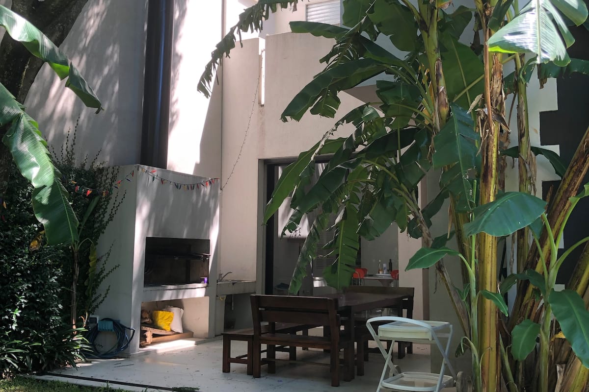 Casa com extensão moderna em Martínez, com piscina, jardim e área de churrasco. A casa tem 4 quartos no total, com 2 suítes e 2 quartos que compartilham um banheiro completo. No térreo ficam a sala de estar, sala de jantar e uma mesa de recepção, além de área de lavanderia; todas as janelas têm proteção contra insetos e há aquecimento por radiadores ou ventiladores de teto.