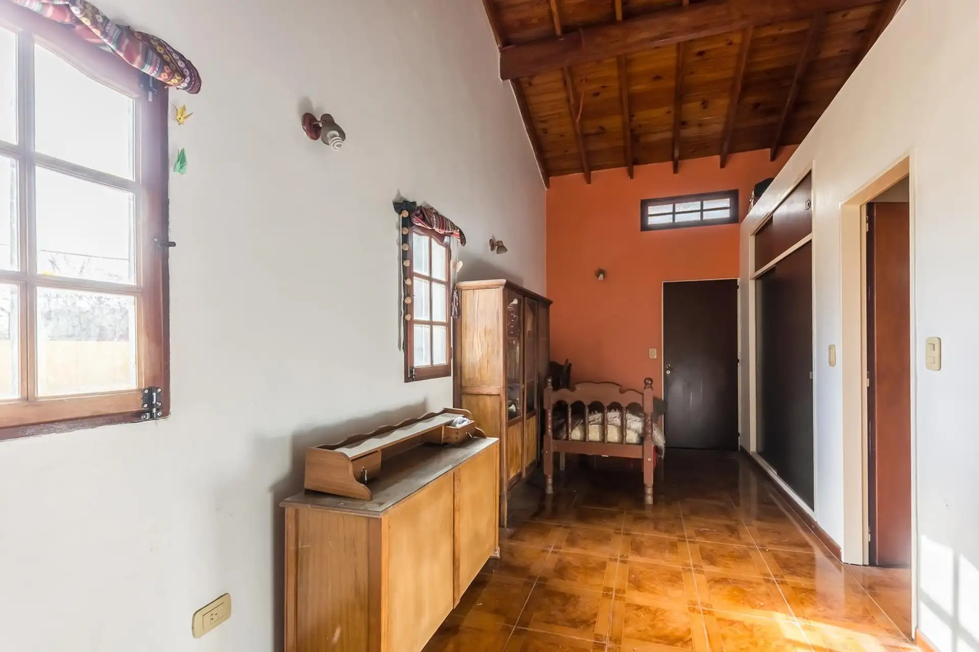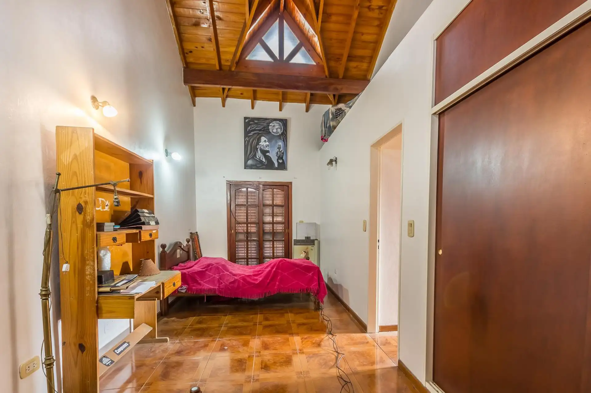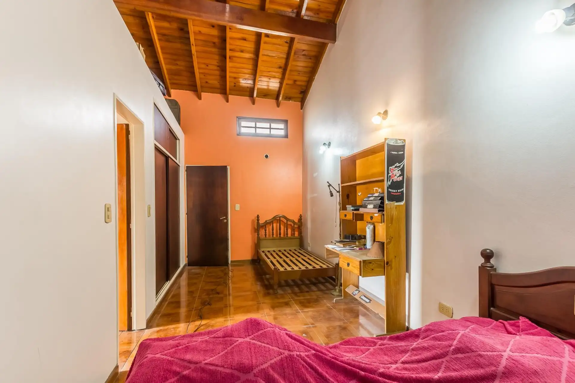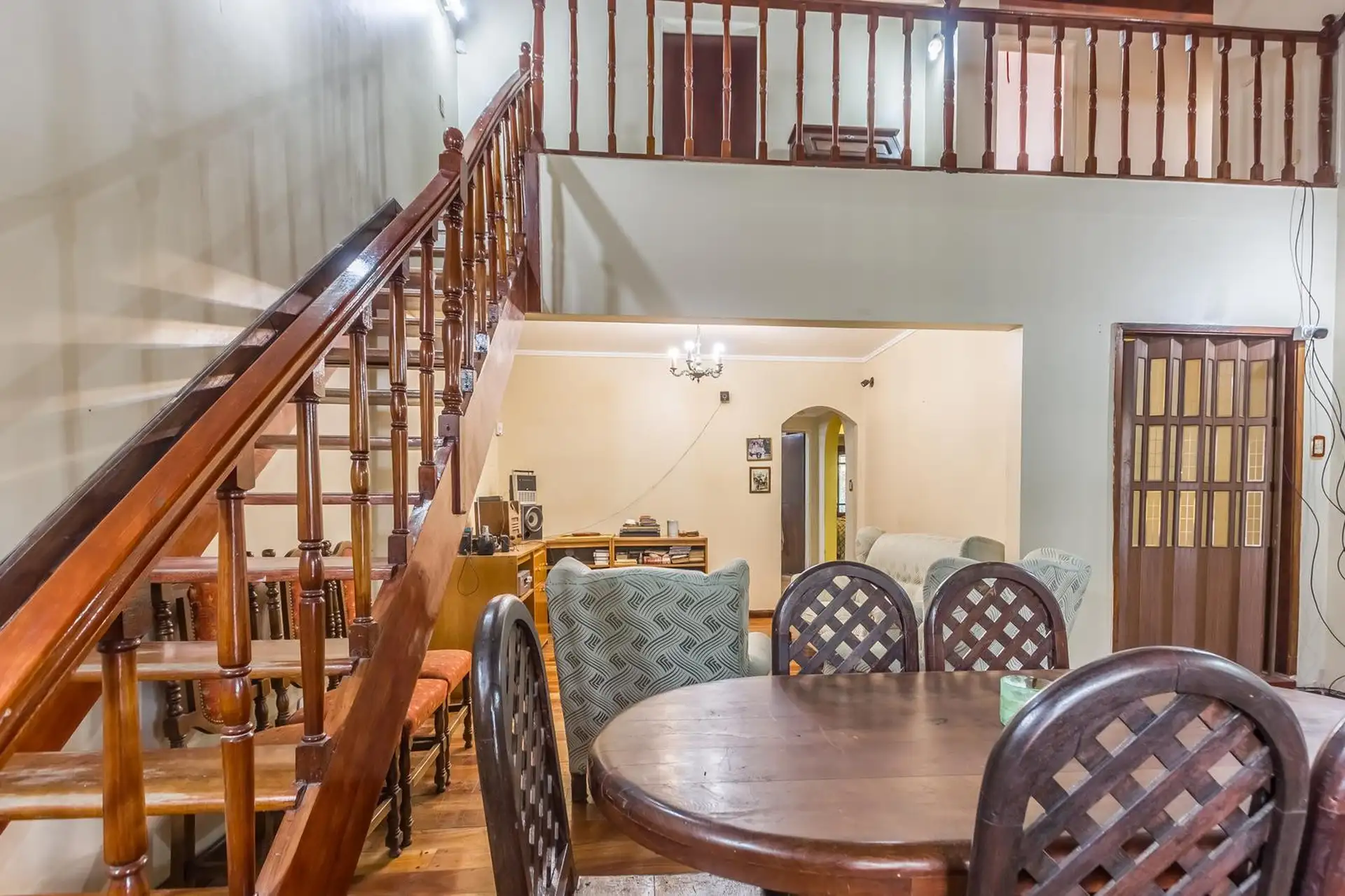 Casa para aluguel em Castelar Sur, Morón, com 5 ambientes e opção de uso profissional. A propriedade tem 2 plantas. Na planta baixa: living com sala de estar, cozinha totalmente equipada com refeitório diário, garagem coberta, 1 dormitório ou escritório e 1 banheiro completo. Na planta alta: 3 dormitórios, todos com banheiro em suíte, área de serviço coberta e varanda com escada até o jardim. O imóvel inclui jardim com área de churrasco coberta e churrasqueira, além de um galpão para armazenamen