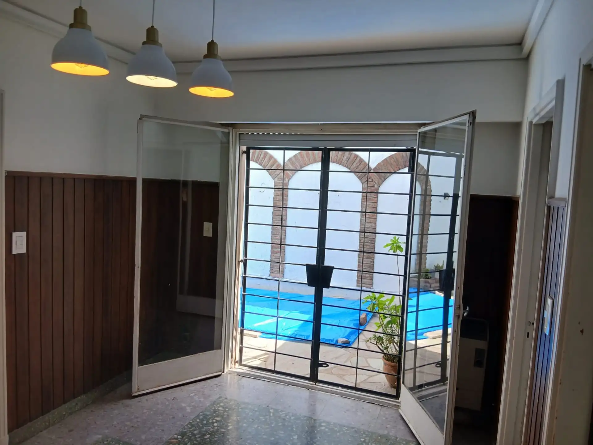 Casa para aluguel em Haedo, no Barrio Güemes, com 150 m² cobertos e 4 dormitórios com armários embutidos. Possui hall de entrada, sala de estar e jantar com lareira a lenha, cozinha com refeitório diário separado e 3 banheiros completos. Há pátio com piscina, área de churrasco com churrasqueira, dependência de serviço ou sala de hóspedes independente, 2 vagas de garagem cobertas e ampla cobertura/terraço acessível. O contrato é de 24 meses com opção de compra; ajuste a cada 4 meses pelo IPC.