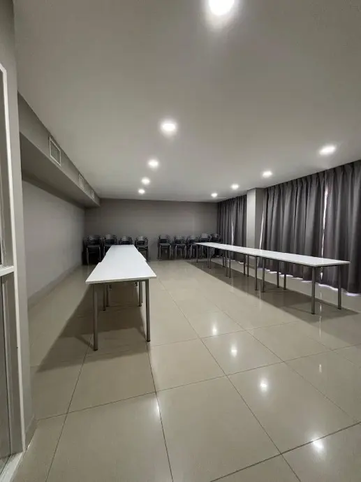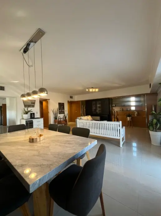 Apartamento para aluguel em Morón, unidade de 7 ambientes em edifício com SUM, área de churrasco com churrasqueiras cobertas, academia, lavanderia, piscina e segurança 24 horas. Fica de fundos, com 4 dormitórios (1 em suíte com closet), sala de estar e jantar, escritório/oficina independente e cozinha totalmente equipada com refeitório diário e área de serviço com saída para a varanda. Possui pátio/terraço, aquecimento e resfriamento central em todos os ambientes, além de depósito (baulera) e va