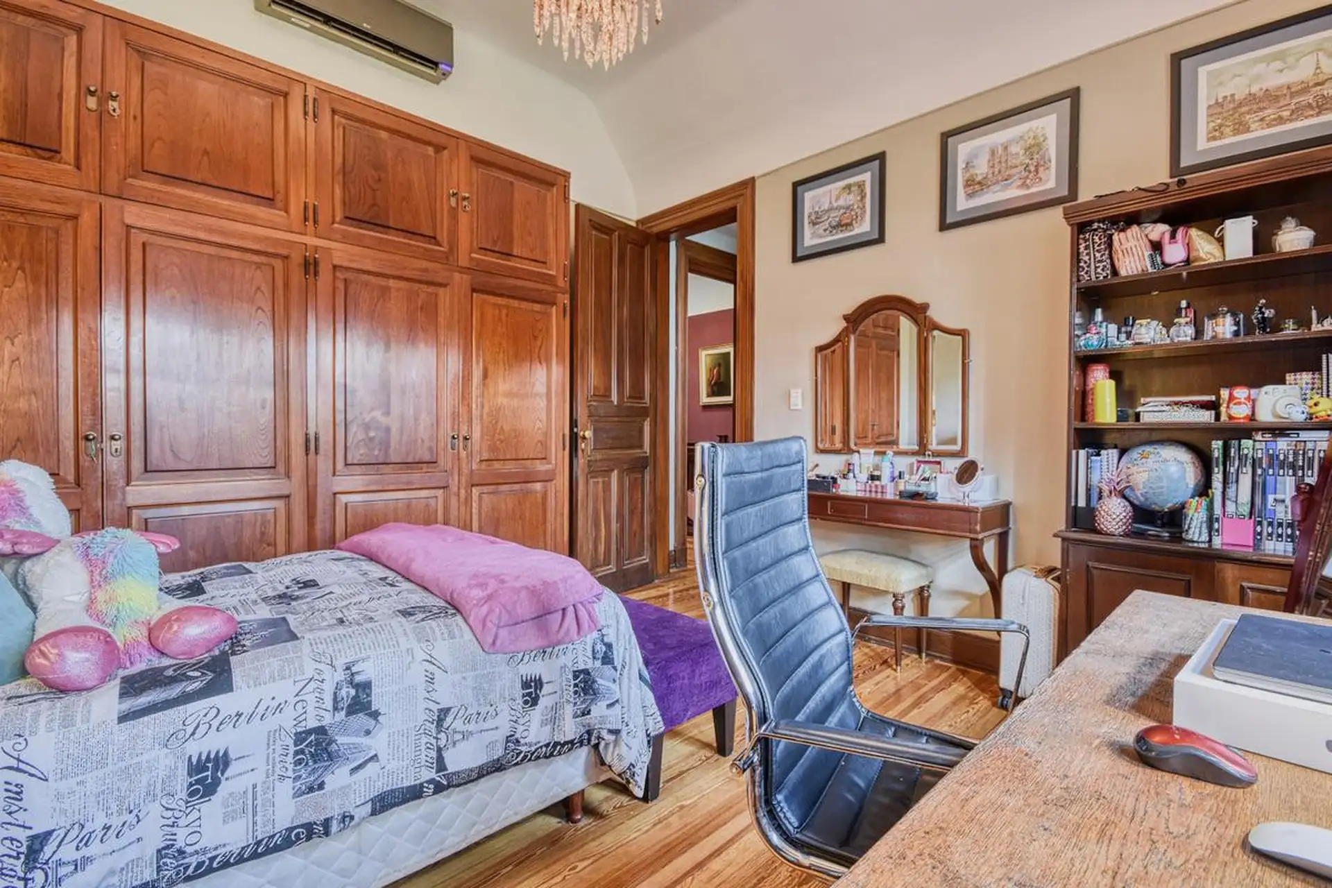 Casa em Olivos, com 4 quartos, em dois níveis, em bom estado de conservação. A área social conta com recepção ampla, living e sala de jantar, além de escritório/biblioteca, área de estudo e playroom. A cozinha tem copa diária e ilha central, e há galeria integrada ao exterior. No andar superior, há uma suíte master com closet e banheiro com banheira e ducha, além de três dormitórios que compartilham um banheiro. O imóvel tem parque com piscina aquecida a gás, banheiro de piscina e instalações qu