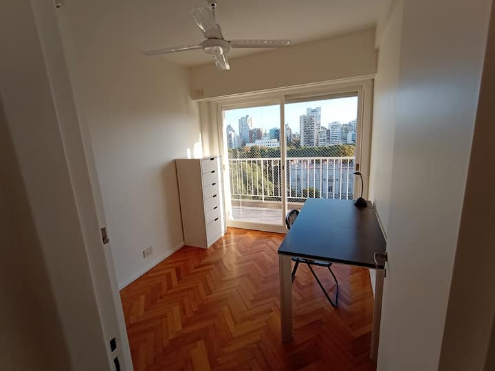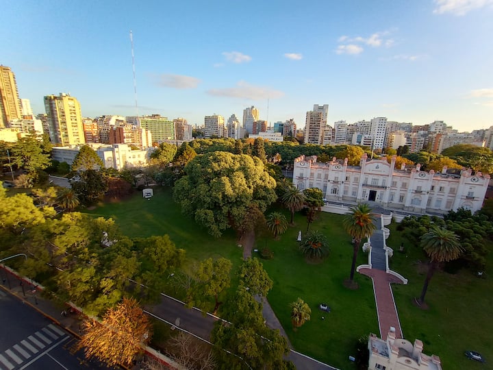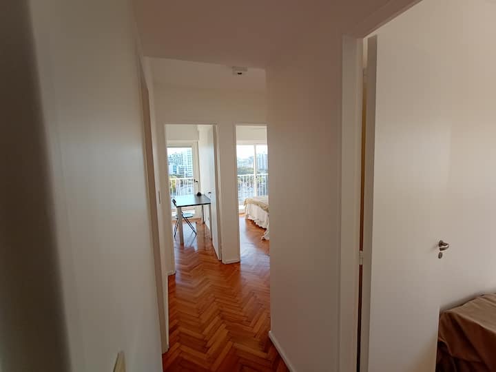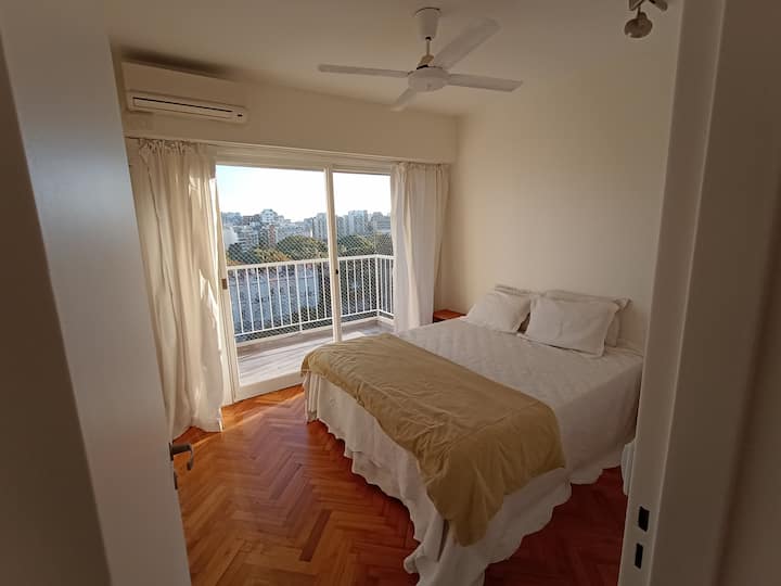 Apartamento em Palermo, no bairro Las Cañitas, com 4 dormitórios e 3 banheiros. Cozinha totalmente equipada, sala de estar e sala de jantar e varanda ampla. Vista aberta para áreas verdes e incidência de luz durante o dia. Acesso a ônibus, trem e metrô na região.