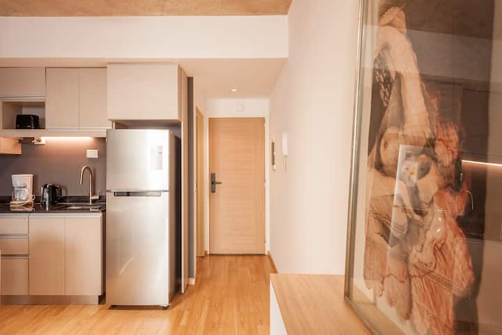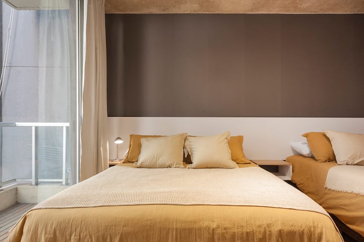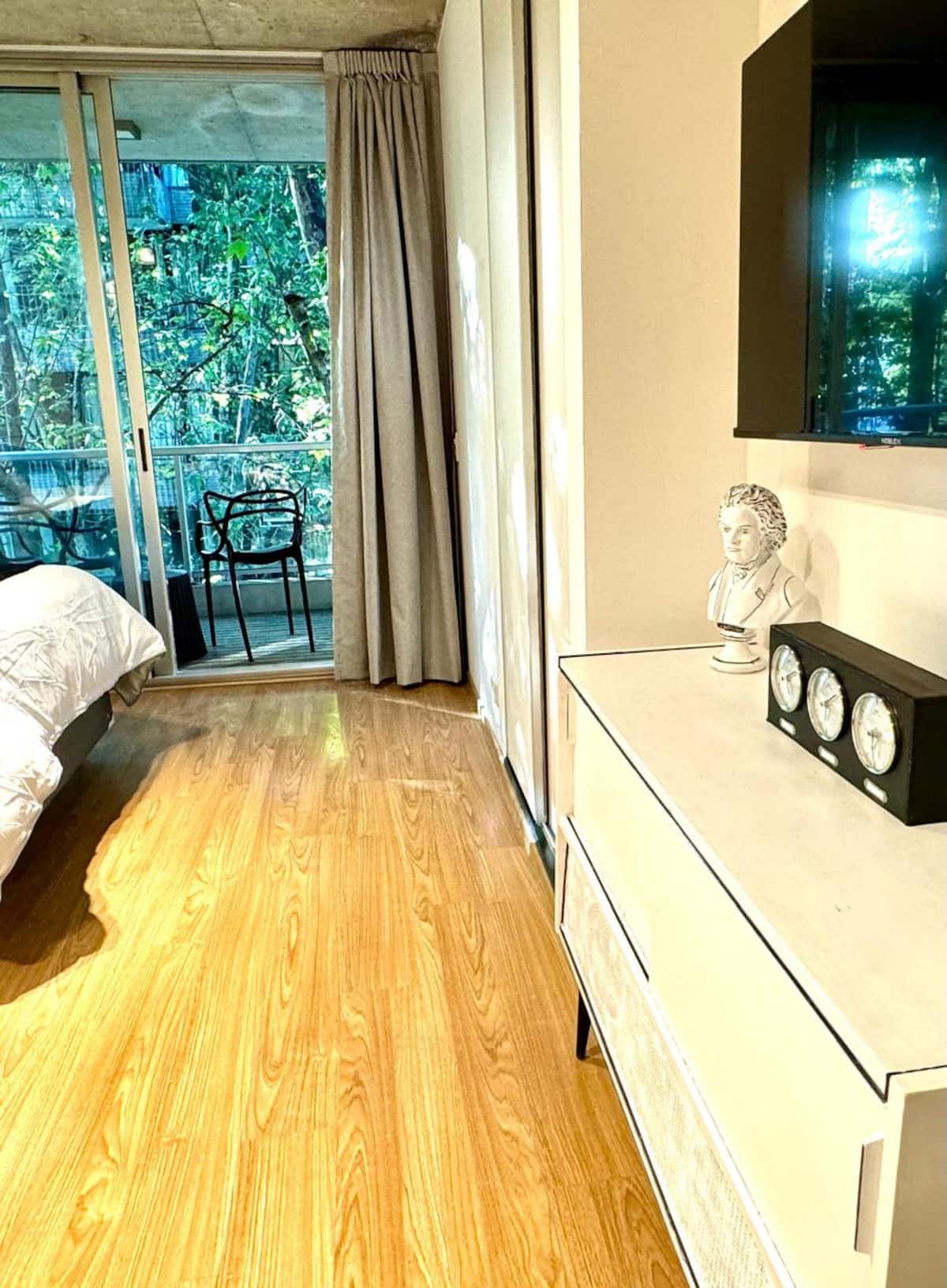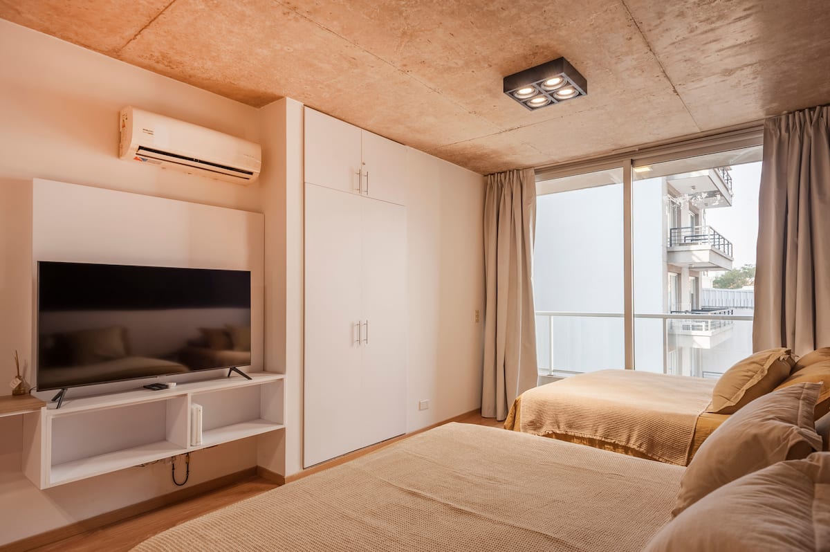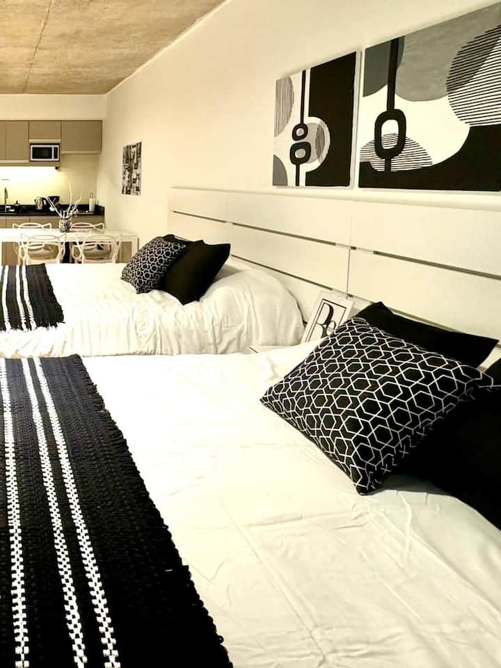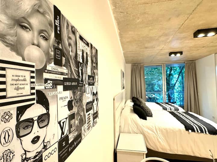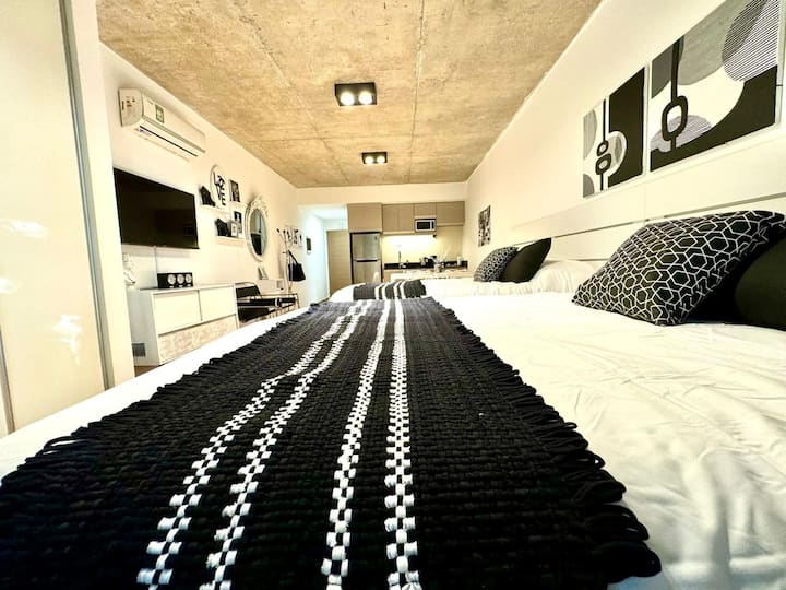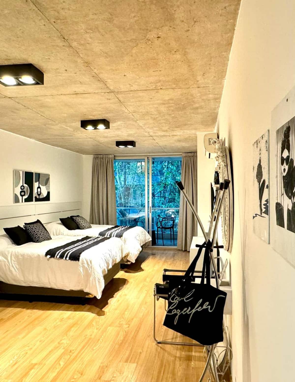 A propriedade reúne 4 apartamentos no mesmo prédio, em Palermo Hollywood. Fica a 3 quadras do Distrito de Arcos e a 200 metros do Arcos Sanatorio. Há acesso autônomo por códigos, com registro 24 horas e entrada sem chave, mediante geração de chave digital por aplicativo. A acomodação inclui toalhas e lençóis; há termoss ecológicos no apartamento.
