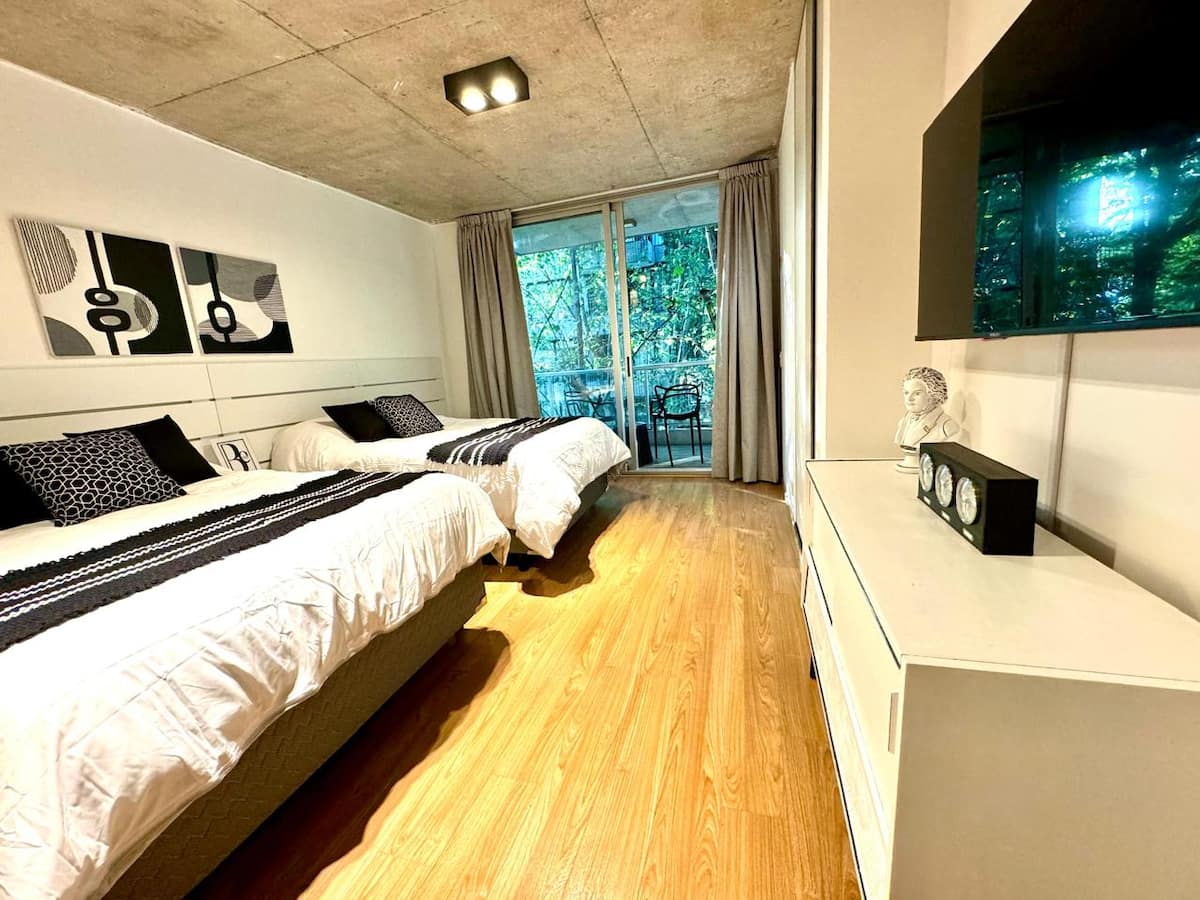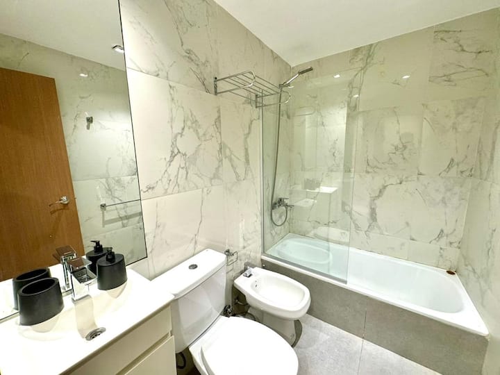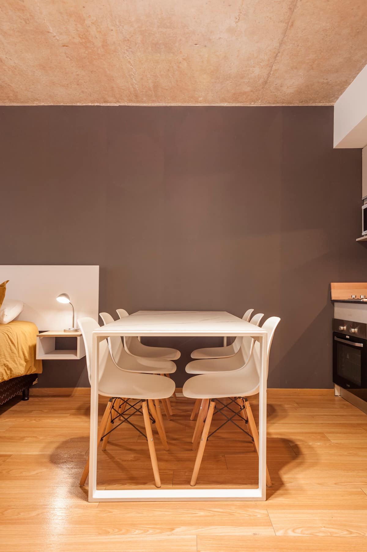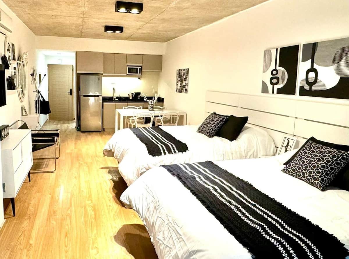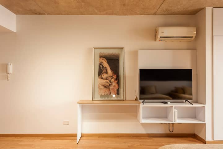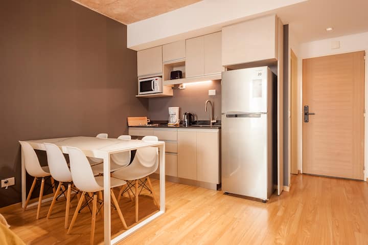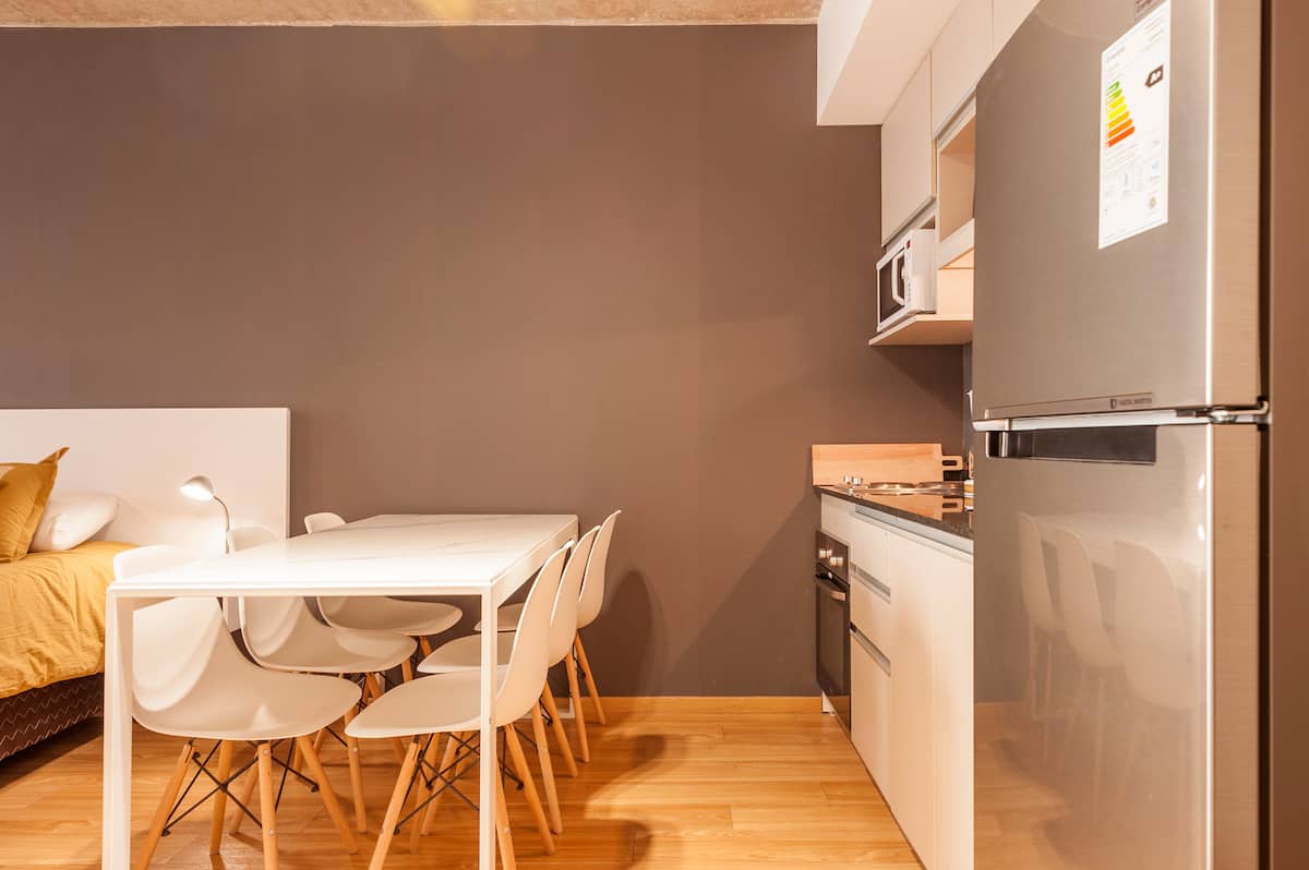 A propriedade reúne 4 apartamentos no mesmo prédio, em Palermo Hollywood. Fica a 3 quadras do Distrito de Arcos e a 200 metros do Arcos Sanatorio. Há acesso autônomo por códigos, com registro 24 horas e entrada sem chave, mediante geração de chave digital por aplicativo. A acomodação inclui toalhas e lençóis; há termoss ecológicos no apartamento.