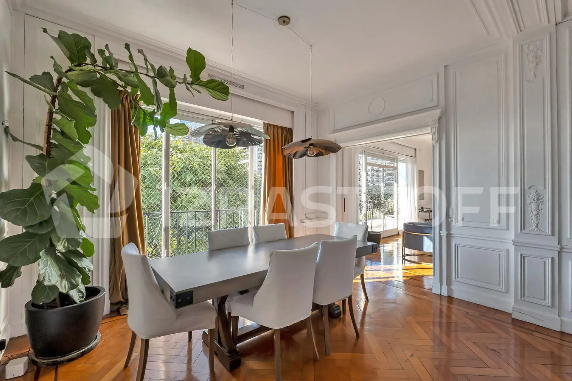 Apartamento com 240 m², vista para a Plaza Alemania, com acesso por palier privado. Dispõe de hall de recepção, sala com saída para varanda, sala de jantar e lavabo. São 4 dormitórios, sendo 3 de fundos e 1 com ar e luz, além de 2 banheiros. A cozinha tem office, há lavadero e 2 dependências; inclui vaga de garagem em espaço. O prédio oferece segurança 24 horas e serviços centrais.
