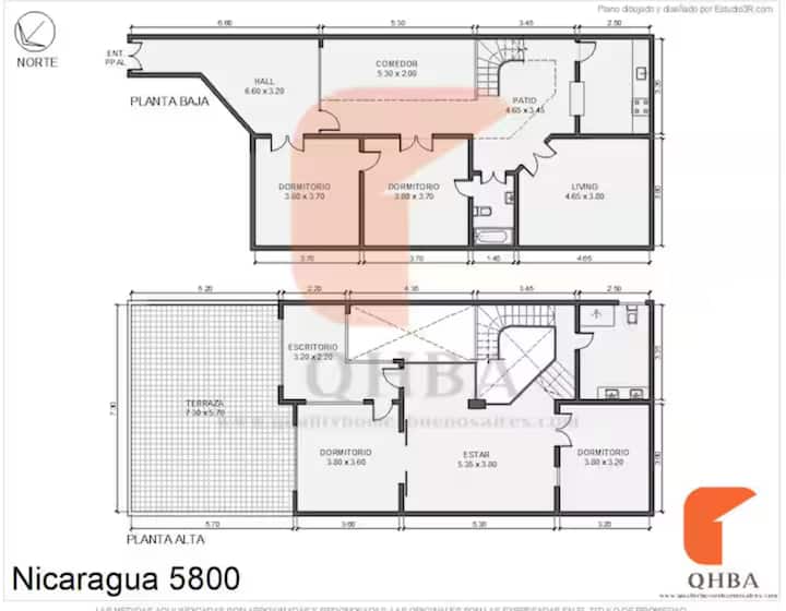Casa em Palermo Hollywood com 4 dormitórios. Área habitável de 300 m² (3.000 SF) e 800 SF de terraços privados (total superior a 3.800 SF), incluindo um pequeno terraço privativo próximo ao quarto principal.