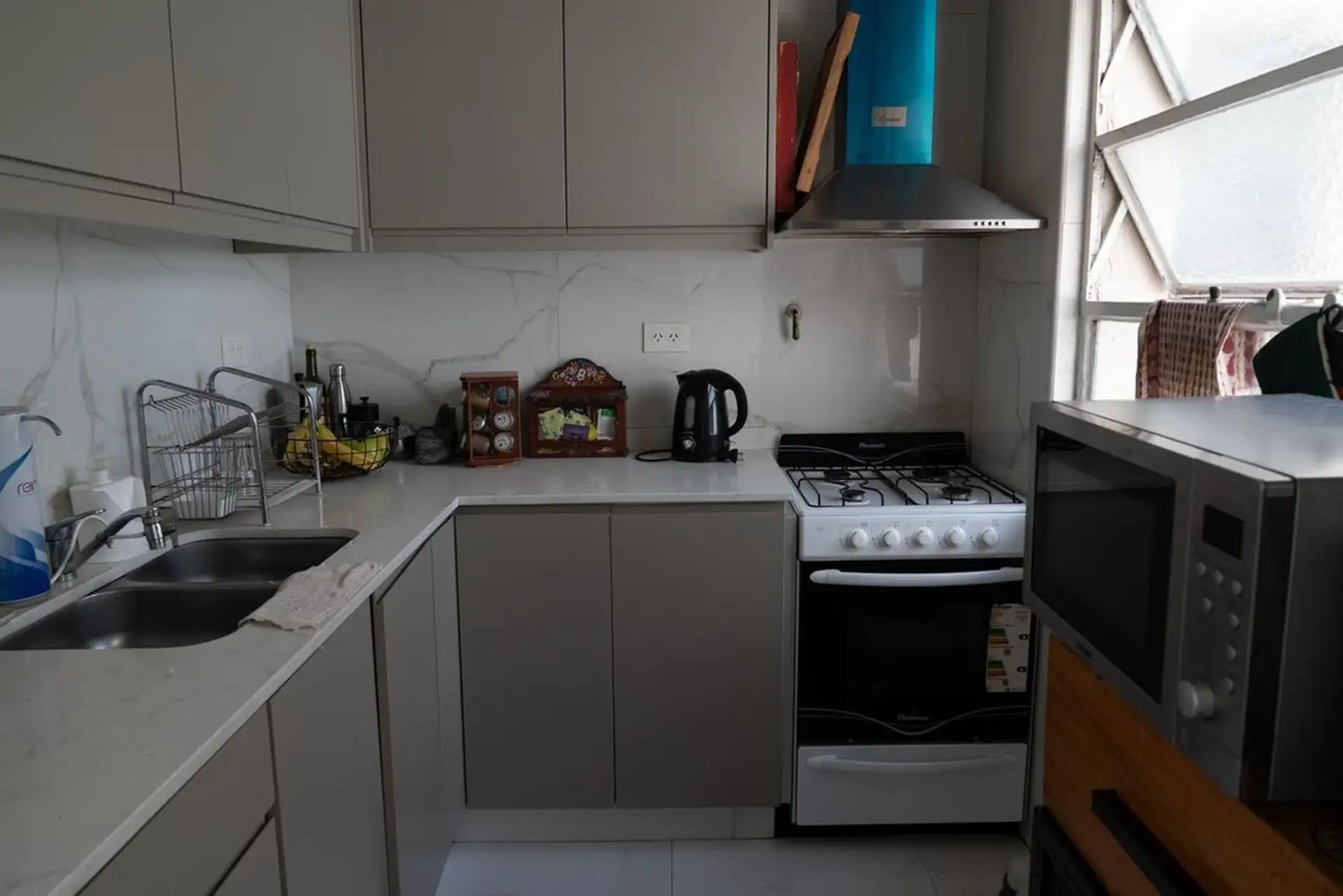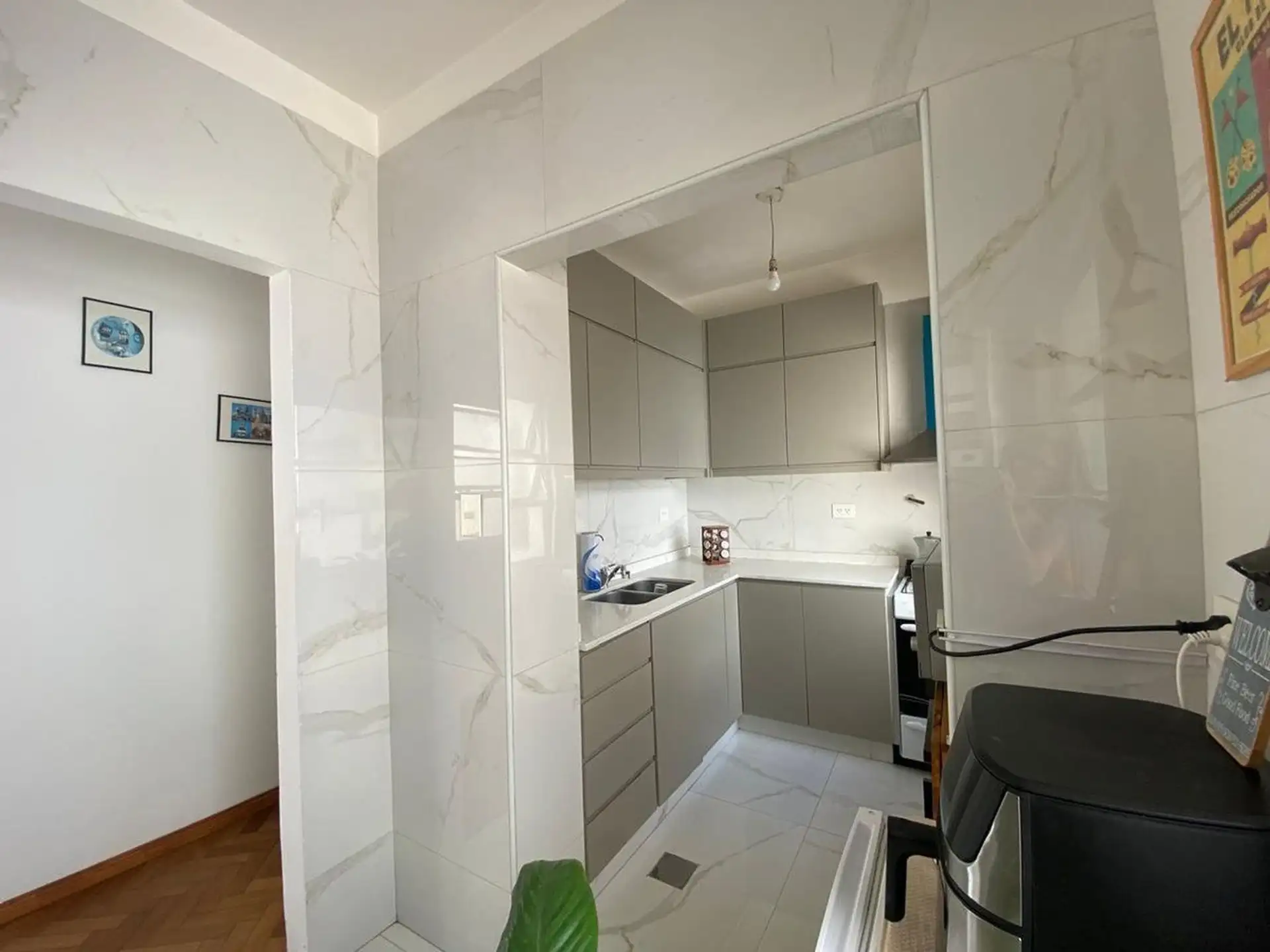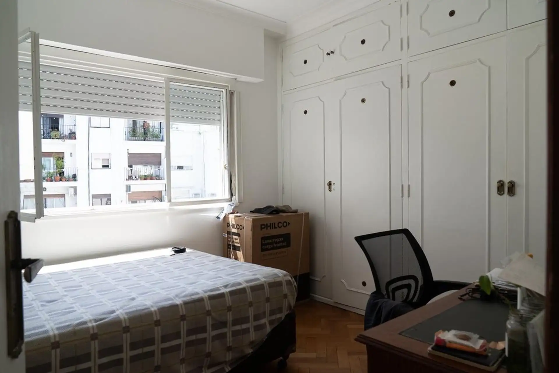 Apartamento de 5 ambientes em Palermo, com 162 m² de área total, no 7º andar. Possui 4 quartos, 2 banheiros completos e varanda. Cozinha com setor de comedor integrado, living e área de lavanderia. Prédio com 8 andares; construção de 1962. Vaga de garagem fixa no 2º subsolo, em prédio contíguo.