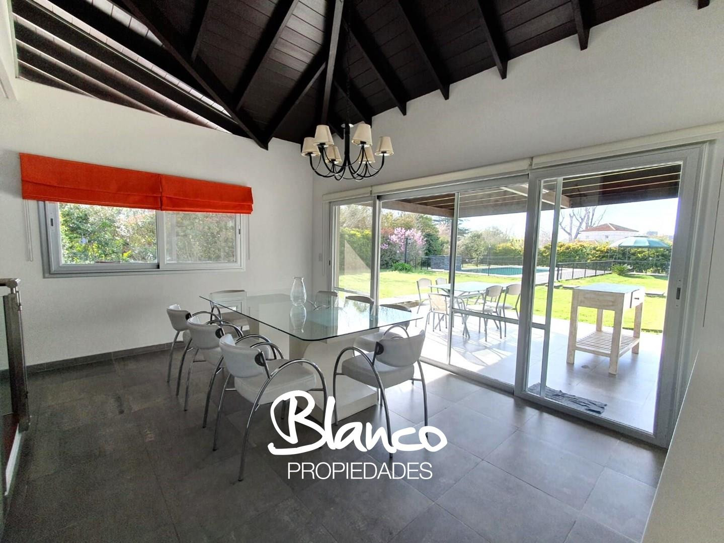 Casa mobiliada em Sausalito, Pilar, construída em 2 plantas. Implantada em lote central de 1.500 m², com orientação leste. No térreo, sala de estar e jantar, cozinha completa com ilha, lavadero, lavabo, dependência e escritório ou 4º dormitório; no andar superior, suíte principal com closet e mais 2 dormitórios com banheiro completo. Área externa com galeria coberta e área de churrasco com estrutura para 8 pessoas, jardim com cerca para animais e garagem coberta para 2 carros, além de espaço des