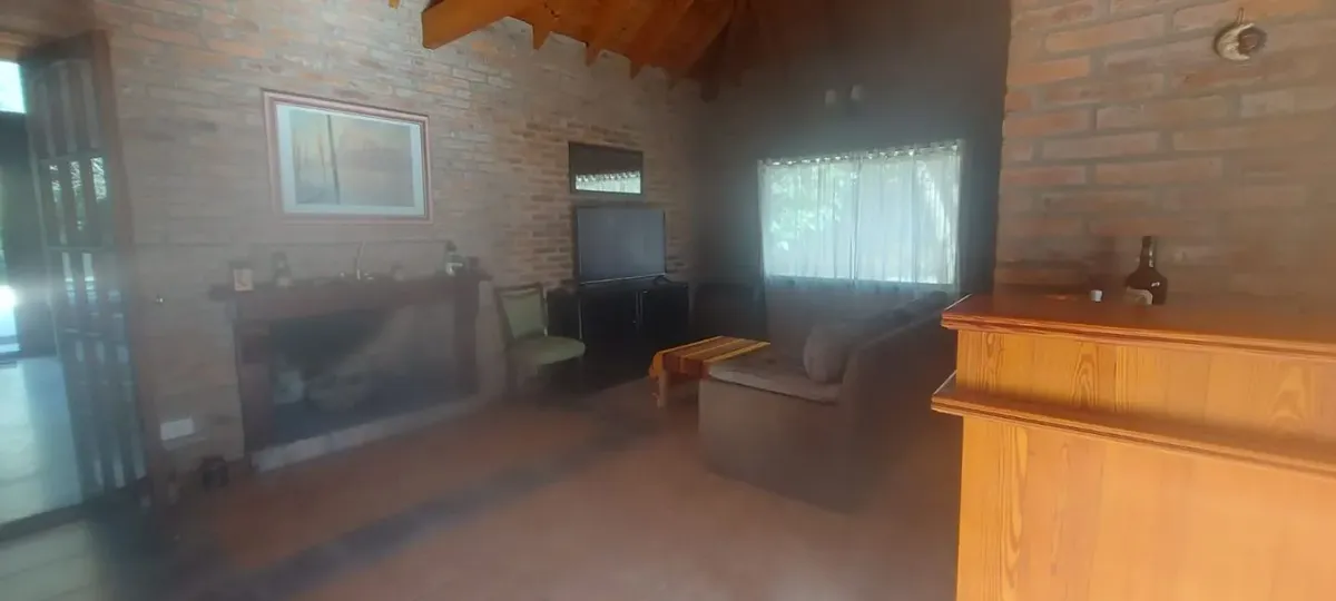 Casa em aluguel em Pilar del Lago, Pilar, em uma planta e com 5 ambientes. Possui living com lareira, cozinha, área de serviço integrada, 1 dormitório principal em suíte com closet e ar-condicionado, além de 2 dormitórios que compartilham 1 banheiro. O quincho fechado tem área de churrasco, ar-condicionado e grandes janelas voltadas para o jardim com paisagismo, com piscina e revestimento tipo venecitas. A calefação é por tiro balanceado.
