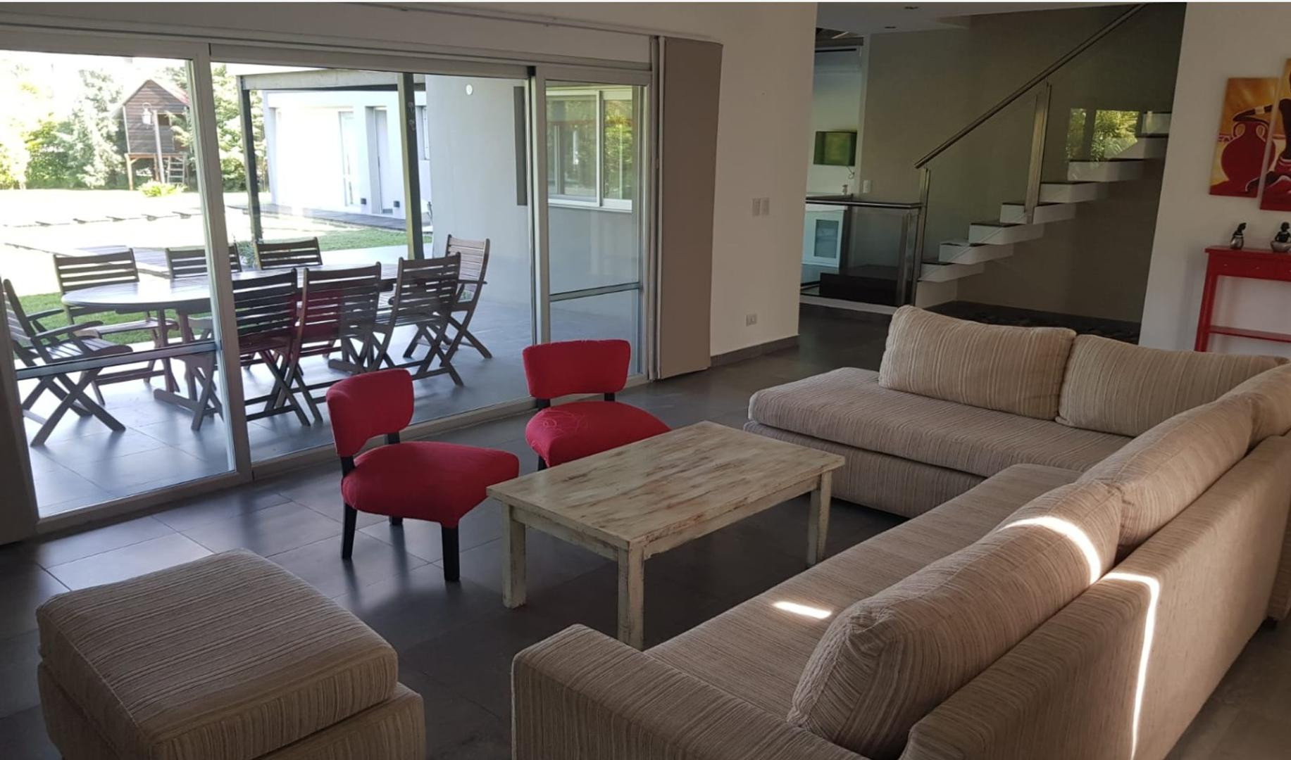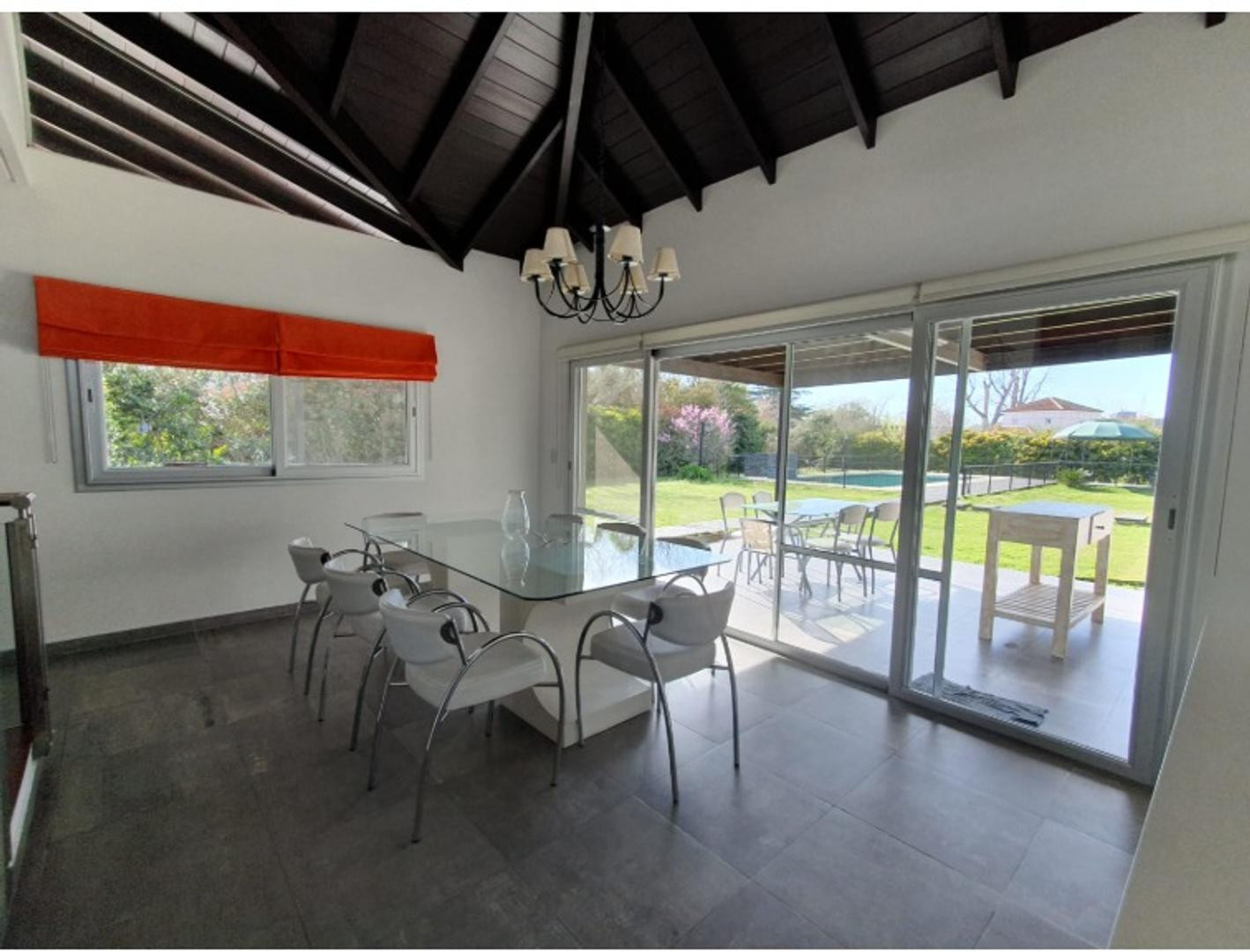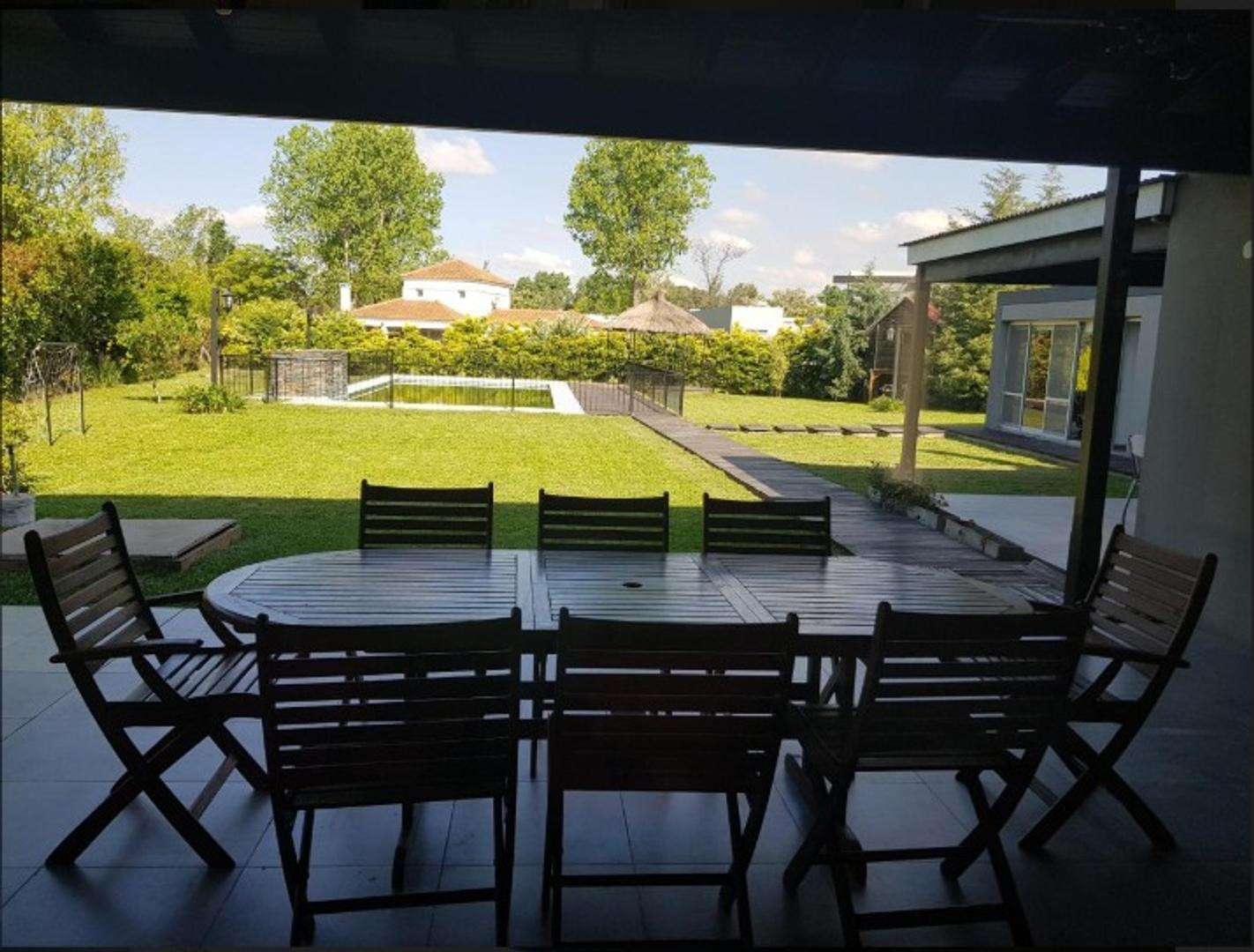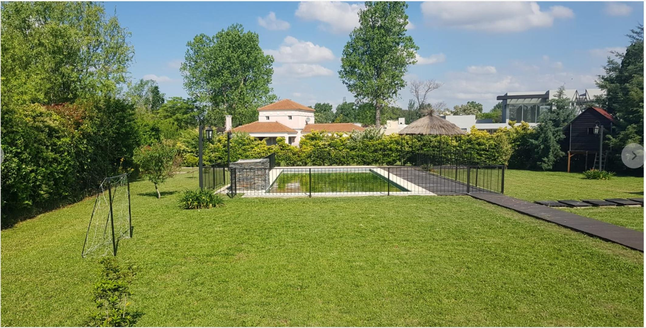 Casa de 6 ambientes com 300 m² cobertos e 60 m² semicobertos em um lote central de 1500 m², em Sausalito Club (Pilar). A unidade é mobiliada e conta com 3 dormitórios principais e 1 dormitório secundário ou playroom, living, sala de jantar, cozinha, lavadero, dependência e 3 banheiros completos mais 1 lavabo. Há área externa com galeria coberta com área de churrasco, parque com 1500 m² com cerca apta para animais e piscina aquecida de 12 x 6 m com deck e solarium. Inclui 4 ar-condicionados insta