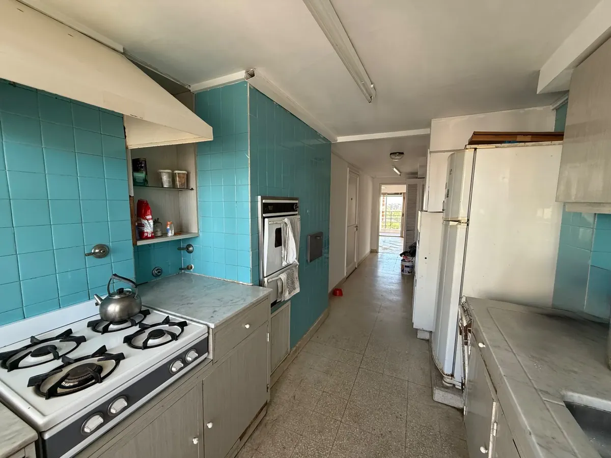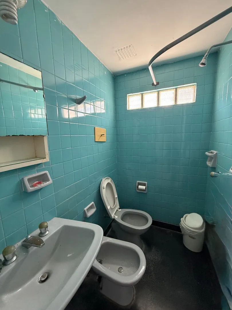 Apartamento de 5 ambientes em Quilmes Centro, com 4 quartos e 3 banheiros. Inclui vaga de garagem (fixa) e depósito (baulera) no valor do aluguel. Há ampla varanda com redes instaladas, calefação central por caldeira e área de lavanderia (lavadero).