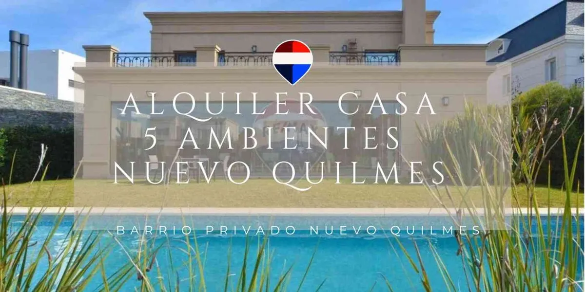 Casa de 5 ambientes em Nuevo Quilmes, com piscina e área de churrasco. São 350 m² cobertos em um terreno de 785 m², sem mobília. No piso superior há suíte principal com closet, banheiro com box separado e também com banheira; há 2 dormitórios adicionais com armários embutidos e mais um banheiro completo, além de varanda-terraço privativa. No piso térreo há living integrado à cozinha com ilha e ao refeitório; há dormitório/escritório com lavabo, lavanderia independente e galeria coberta com área