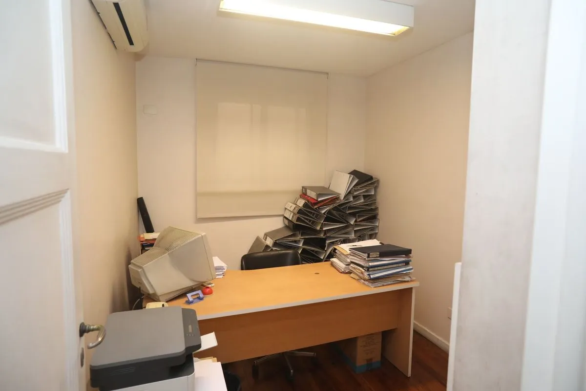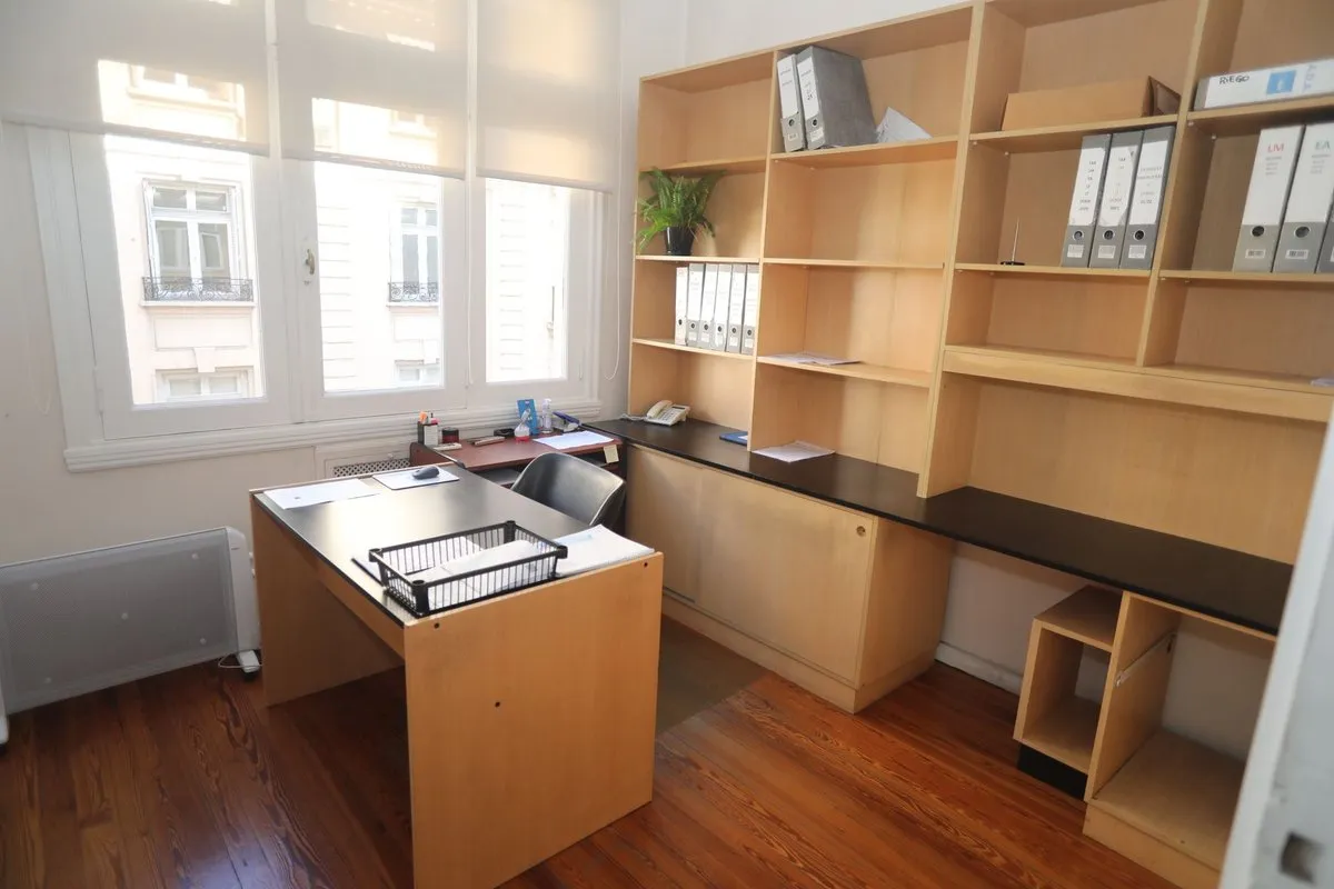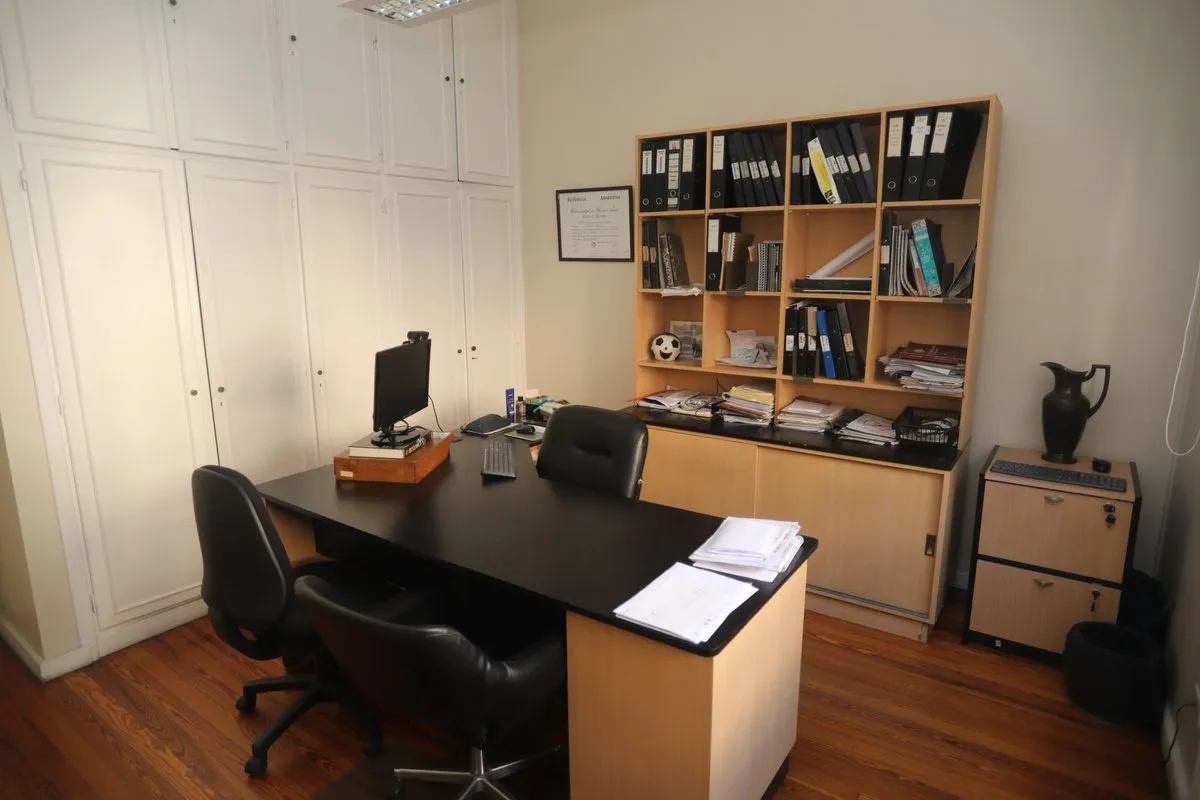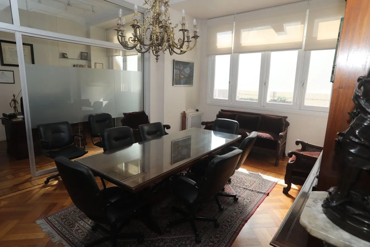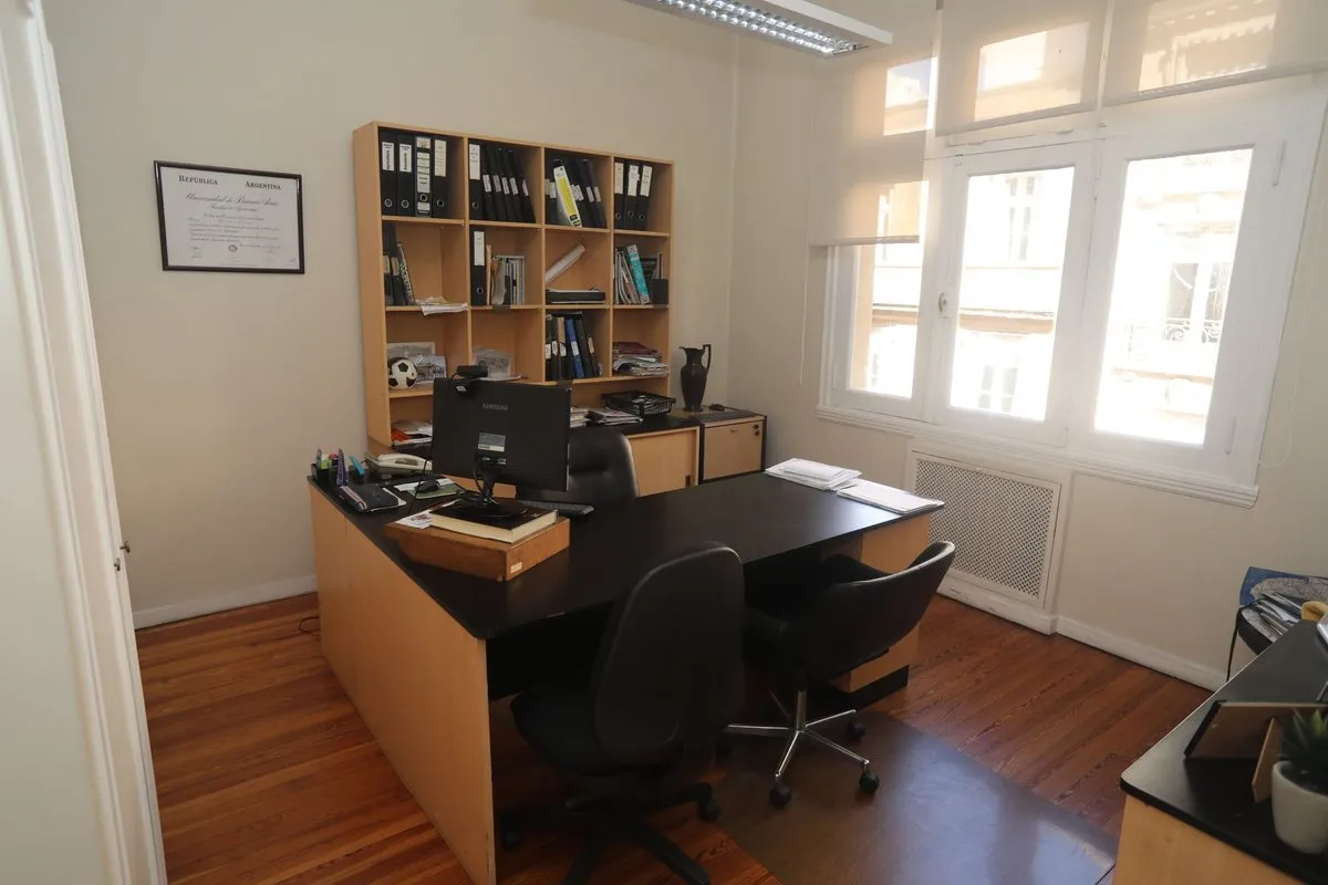 Apartamento de 6 ambientes em Las Heras 1600, em Recoleta, com 4 quartos e 2 banheiros completos. A unidade está configurada como escritório e dispõe de hall privativo, amplo living e sala de jantar, além de 2 escritórios com divisórias de vidro. Há cozinha com refeitório diário e área de serviço com toilette, entrada de serviço e espaço de guarda. O prédio não tem vaga de garagem.