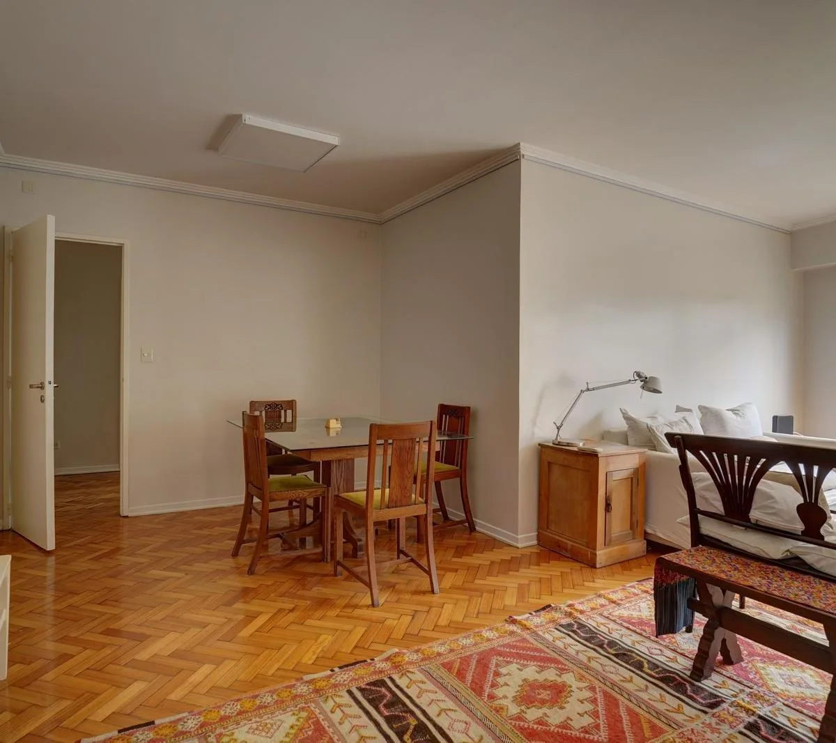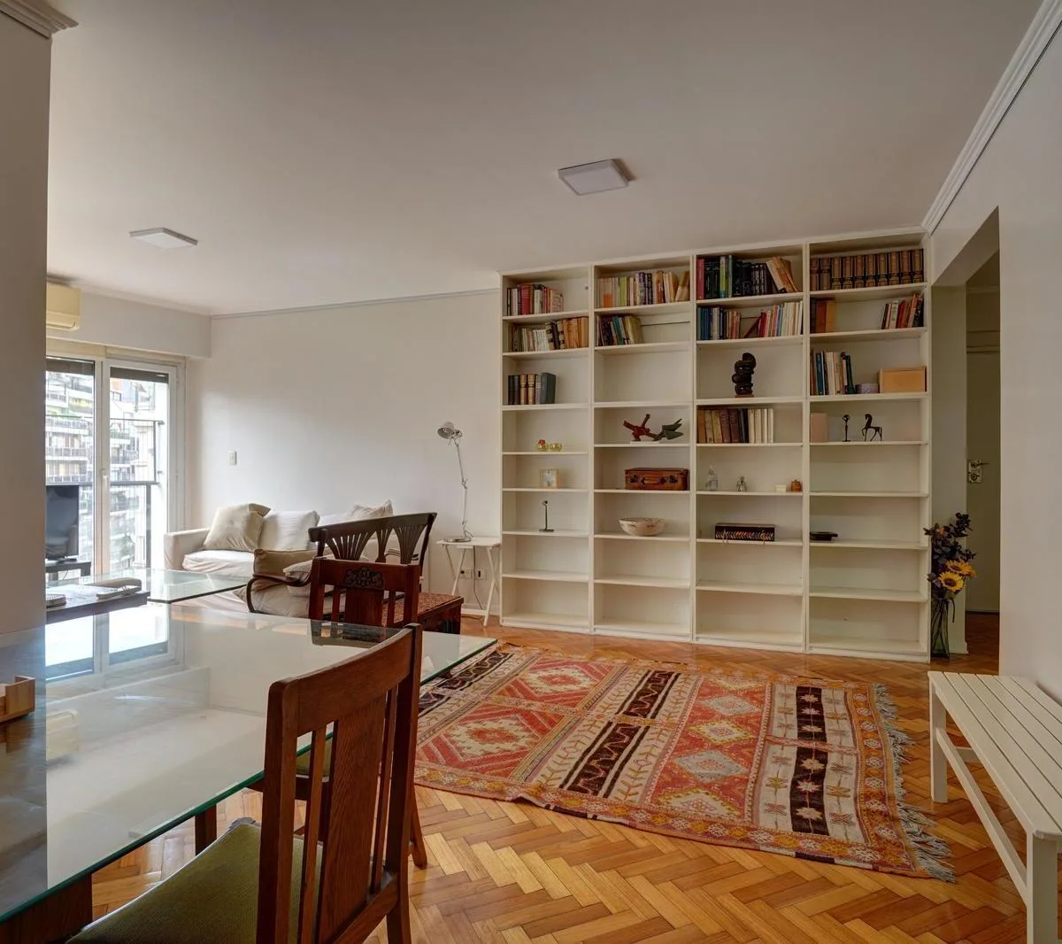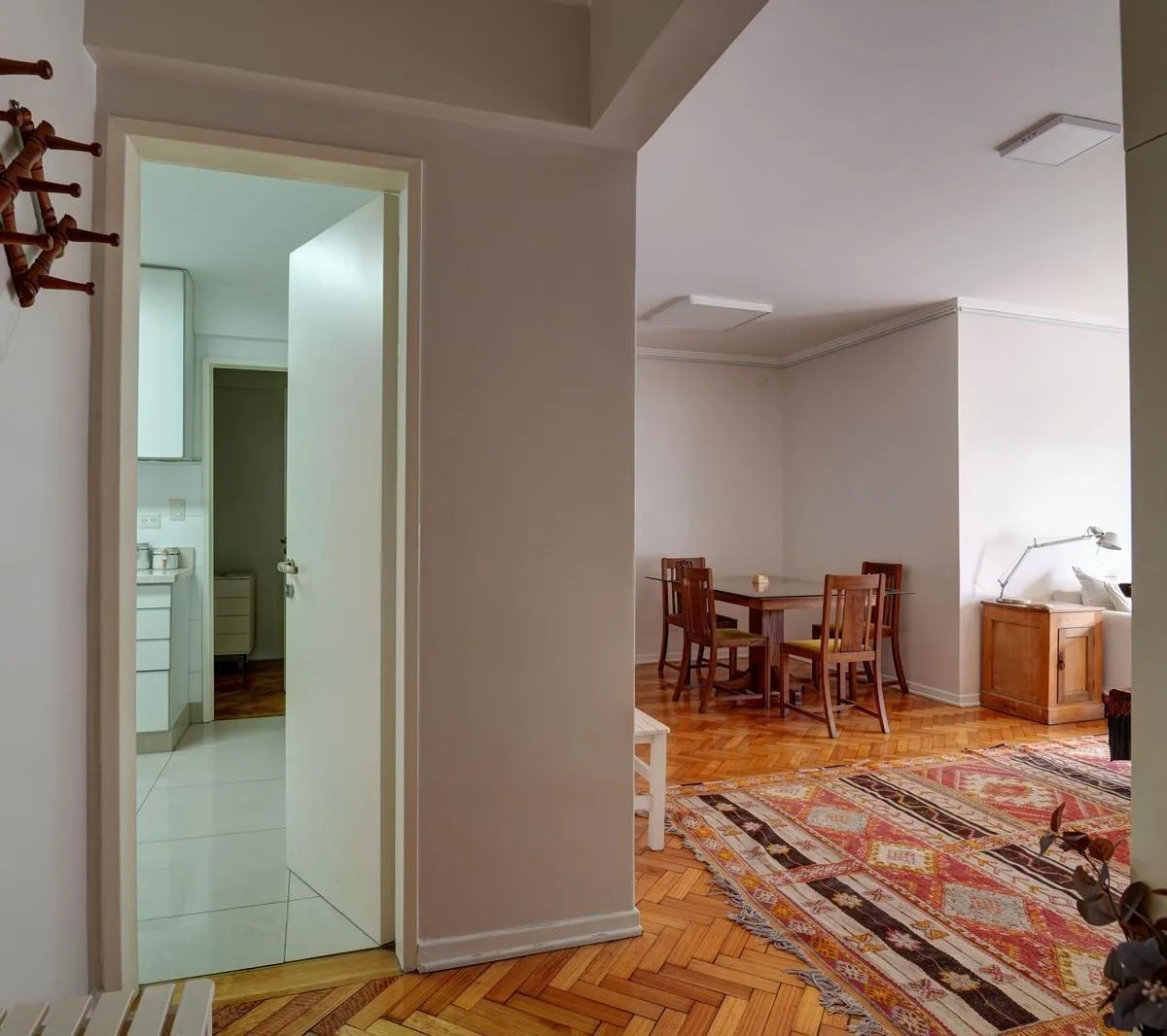 Apartamento de 5 ambientes em Recoleta, mobiliado e equipado. Sala de estar e jantar, varanda francesa, cozinha completa e área de serviço com lavadouro. São 4 dormitórios, 2 banheiros completos e 1 banheiro de serviço. Contrato de 2 anos.