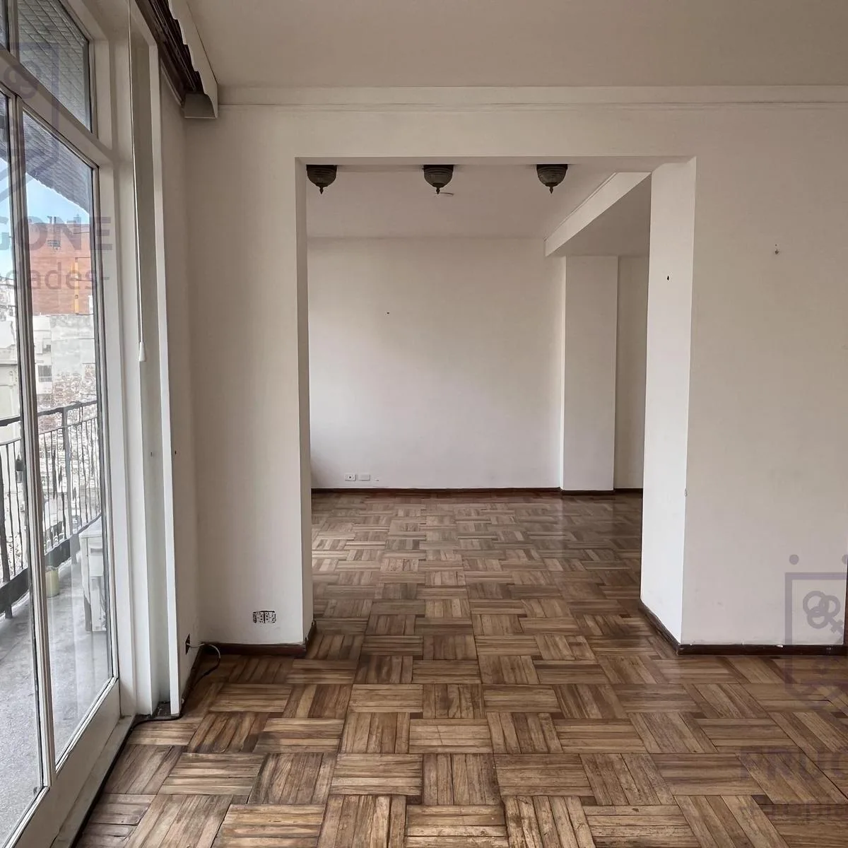 Apartamento com 4 dormitórios em Recoleta, no piso alto, com planta em “piso completo” e 2 elevadores. Sala de estar e jantar em frente, com saída para varanda corrida e vista para a Av. Santa Fe. Dormitórios voltados para os fundos, com saída para varanda, com circulação dupla, pisos de madeira e cozinha ampla. Área de lavanderia independente com ventilação natural, dependência de serviço com banheiro e toilette; aquecimento e água quente central.