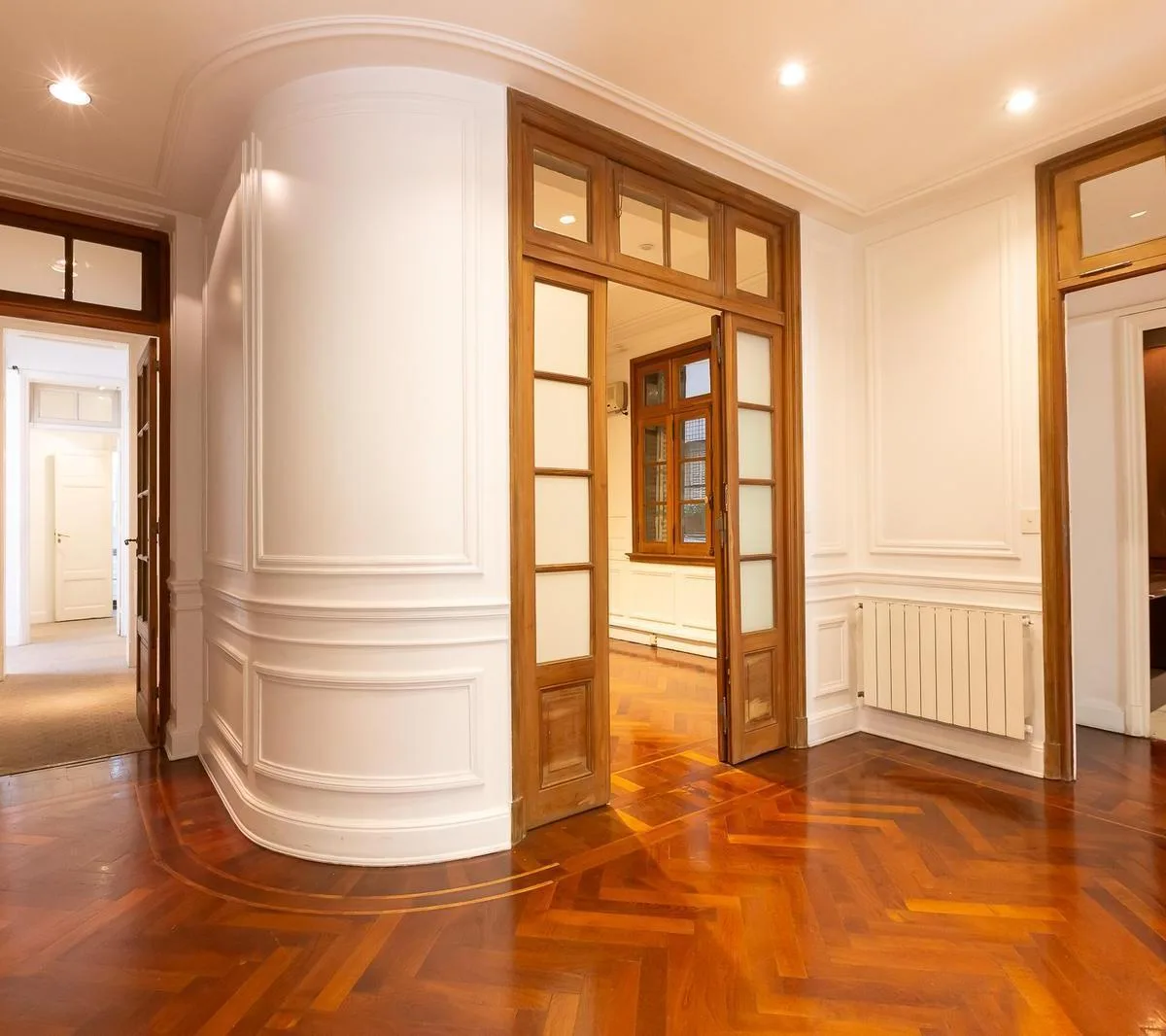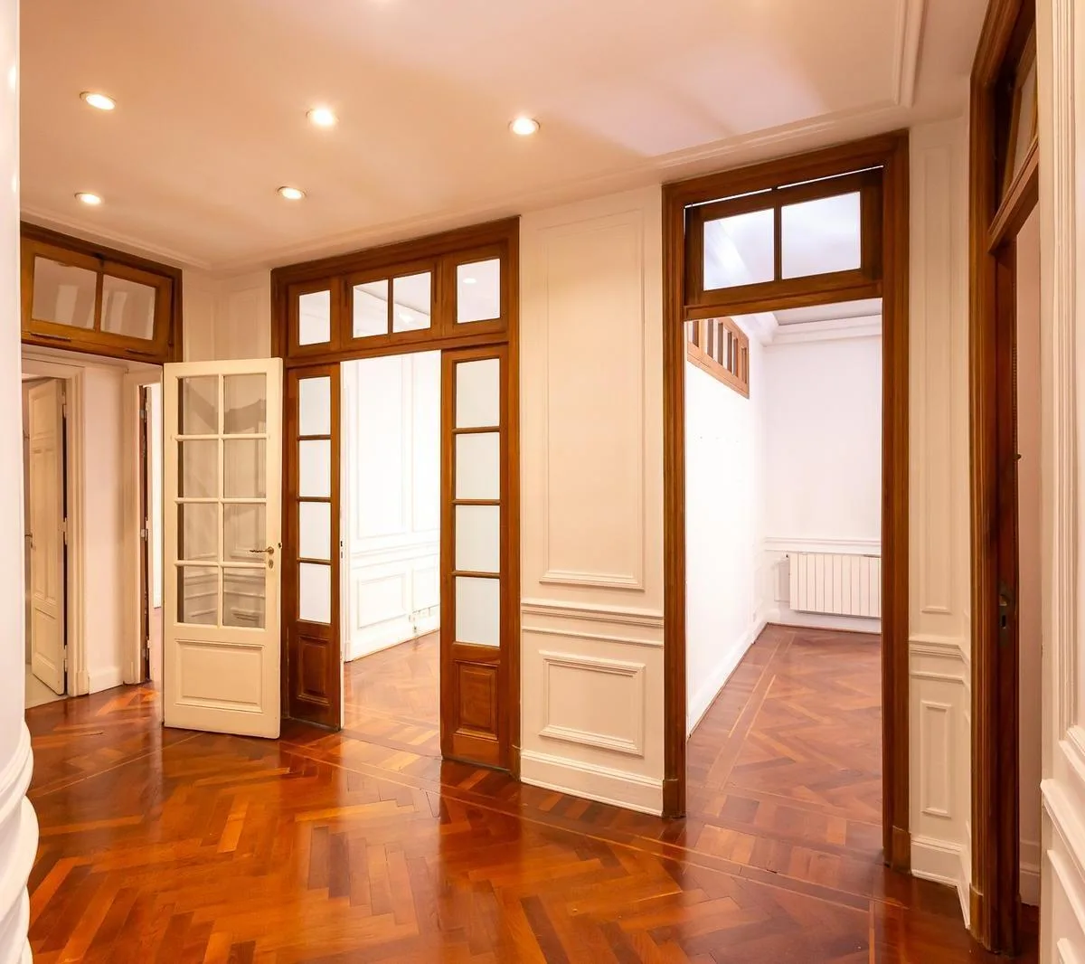 Apartamento de 6 ambientes em Recoleta, com uso para moradia e escritório, localizado no 6º andar. O imóvel dispõe de três salões voltados para a frente, com acesso a varandas ornamentadas, além de ambientes com vista para um pátio interno. Inclui cozinha e dependência com entrada de serviço, 1 banheiro completo e 1 lavabo, com possibilidade de conversão do lavabo em banheiro com ducha.