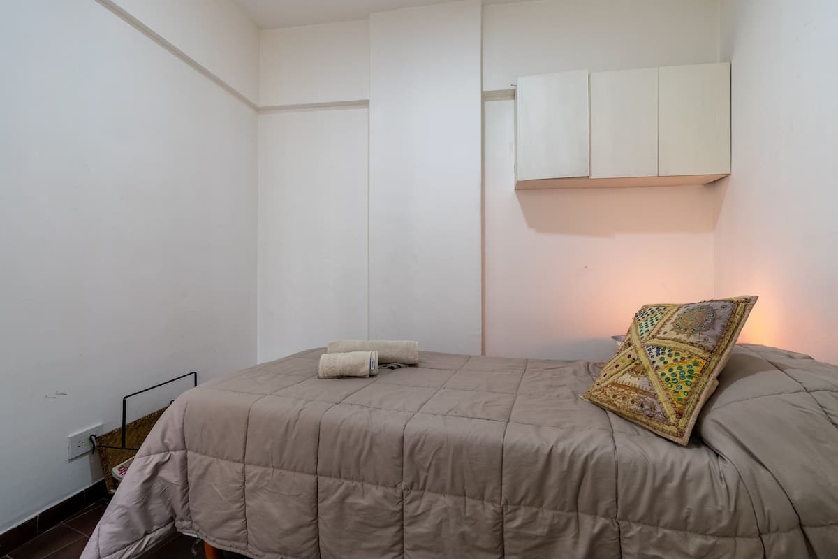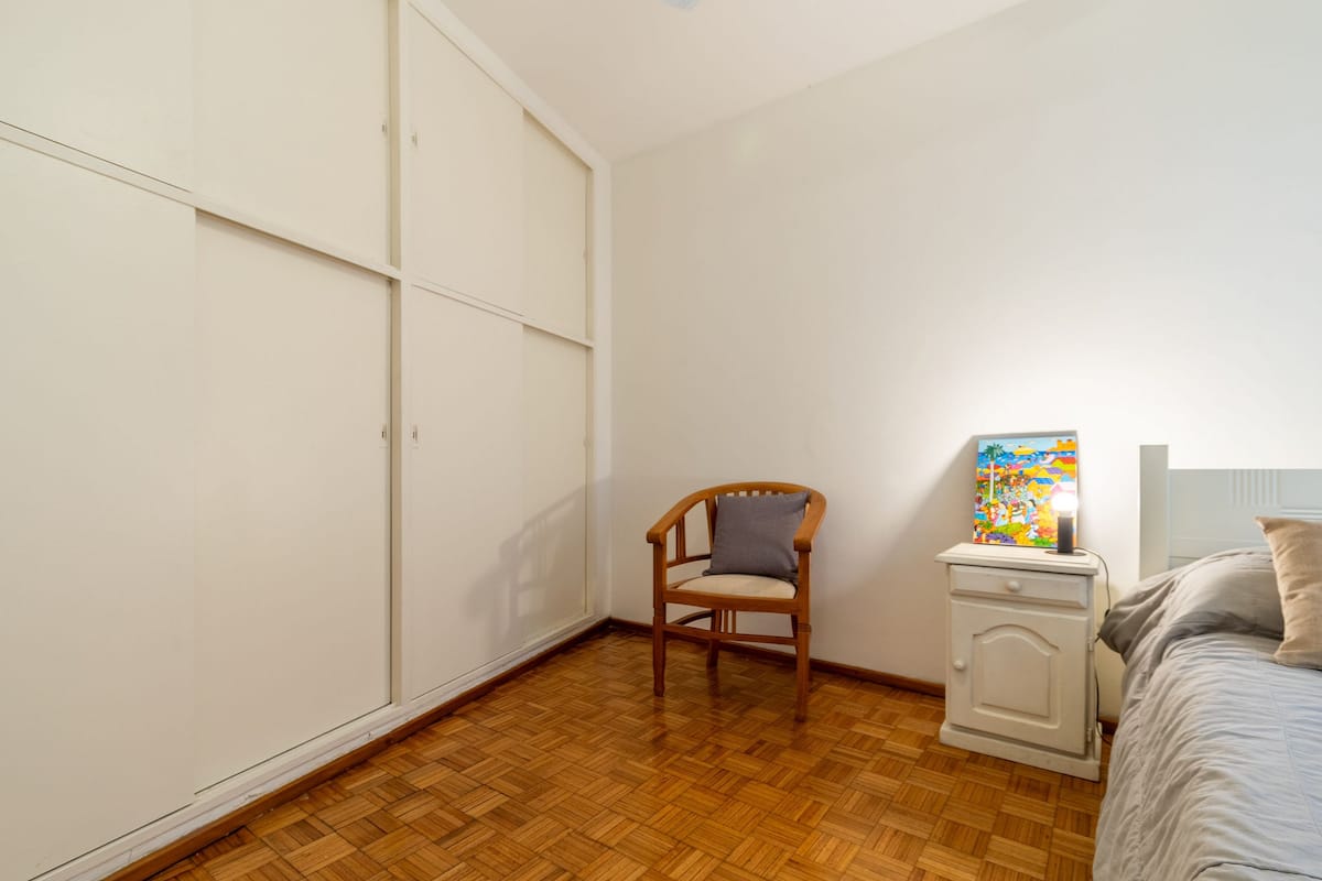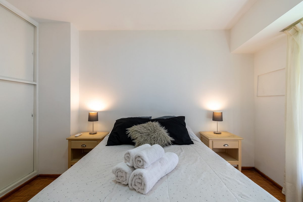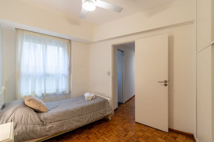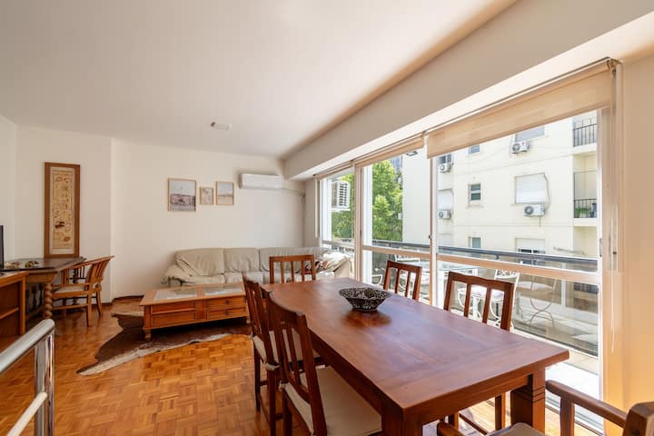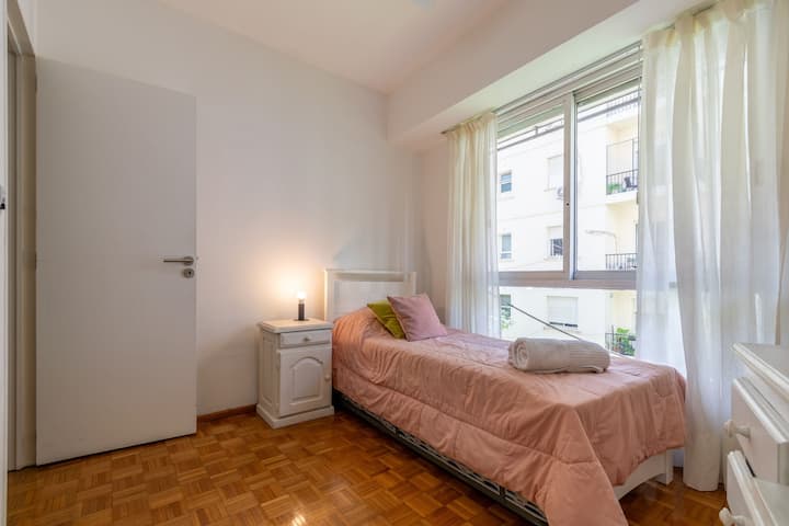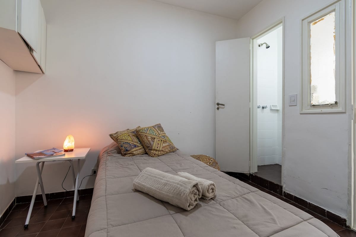 Apartamento duplex de dois andares em Recoleta, com 4 quartos. O imóvel é mobiliado e totalmente equipado, com Wi-Fi, TV e varanda, além de ar-condicionado no quarto e na sala. Conta com máquina de lavar roupa. No living e sala de jantar há sofá e mesa para 6 pessoas. Há 1 quarto com cama queen e 3 quartos com camas de solteiro (configurações de 1 e 2 camas). A cozinha tem área de lavanderia e há 1 banheiro.